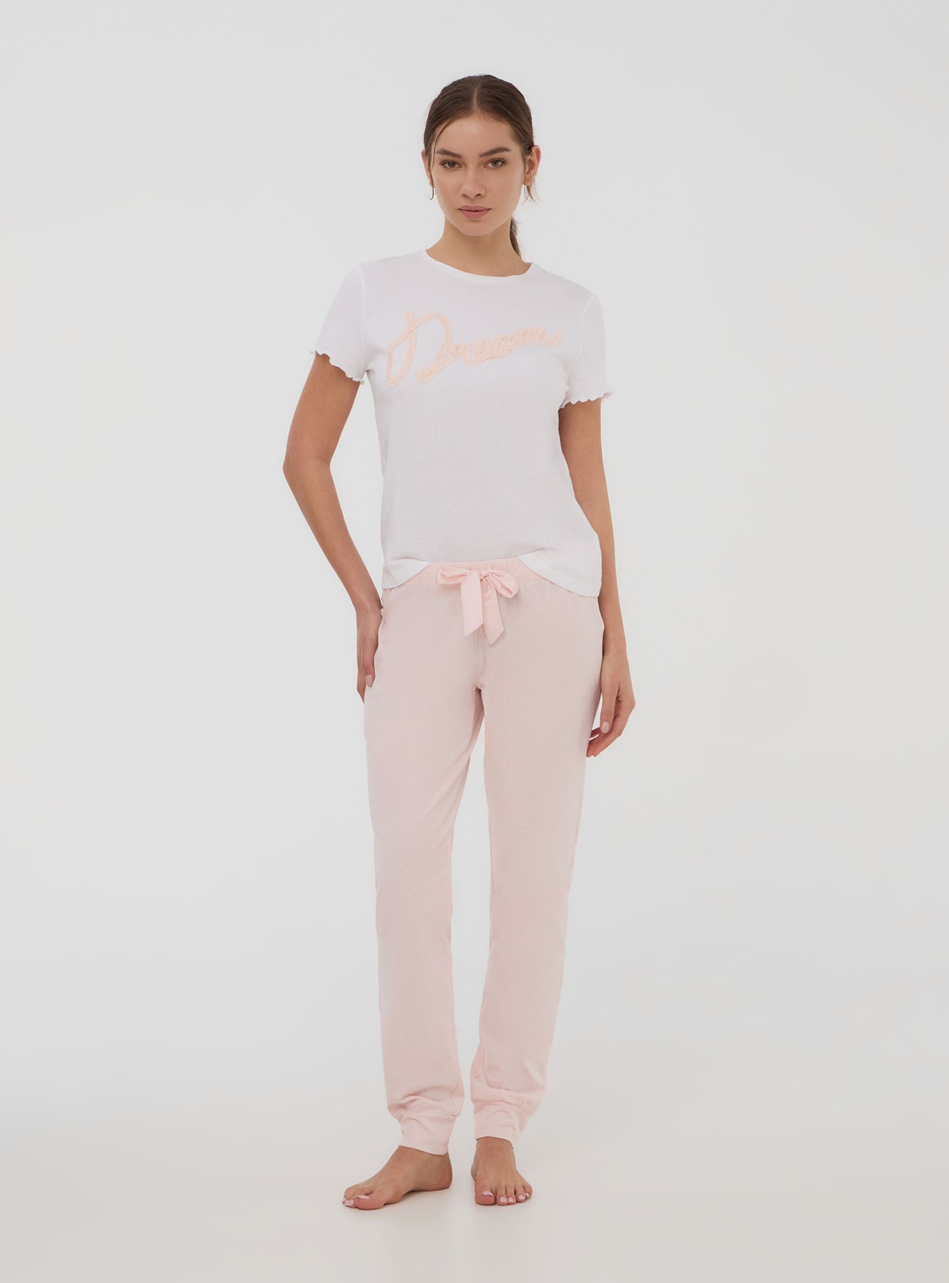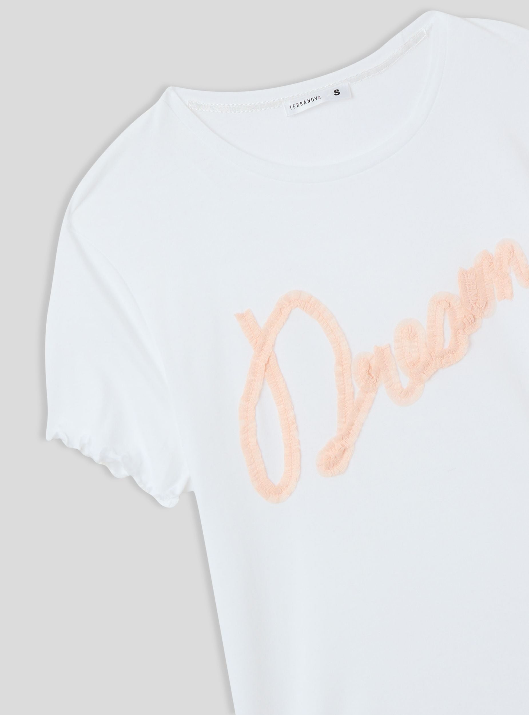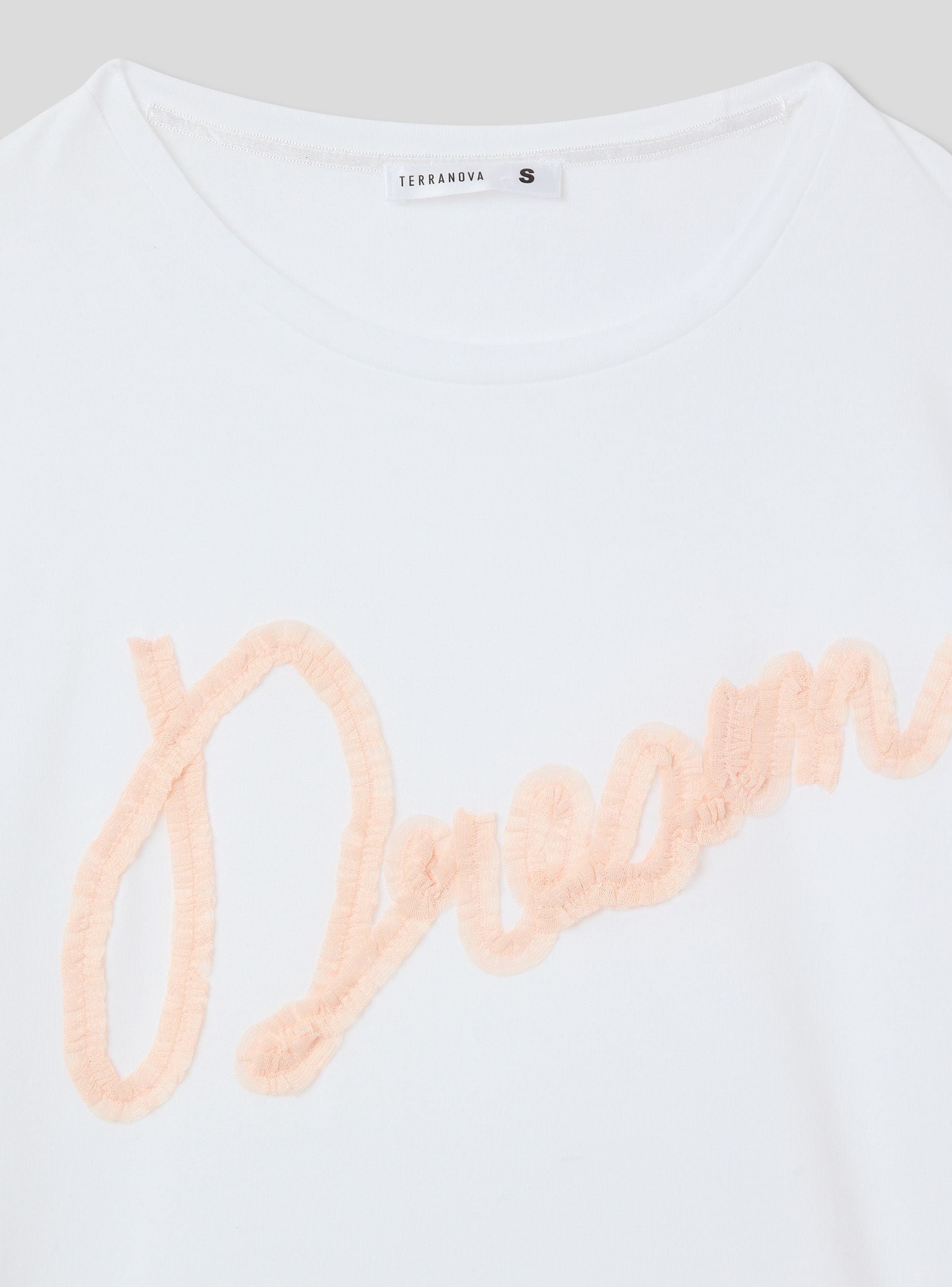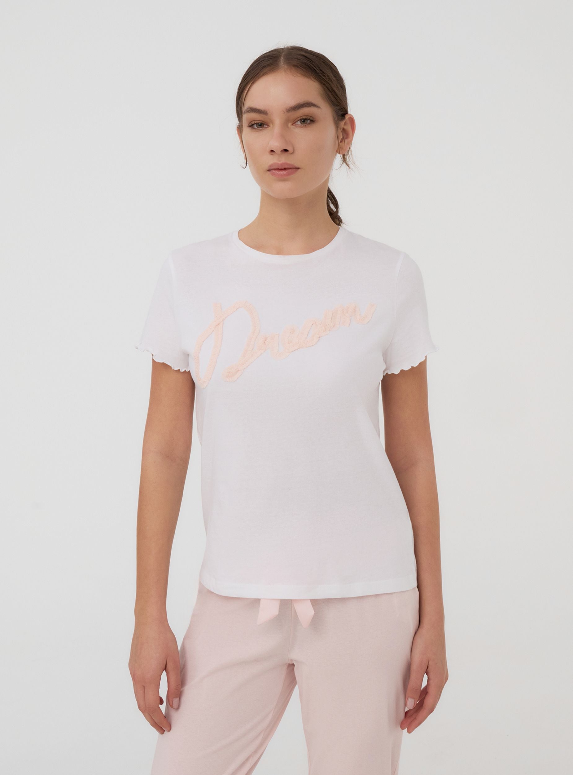 Maglietta del pigiama da donna perfetta per le serate rilassanti. Con maniche corte e girocollo, garantisce un comfort ottimale. La scritta romantica in tulle aggiunge un tocco elegante e femminile, ideale per chi ama i dettagli raffinati. Un capo che unisce praticità e stile per i tuoi momenti di relax.Dettagli