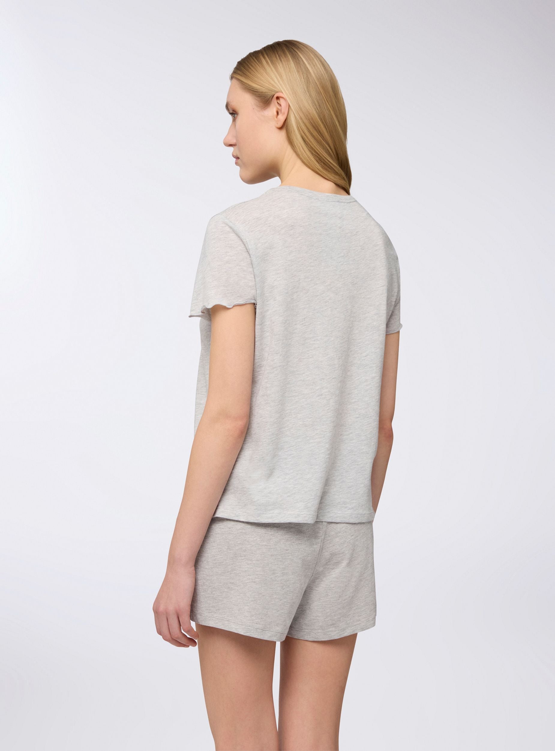 Maglietta del pigiama da donna con girocollo, a tinta unita e maniche corte. Il suo design semplice la rende ideale per chi cerca un look confortevole e rilassato per la notte, offrendo libertà di movimento e uno stile essenziale. Perfetta da abbinare a pantaloni lunghi o shorts.Dettagli