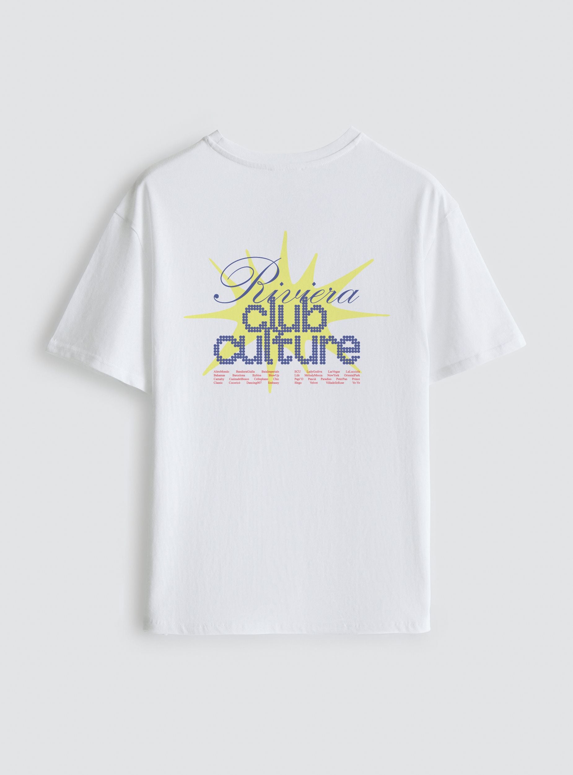 Maglietta da donna a maniche corte e girocollo con stampa fronte e retro, perfetta per uno stile urban ispirato al mondo della notte. Sul fronte la scritta “Santa Piada Line” dona un tocco vivace, mentre sul retro campeggia un’esplosione grafica con “Riviera Club Culture” e i nomi iconici dei locali della riviera, ideale per look audaci e pieni di personalità.Dettagli