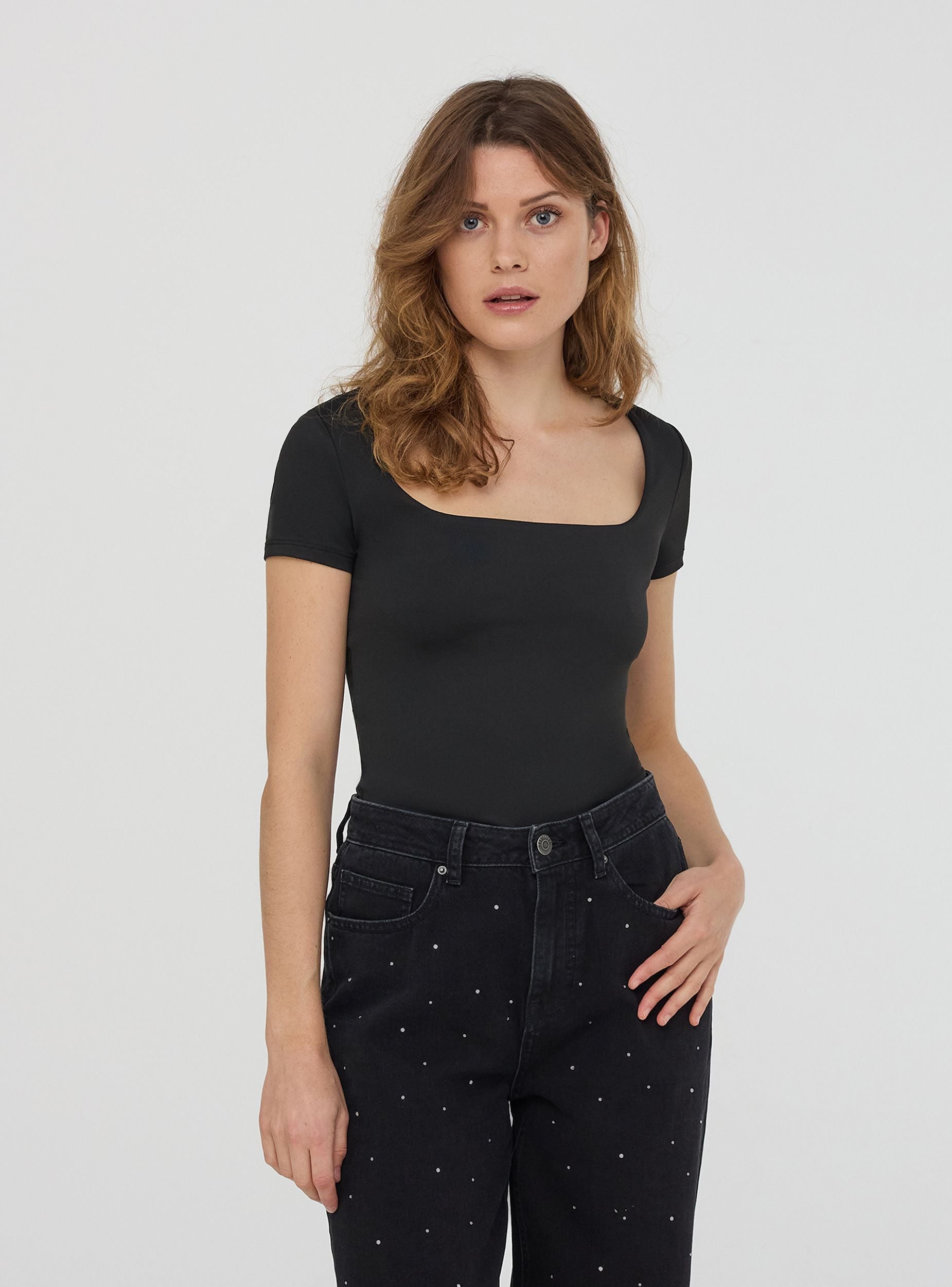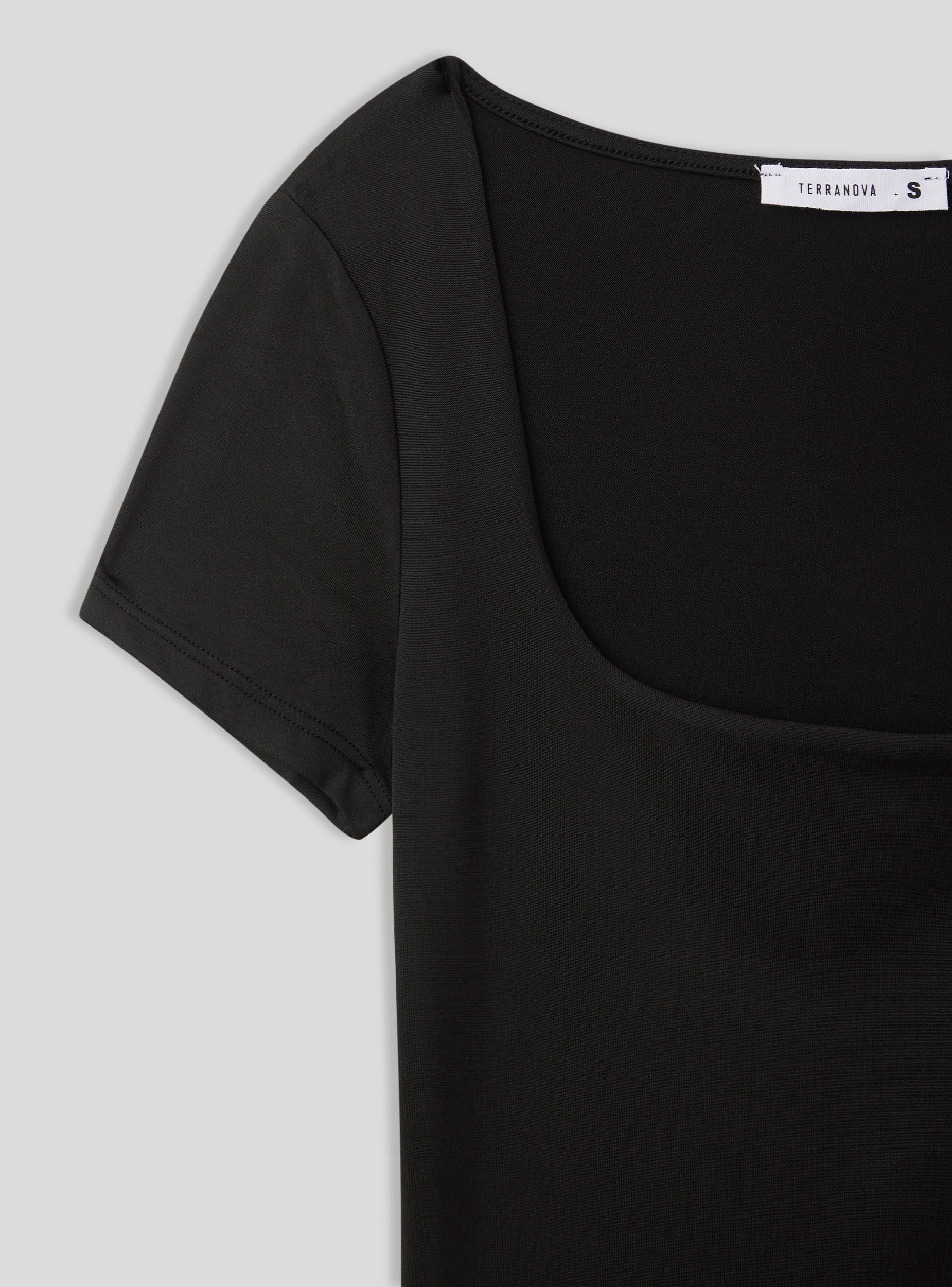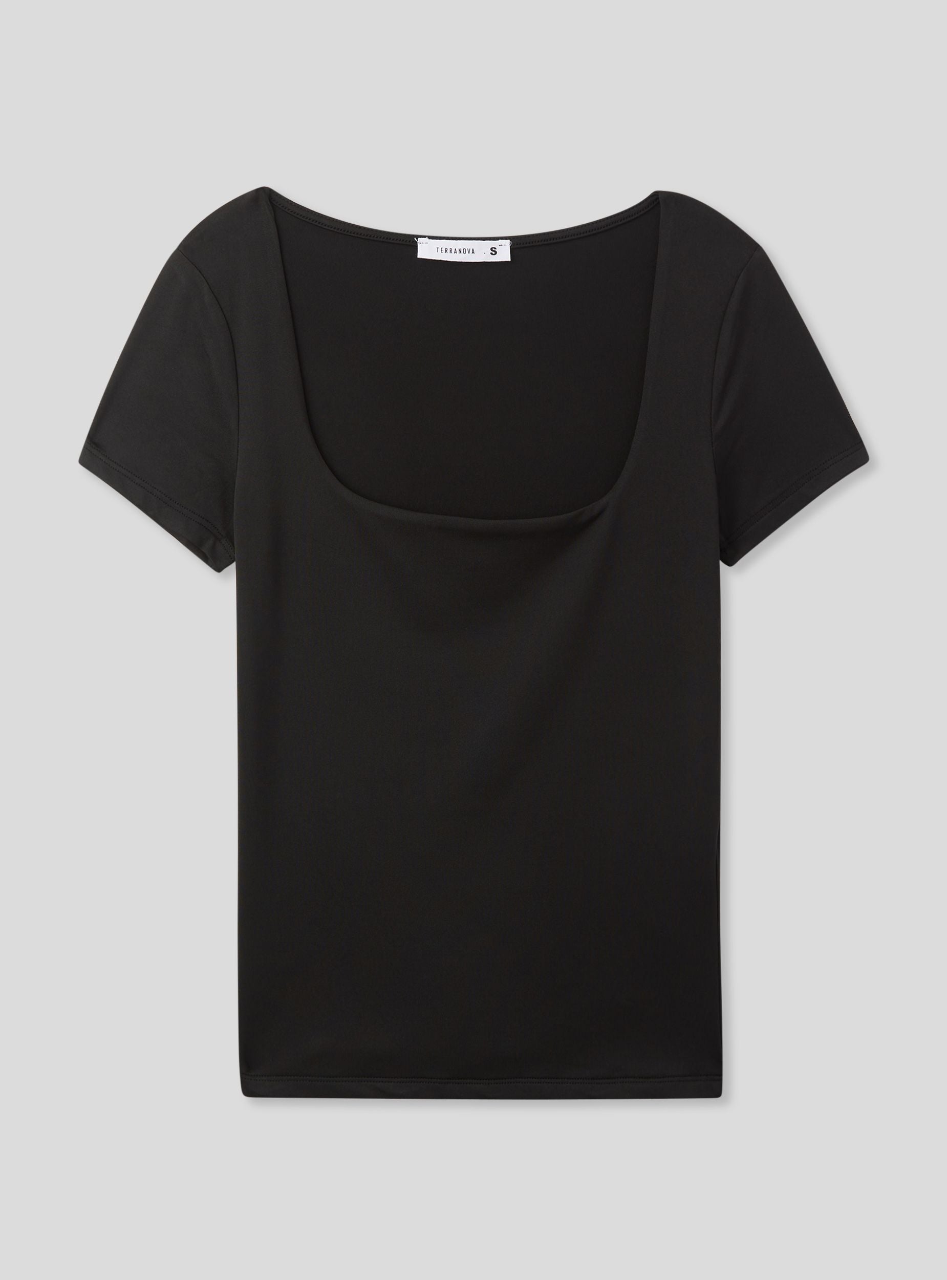 Maglietta da donna a maniche corte con un design minimalista e a tinta unita. Presenta uno scollo ampio e squadrato, conferendo un tocco femminile ed elegante al capo. Il tessuto elasticizzato garantisce comfort e aderenza. Un capo versatile, ideale per look casual e raffinati.Dettagli