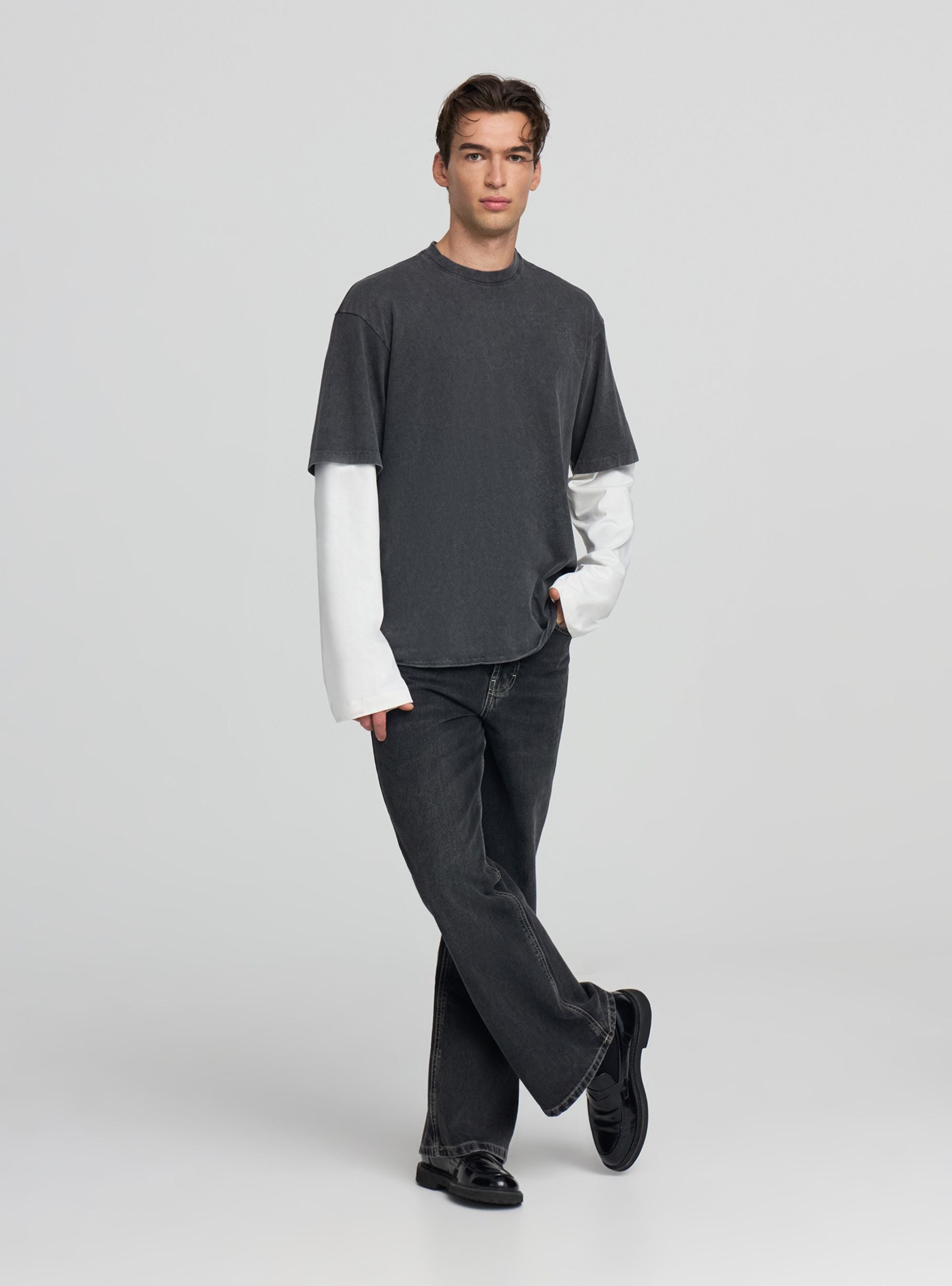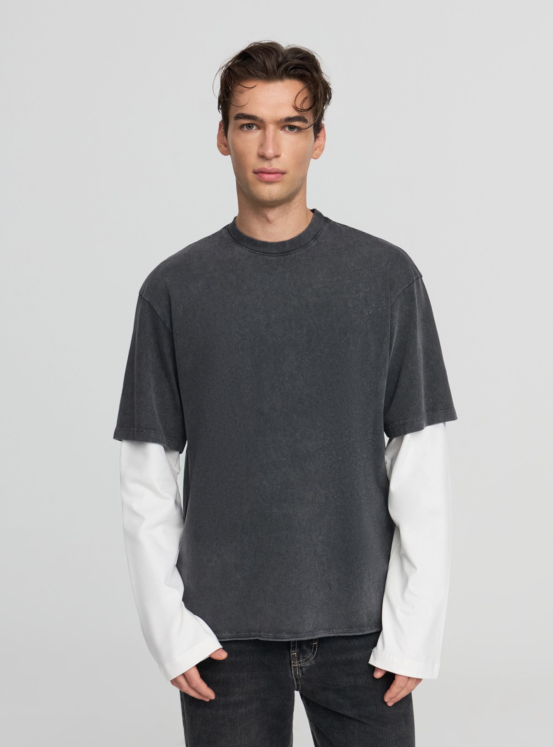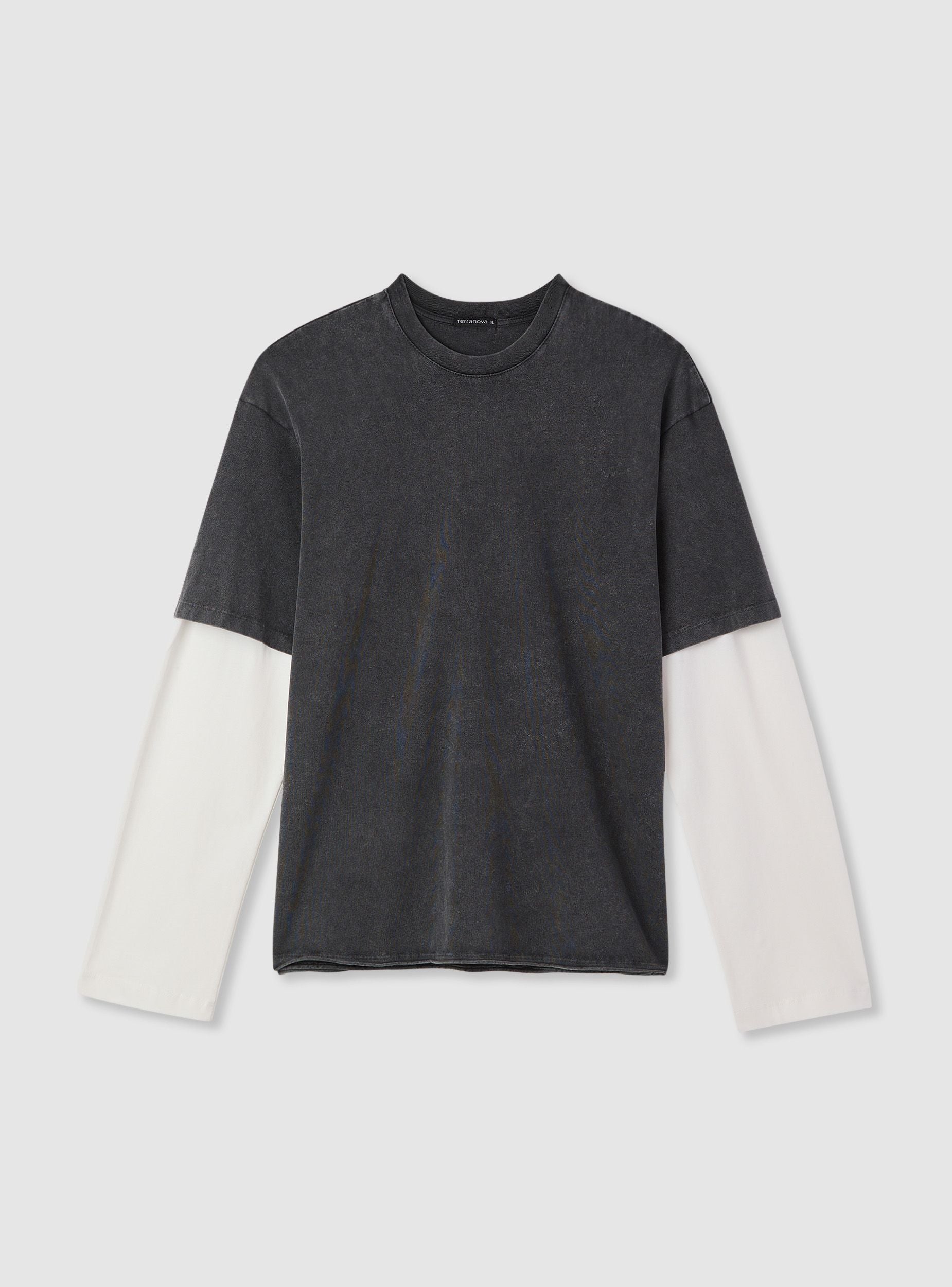 Maglietta da uomo con maniche lunghe, ideale per look urbani e casual. Girocollo e taglio regular, presenta corpo tinta unita con effetto acidato e maniche a contrasto che donano carattere al design. Perfetta con jeans e sneakers per il tempo libero o sotto una giacca leggera.Dettagli