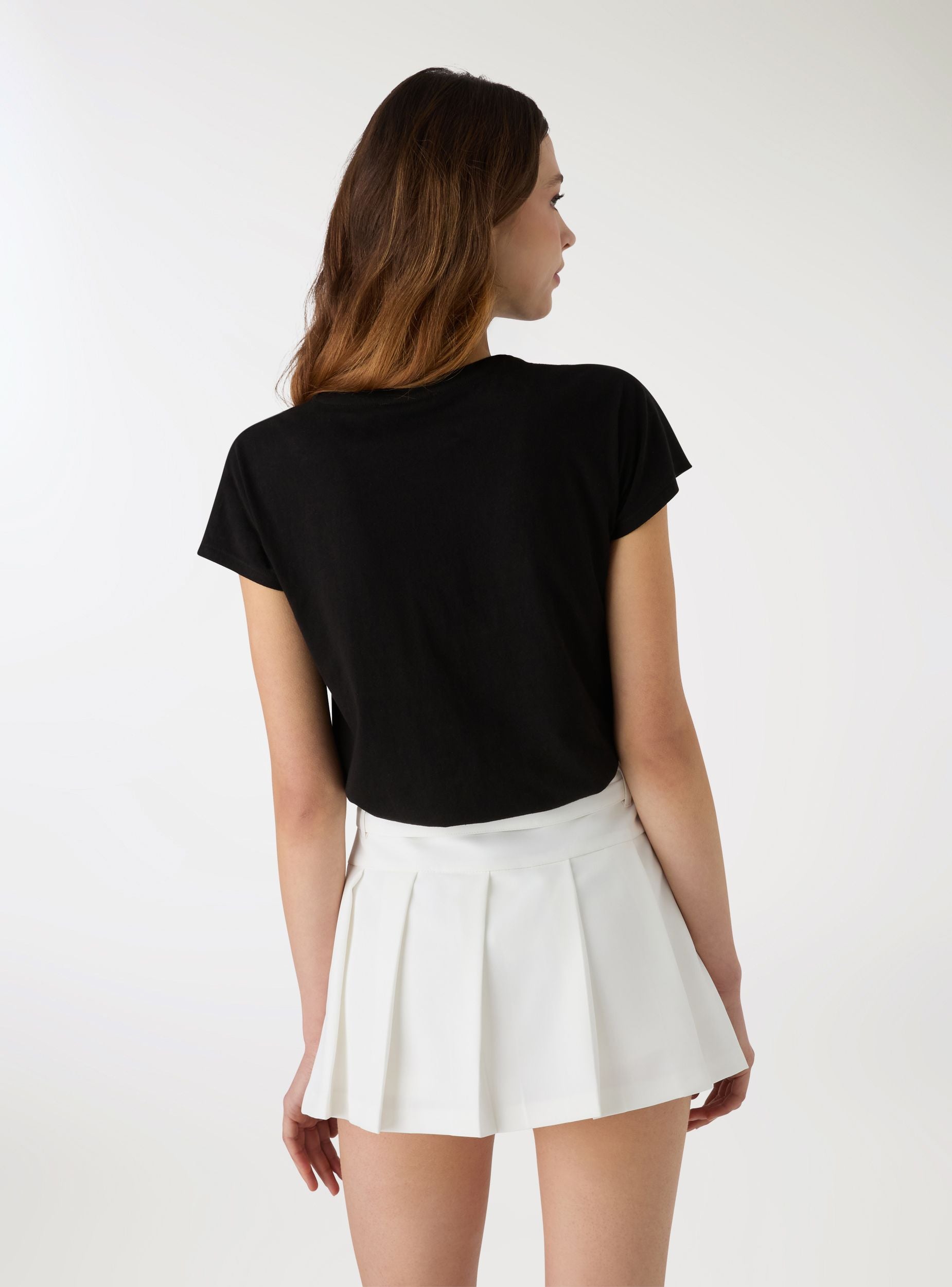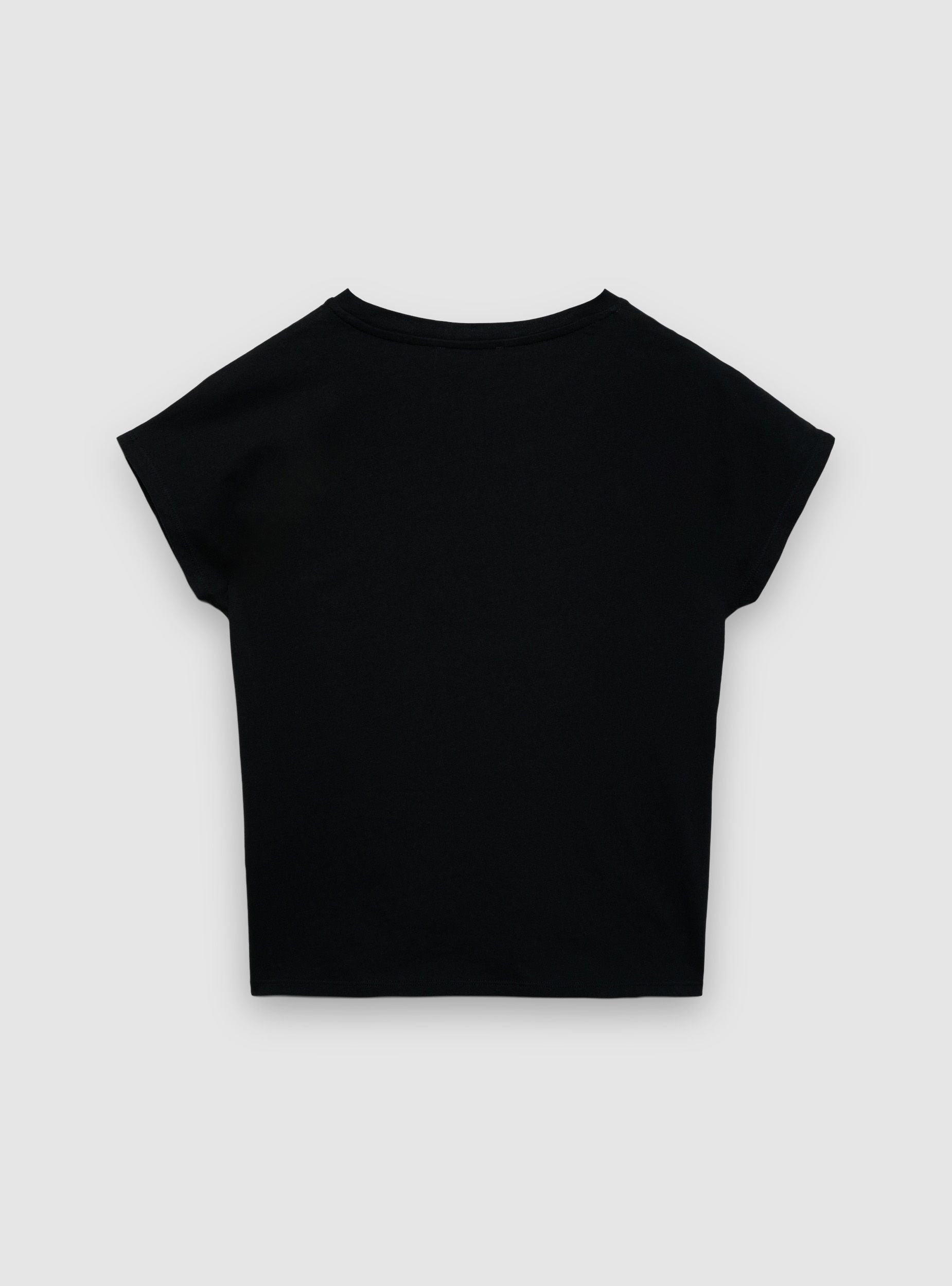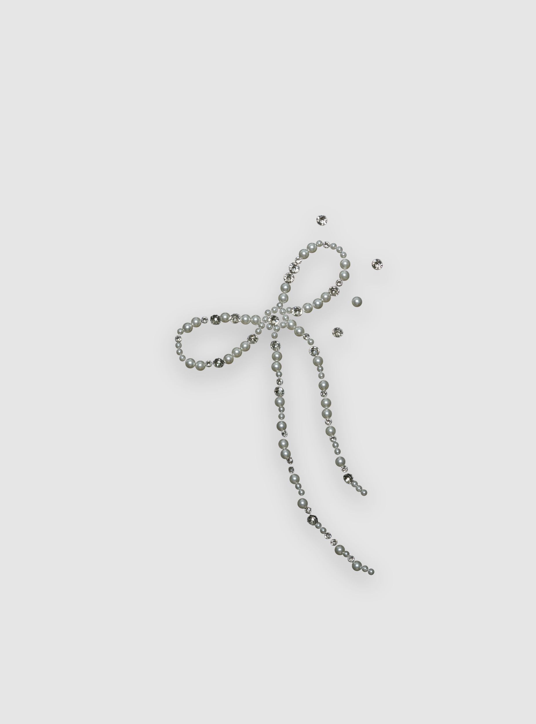 Maglietta da donna a tinta unita con maniche corte e scollo tondo, impreziosita sul davanti da applicazioni a fiocco realizzate con perle e strass. Il taglio regolare la rende comoda per ogni giorno, perfetta con jeans o gonne per un effetto femminile. Indossabile anche sotto blazer per look curati o con pantaloncini nel tempo libero.Dettagli