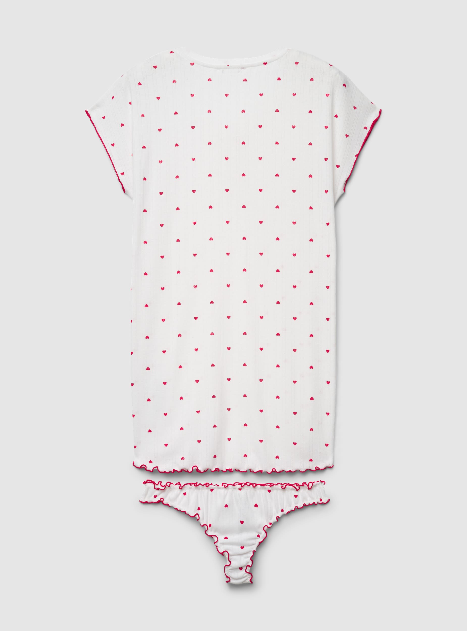 Set regalo da donna composto da t.shirt con maniche corte e scollo a V con bottoni, slip coordinato modello brasiliana dentro alla piccola pochette abbinata. Un completo ideale come idea regalo speciale o per concedersi un momento di stile anche a casa.Dettagli