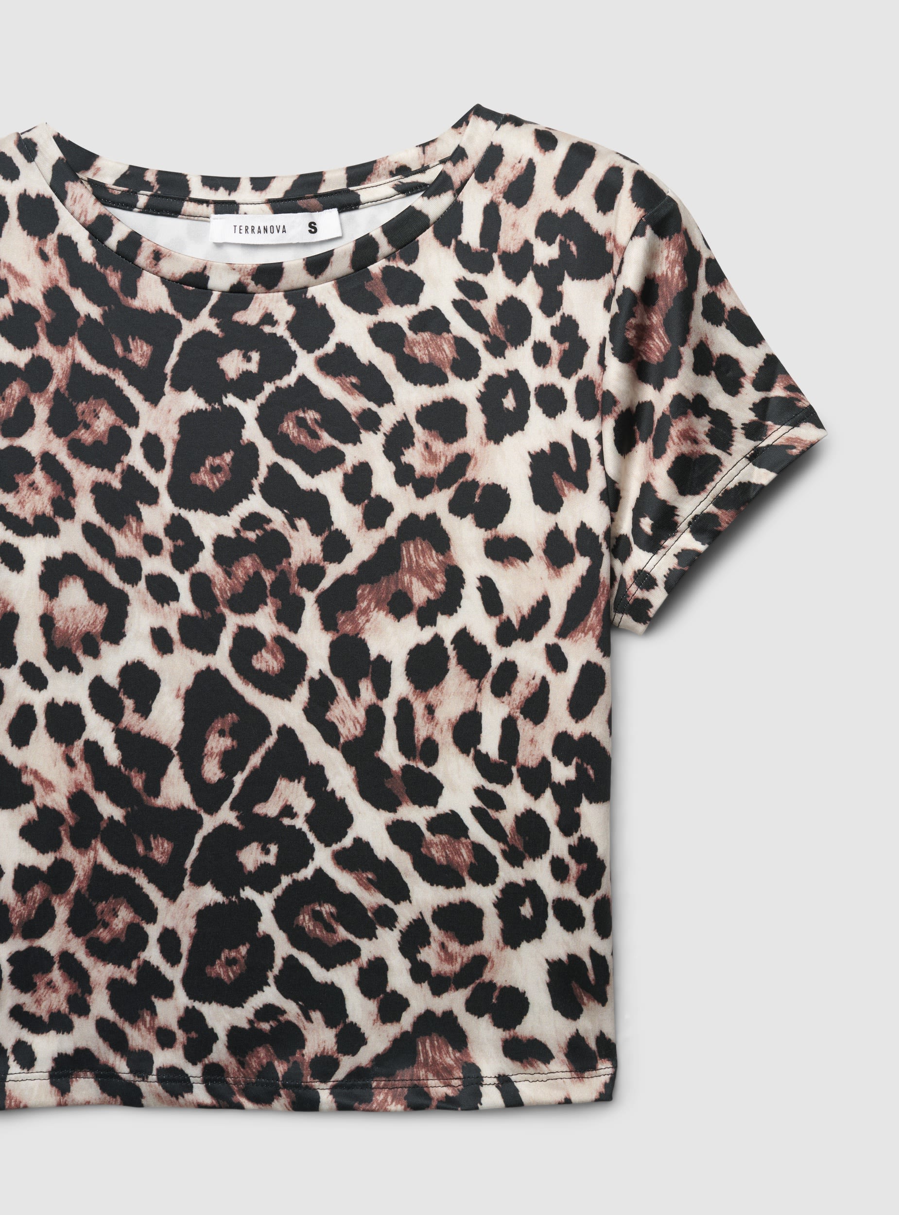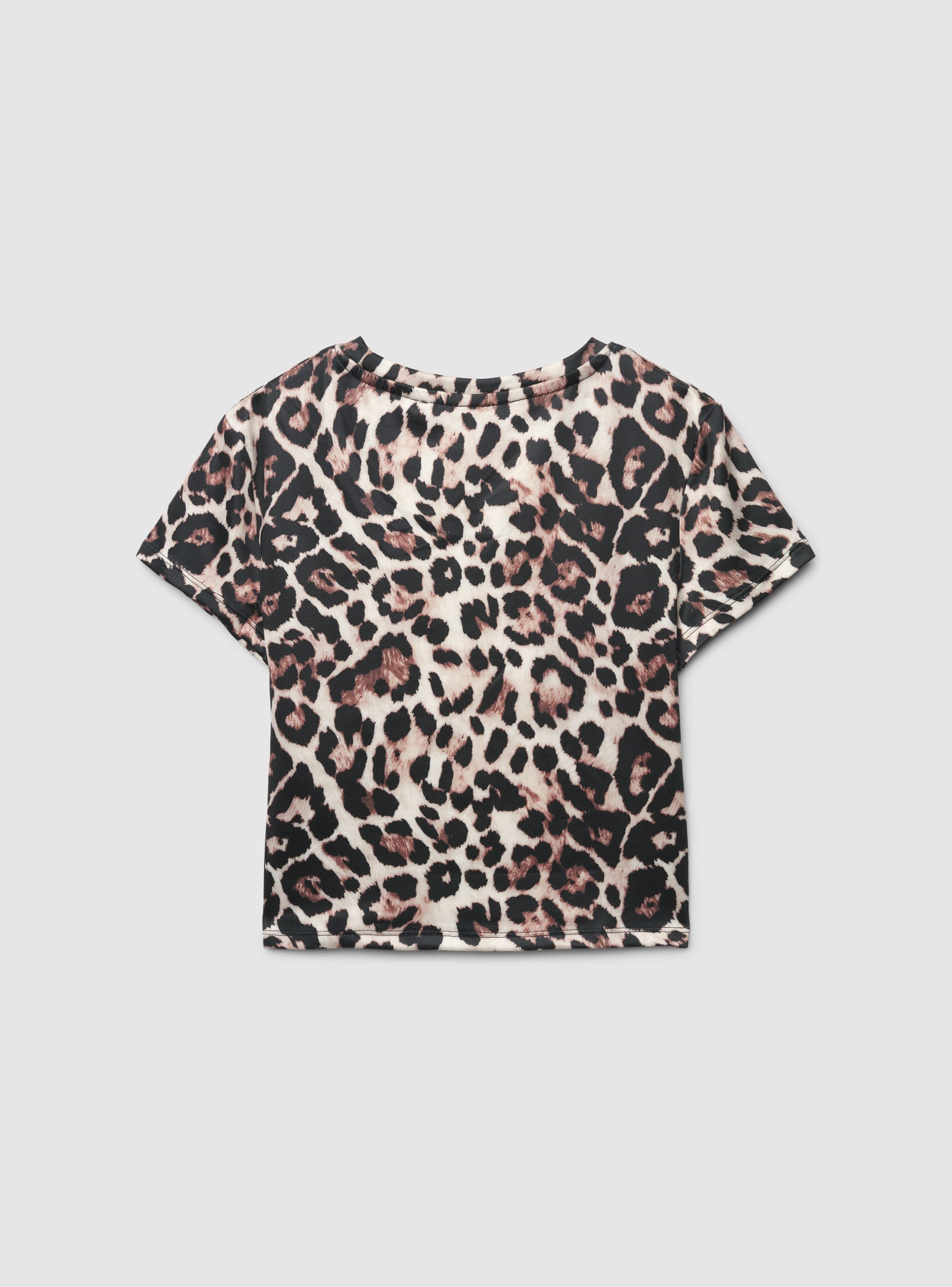 Maglietta da donna con vestibilità crop e stampa animalier. Collo rotondo e maniche corte, perfetta per look grintosi dal giorno alla sera. Facile da abbinare a jeans a vita alta, minigonne o pantaloni sartoriali per un contrasto moderno. Il design essenziale valorizza la silhouette, mentre l’elasticità del tessuto offre comfort nei movimenti. Ideale per outfit casual e urban con sneakers o sandali.Dettagli