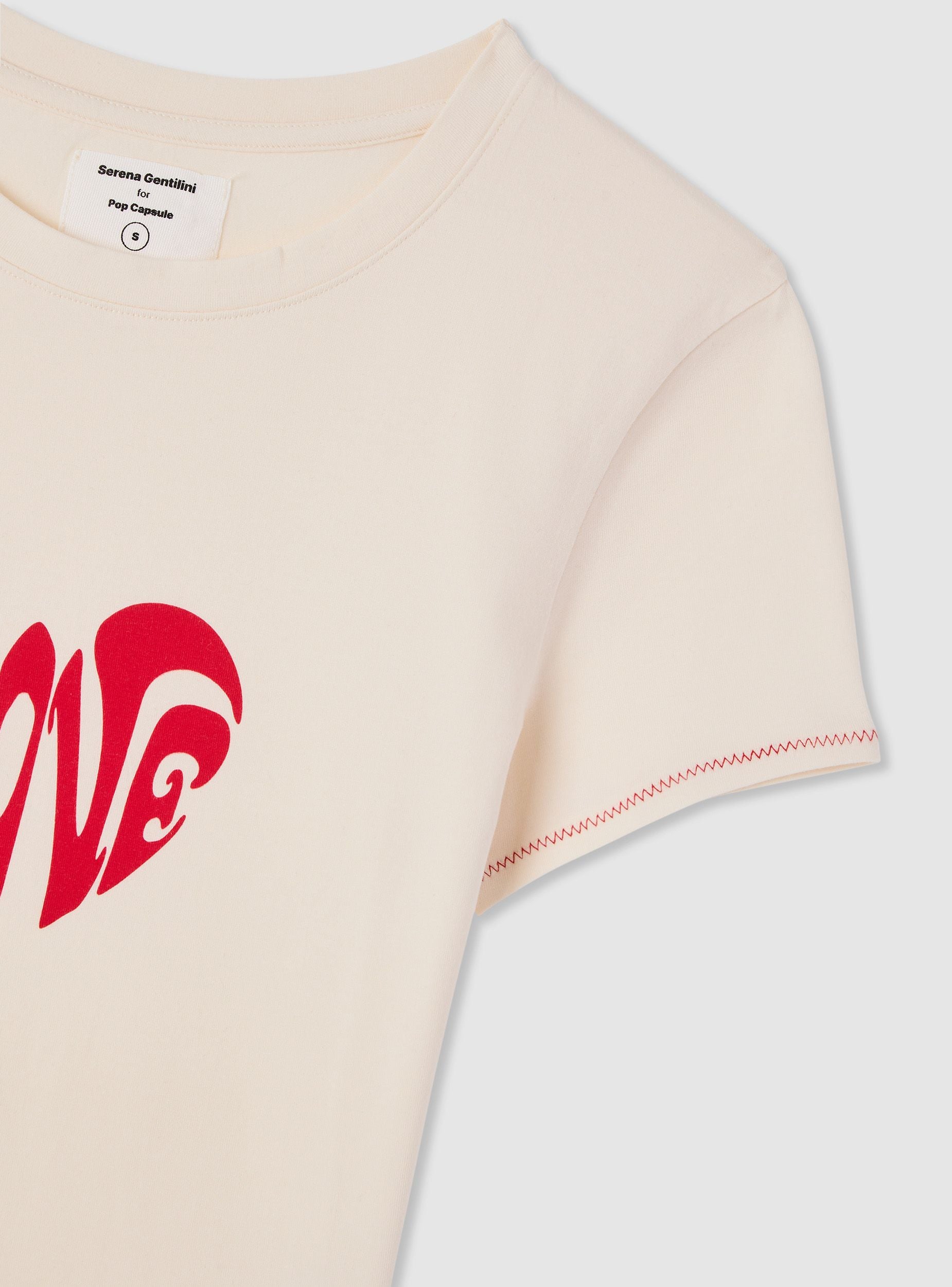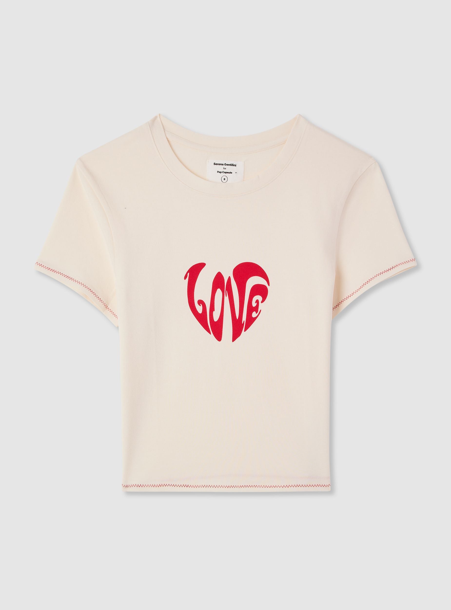 Maglietta da donna a maniche corte con vestibilità crop, ideale per outfit casual e trendy. Girocollo e cuciture decorative visibili, valorizzata da una stampa a cuore con scritta al centro che aggiunge un tocco grafico. Perfetta con jeans o gonne a vita alta per il tempo libero. Tessuto morbido e leggermente elasticizzata, offre comfort quotidiano e una linea femminile facilmente abbinabile.Dettagli