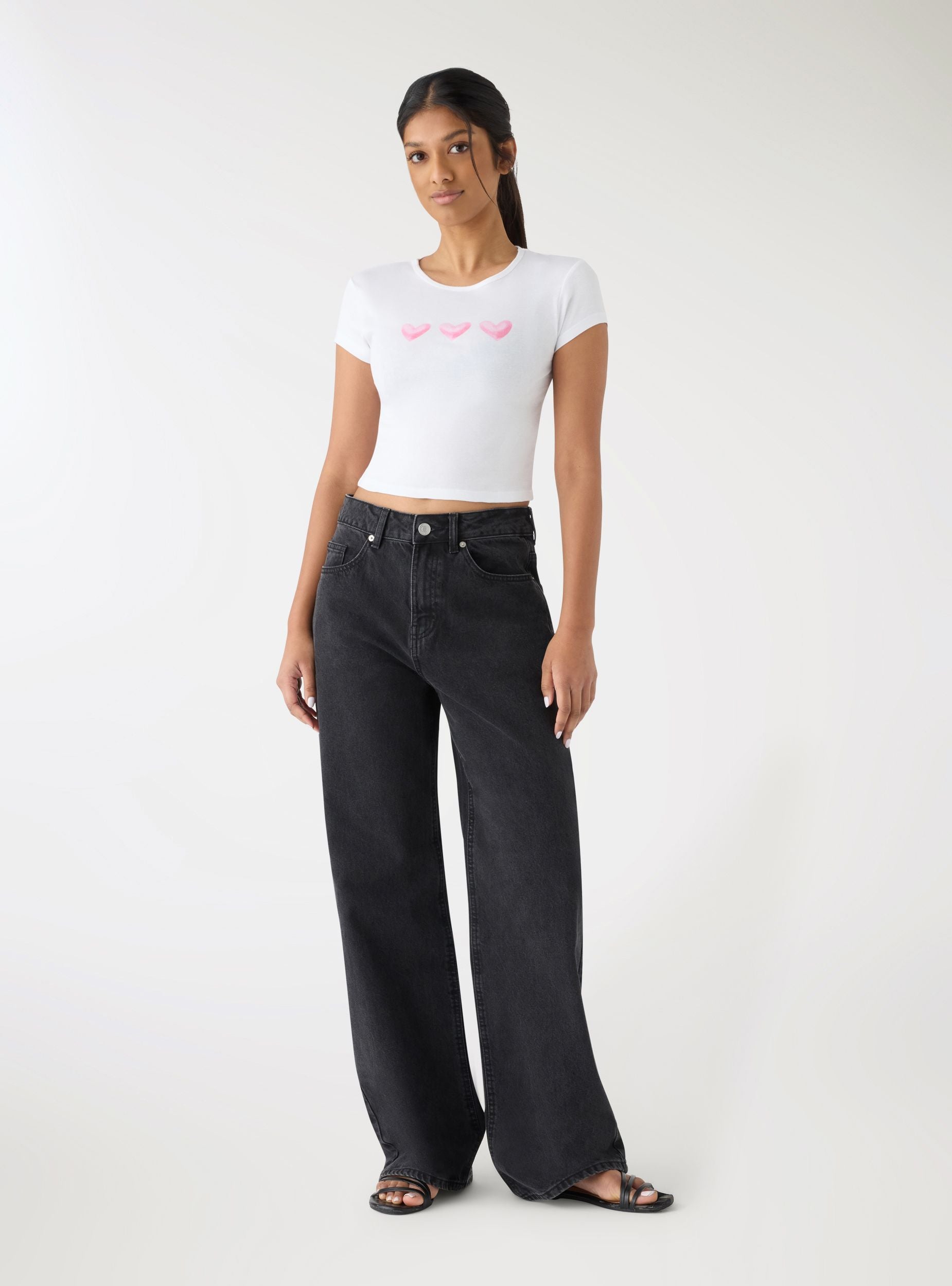 Maglietta da donna a maniche corte con vestibilità crop e scollo tondo. La grafica stampata al centro del petto aggiunge un tocco giocoso, perfetta per look casual con jeans a vita alta, minigonna o pantaloncini. Ideale per il tempo libero e le uscite di tutti i giorni, si indossa facilmente sotto una giacca leggera o una felpa.Dettagli