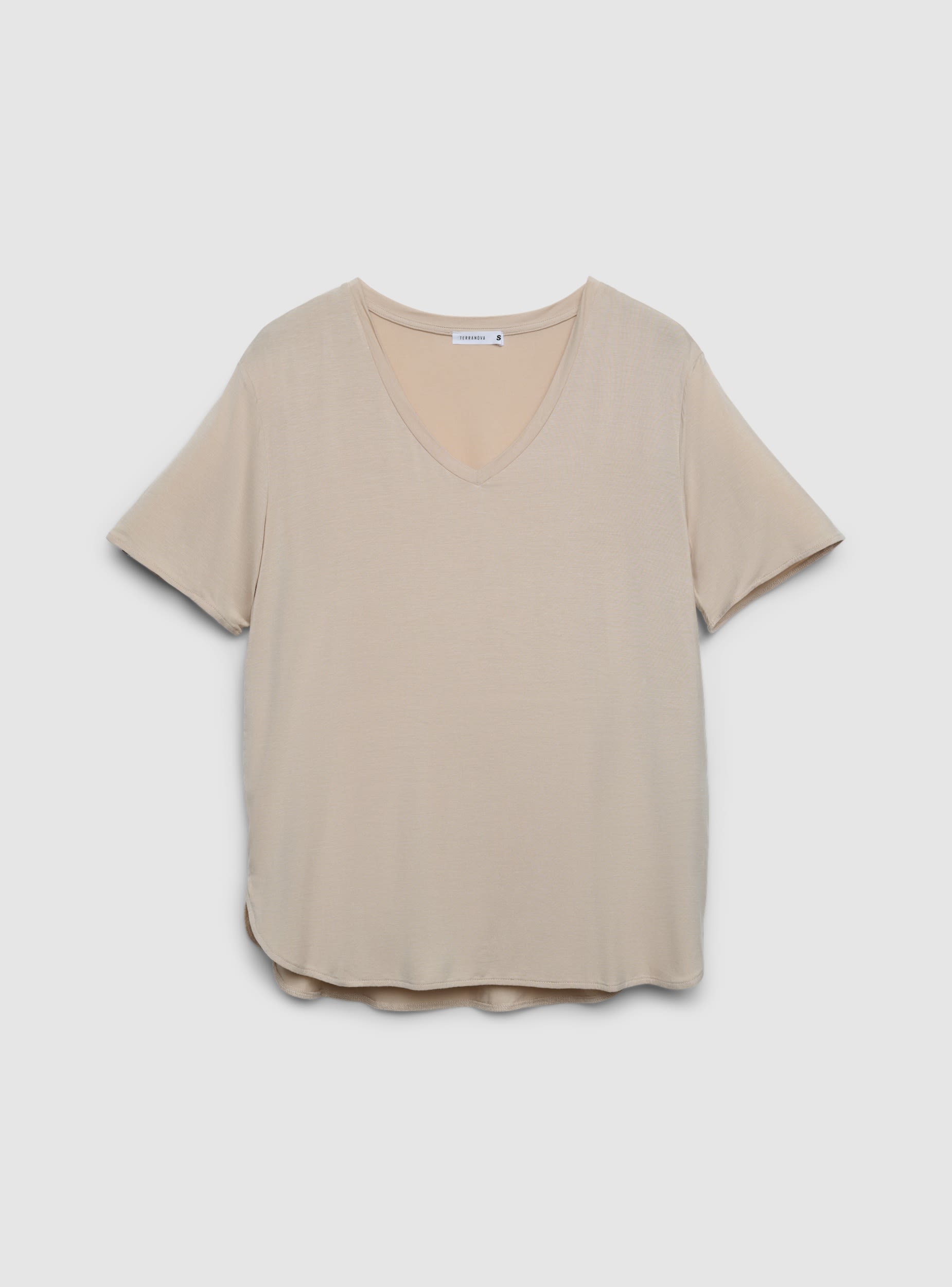Maglietta da donna con scollo a V, maniche corte e finitura a tinta unita. La vestibilità è morbida e fluida, con fondo stondato. Ideale per look casual quotidiani, facile da abbinare a jeans, gonne o pantaloncini. Perfetta anche sotto blazer leggeri. Linea essenziale e confortevole, pensata per valorizzare outfit minimal e versatili.Dettagli