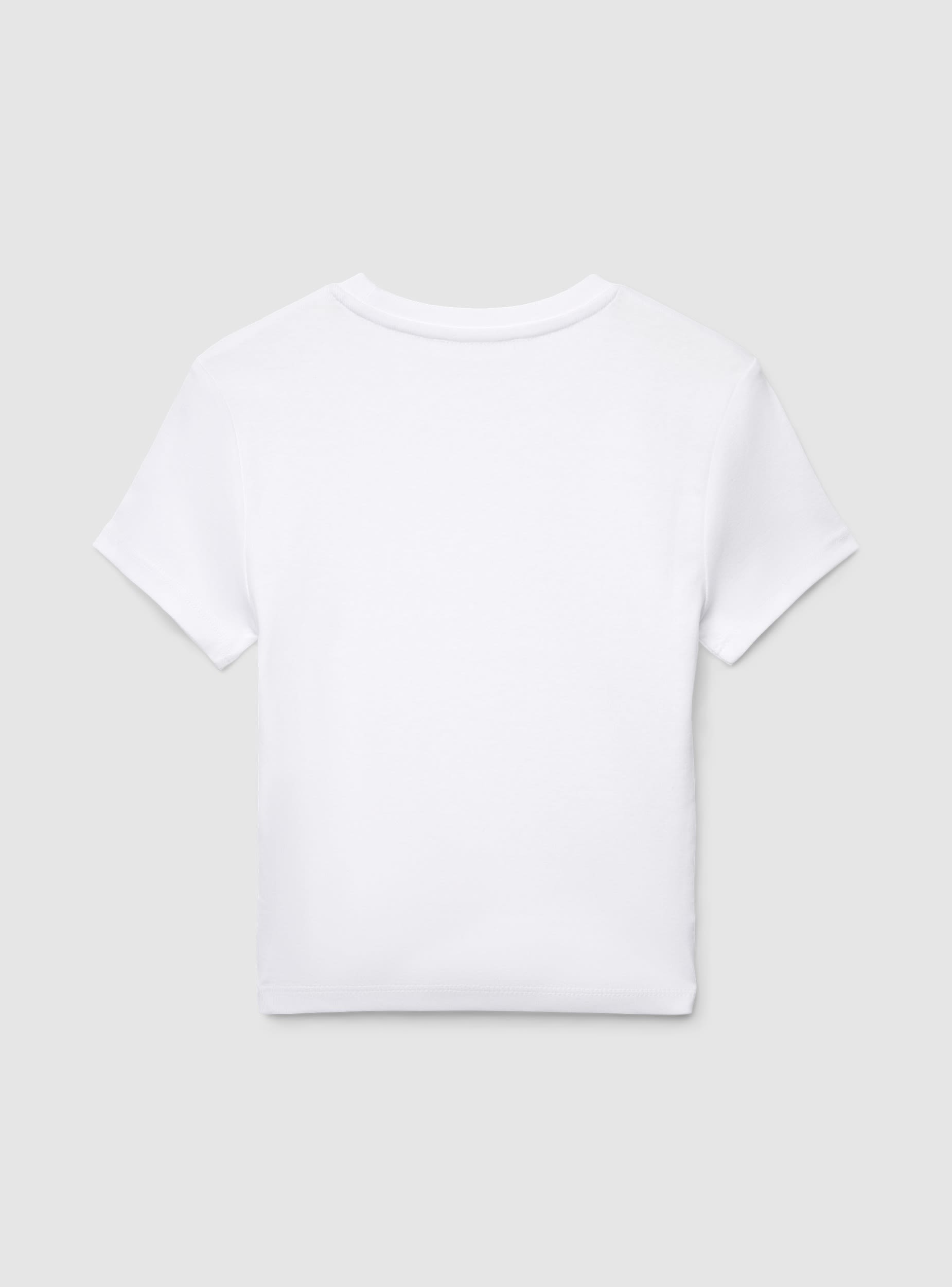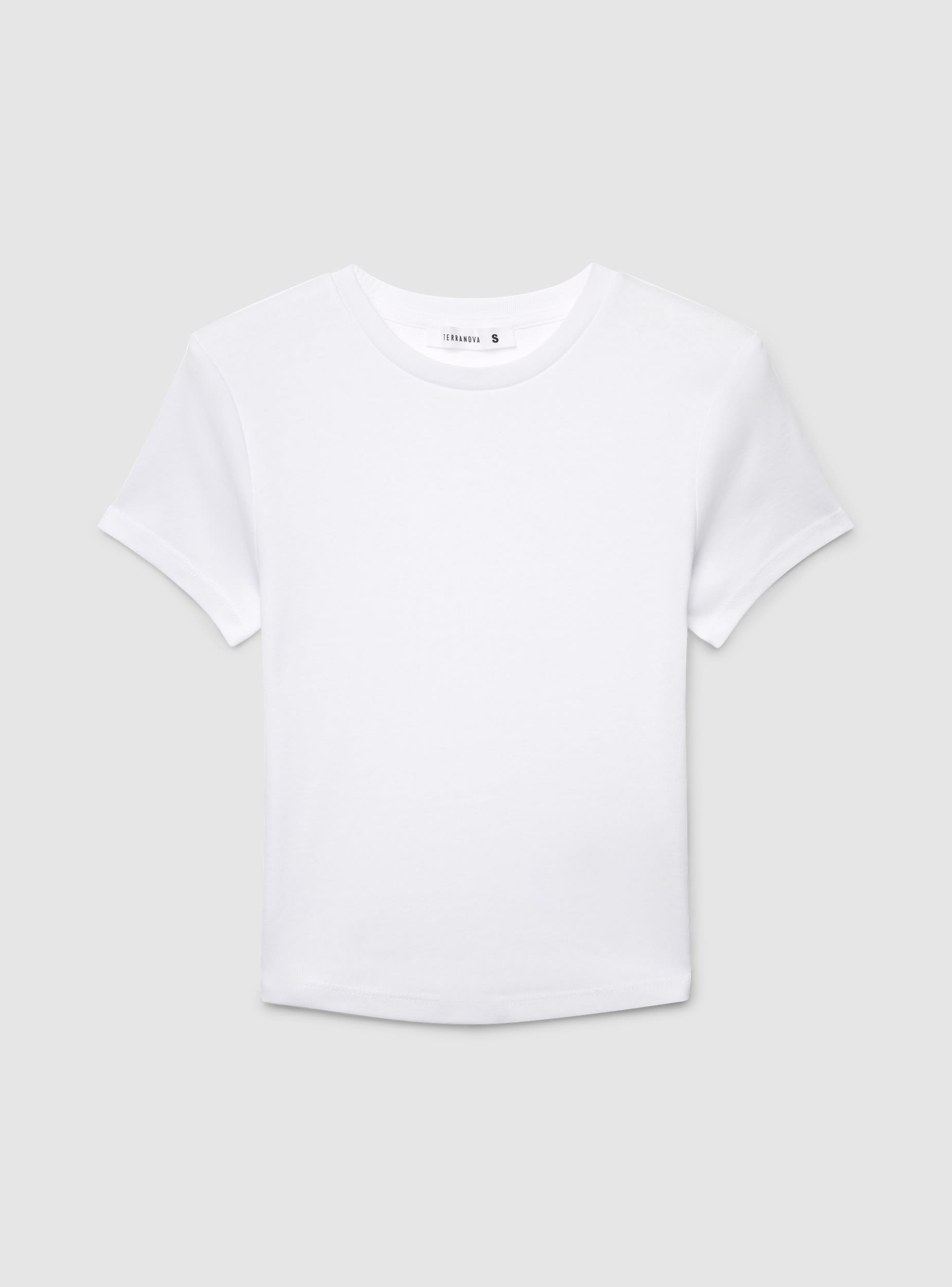 Maglietta da donna a tinta unita con vestibilità crop. Girocollo e maniche corte, design essenziale perfetto per look quotidiani. Da indossare con jeans a vita alta, gonne midi o sotto una camicia aperta per un tocco moderno. Design pulito con finiture minimal che valorizzano la linea. Versatile per il tempo libero, abbinabile a sneakers o stivaletti per outfit casual e trendy.Dettagli