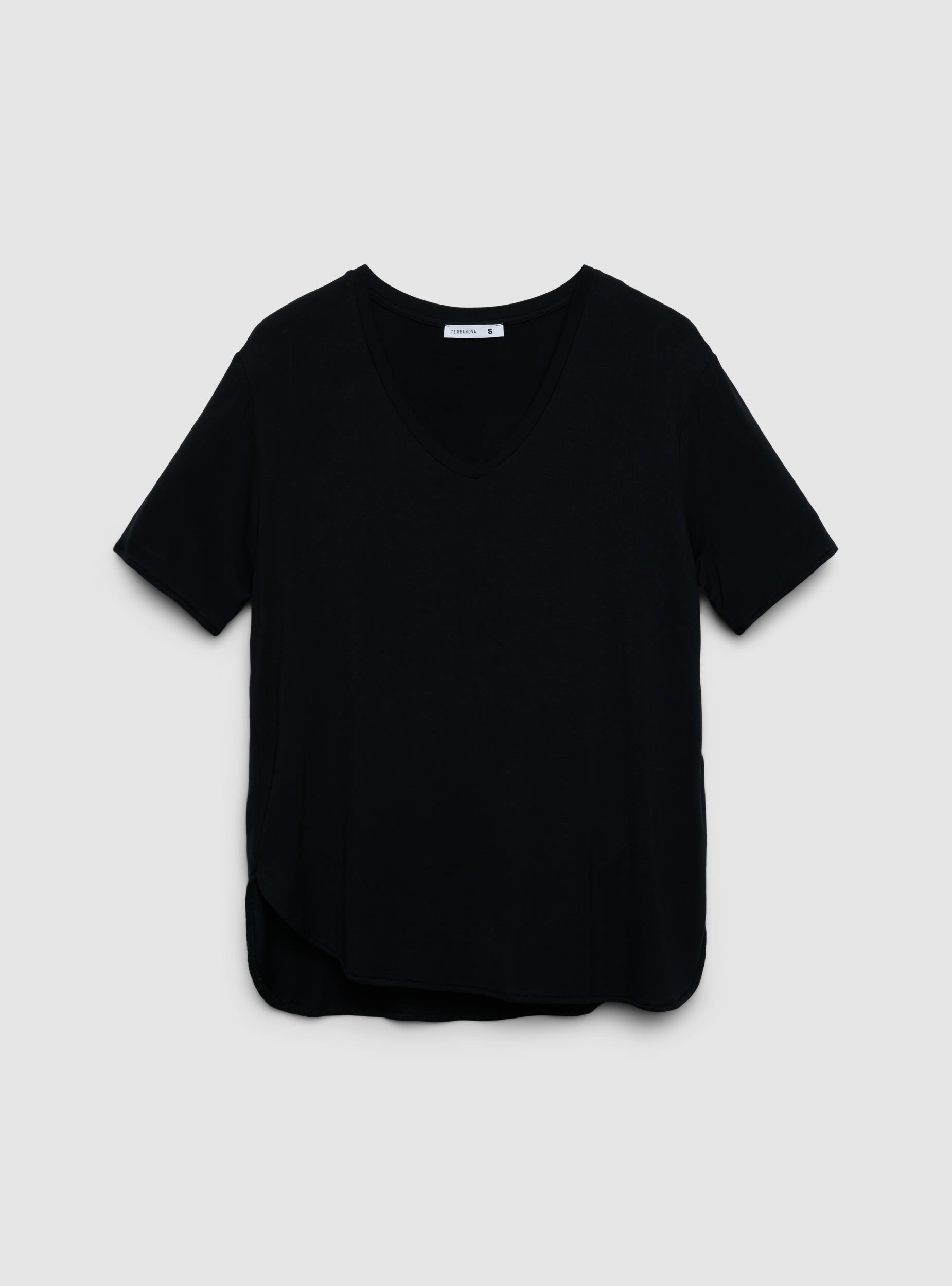 Maglietta da donna con scollo a V, maniche corte e finitura a tinta unita. La vestibilità è morbida e fluida, con fondo stondato. Ideale per look casual quotidiani, facile da abbinare a jeans, gonne o pantaloncini. Perfetta anche sotto blazer leggeri. Linea essenziale e confortevole, pensata per valorizzare outfit minimal e versatili.Dettagli