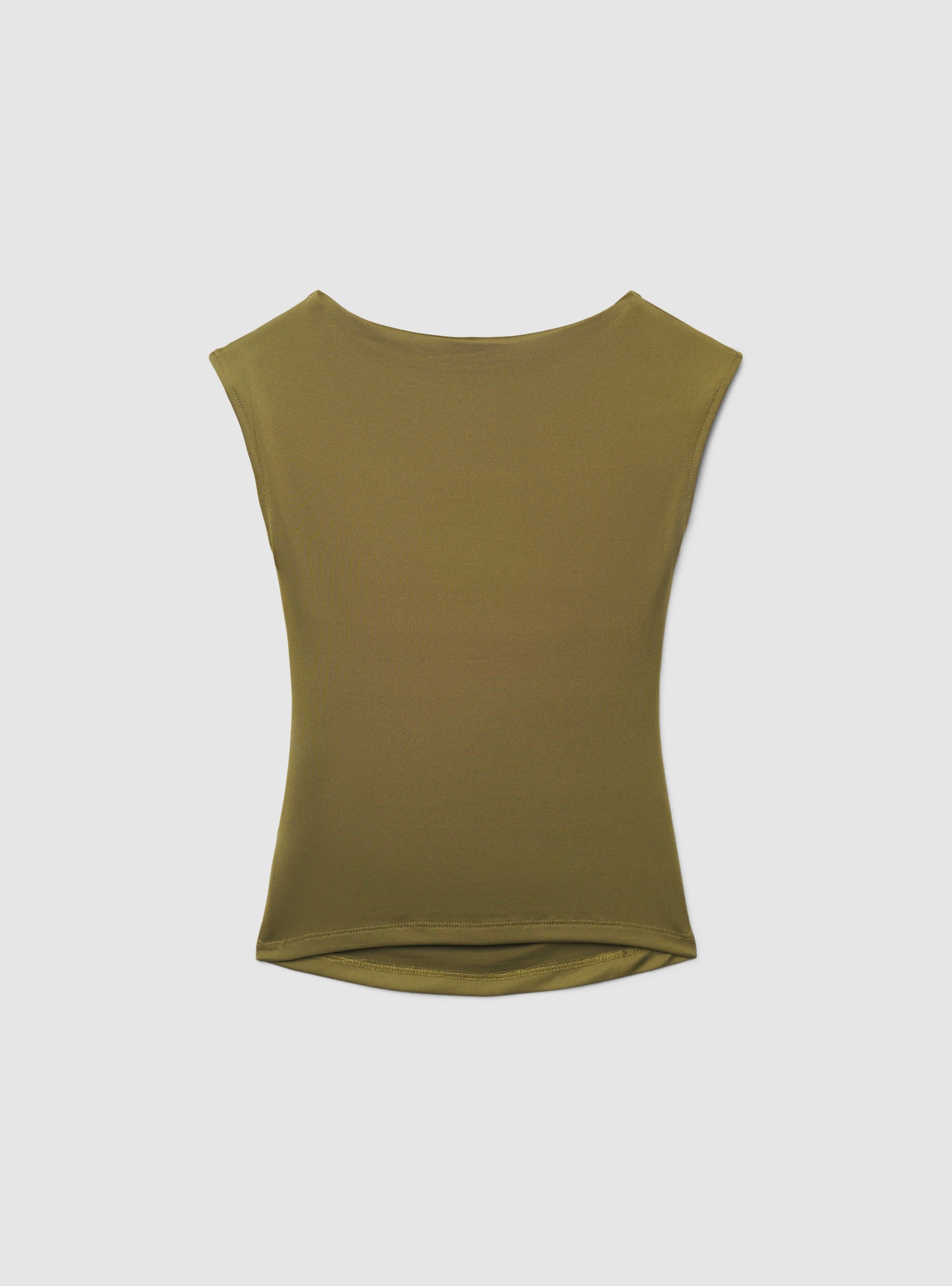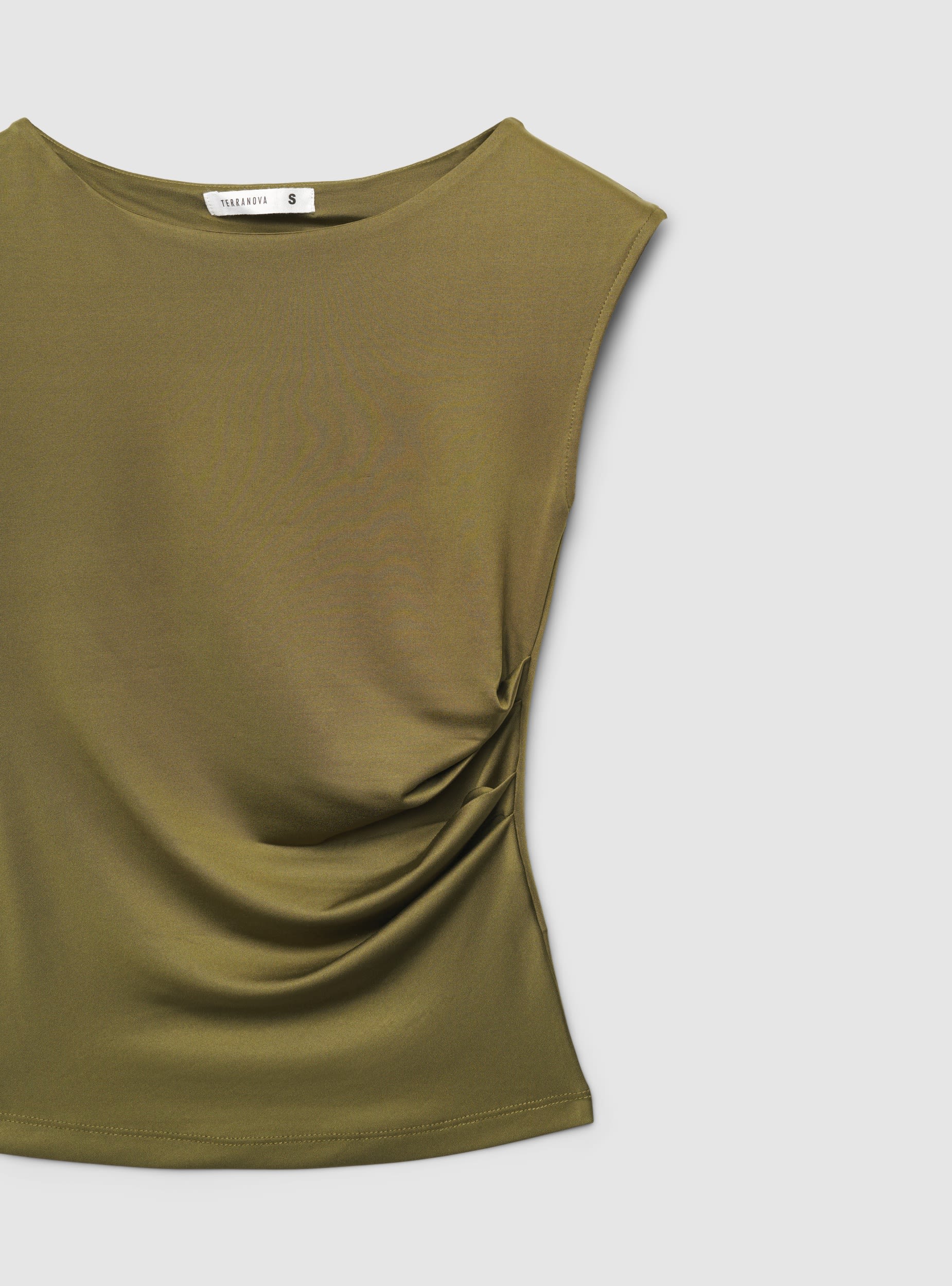 Maglietta da donna a tinta unita con tessuto elasticizzato. Design senza maniche con arricciatura laterale che valorizza la silhouette, vestibilità regular e lunghezza al fianco. Perfetta per outfit casual chic o trendy, abbinala a jeans a vita alta, pantaloni sartoriali o una gonna midi. Linea pulita e versatile per passare dal giorno alla sera.Dettagli