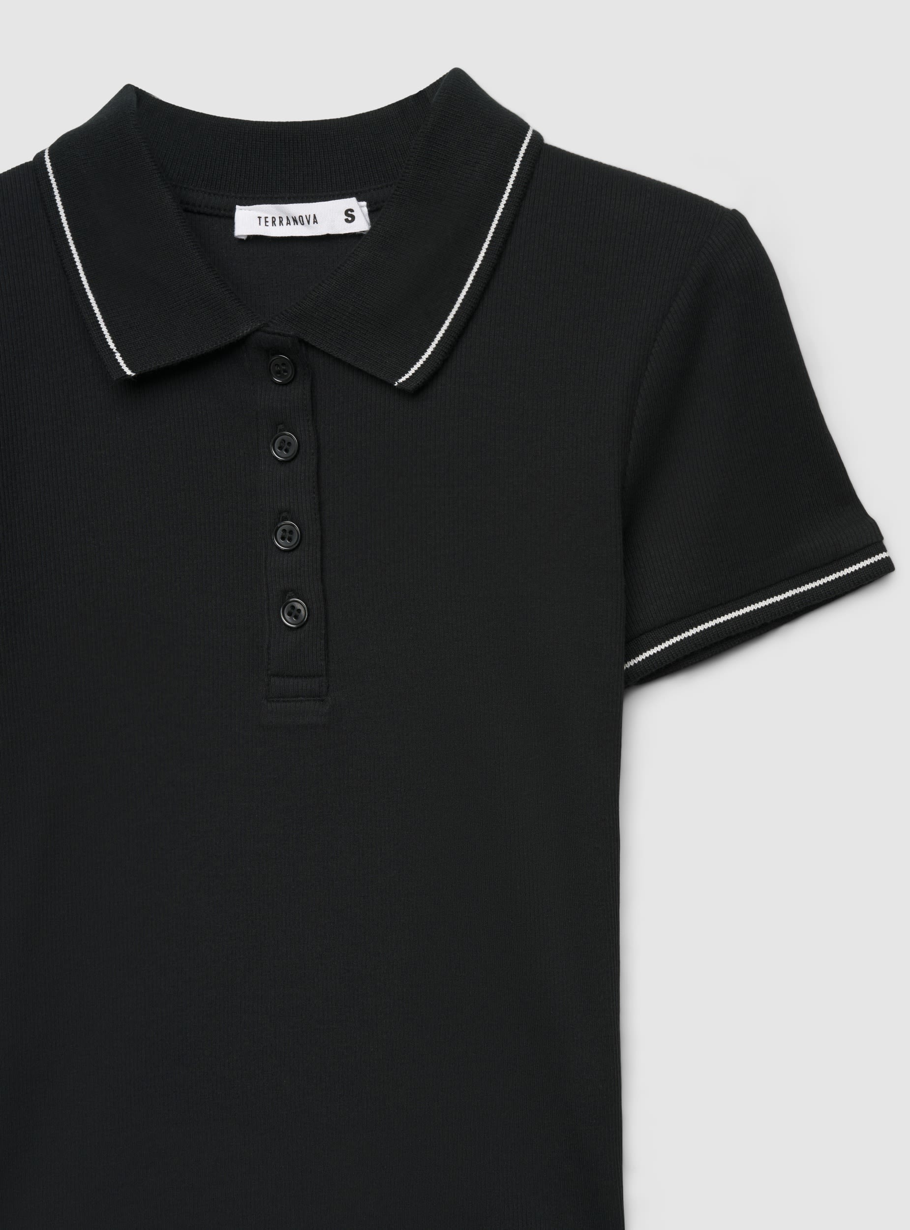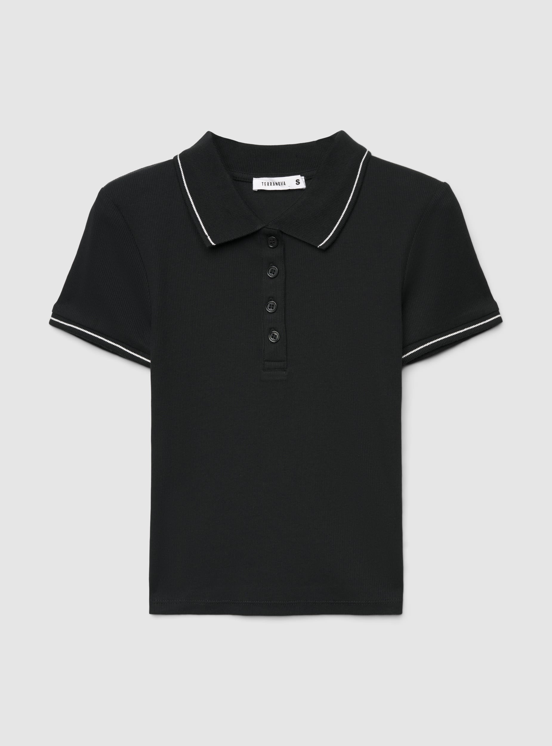 Maglietta da donna dal design polo crop a tinta unita. Colletto a punta con abbottonatura a 5 bottoni sul davanti e maniche corte. Bordini con profili a contrasto per un tocco sportivo. Vestibilità aderente che valorizza la figura, perfetta con jeans a vita alta o gonne. Ideale per il tempo libero e look urban curati grazie al taglio corto e alla lavorazione a costine che segue i movimenti.Dettagli