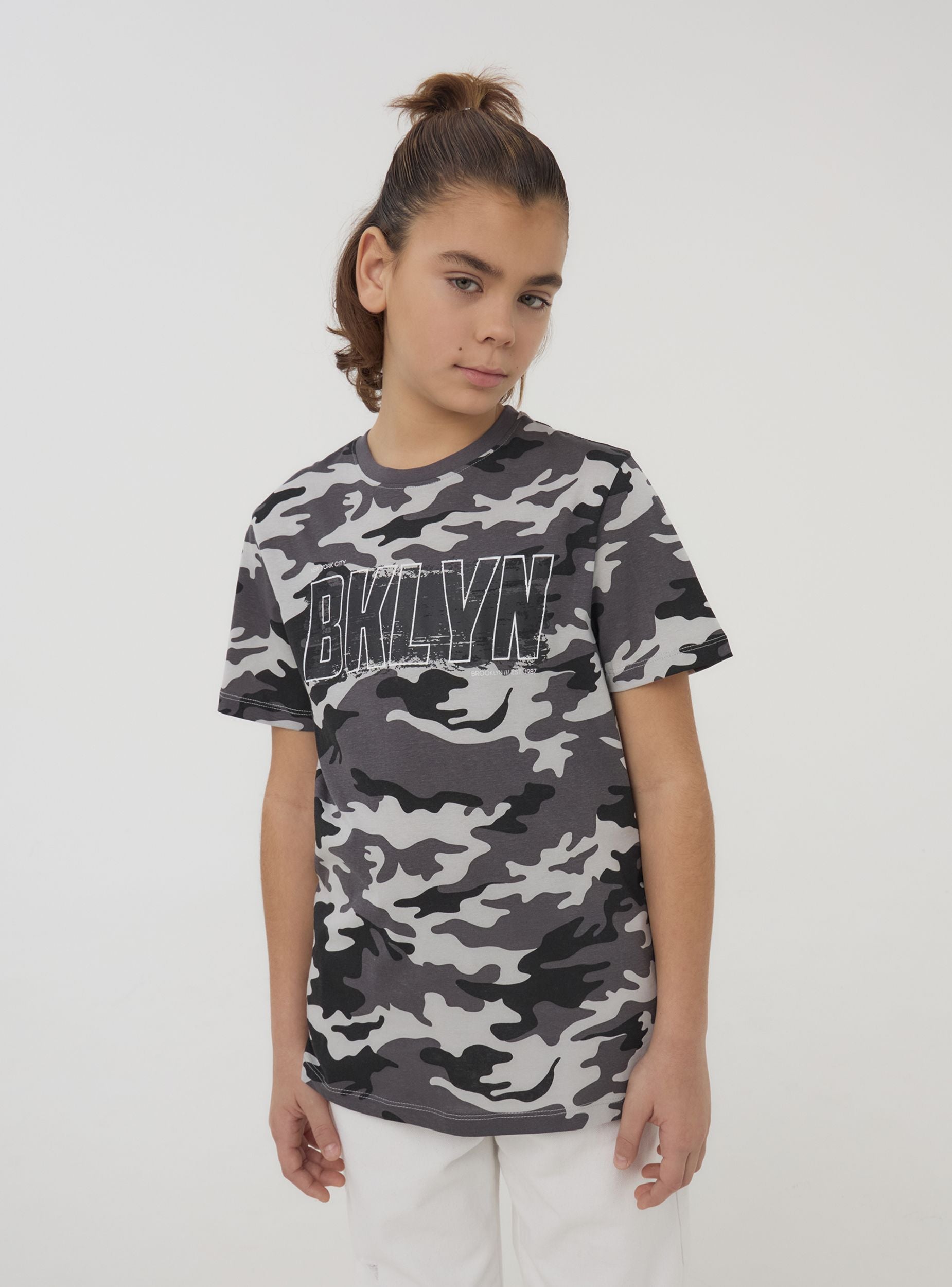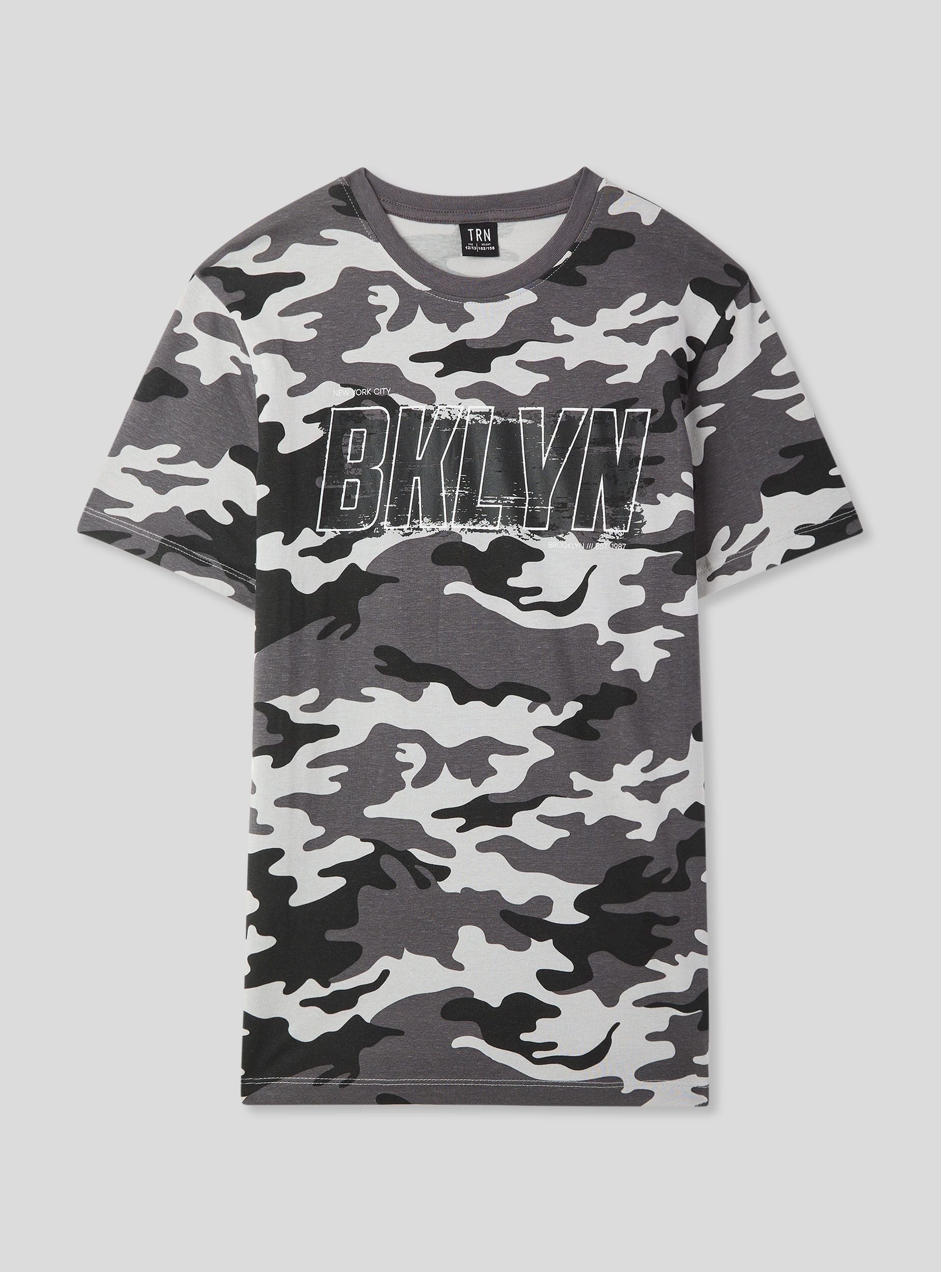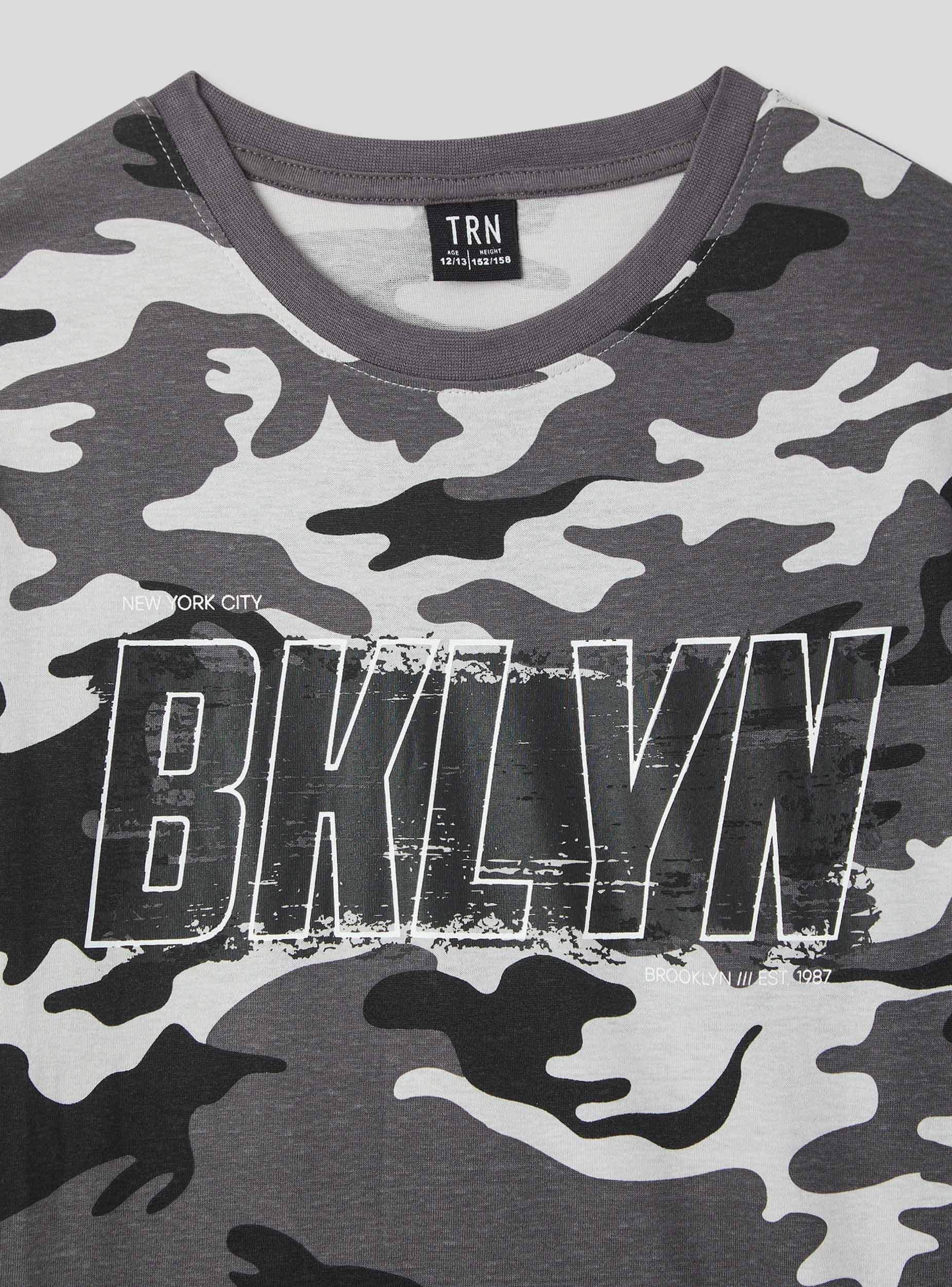 Maglietta da bambino dallo stile grintoso e moderno, caratterizzata da una stampa mimetica e una scritta di grande impatto. Le maniche corte e il girocollo garantiscono comfort e libertà di movimento. Perfetta per look casual e dinamici, si abbina facilmente a jeans, pantaloni cargo o bermuda. Ideale per la scuola, il tempo libero o le avventure all’aria aperta con gli amici.Dettagli