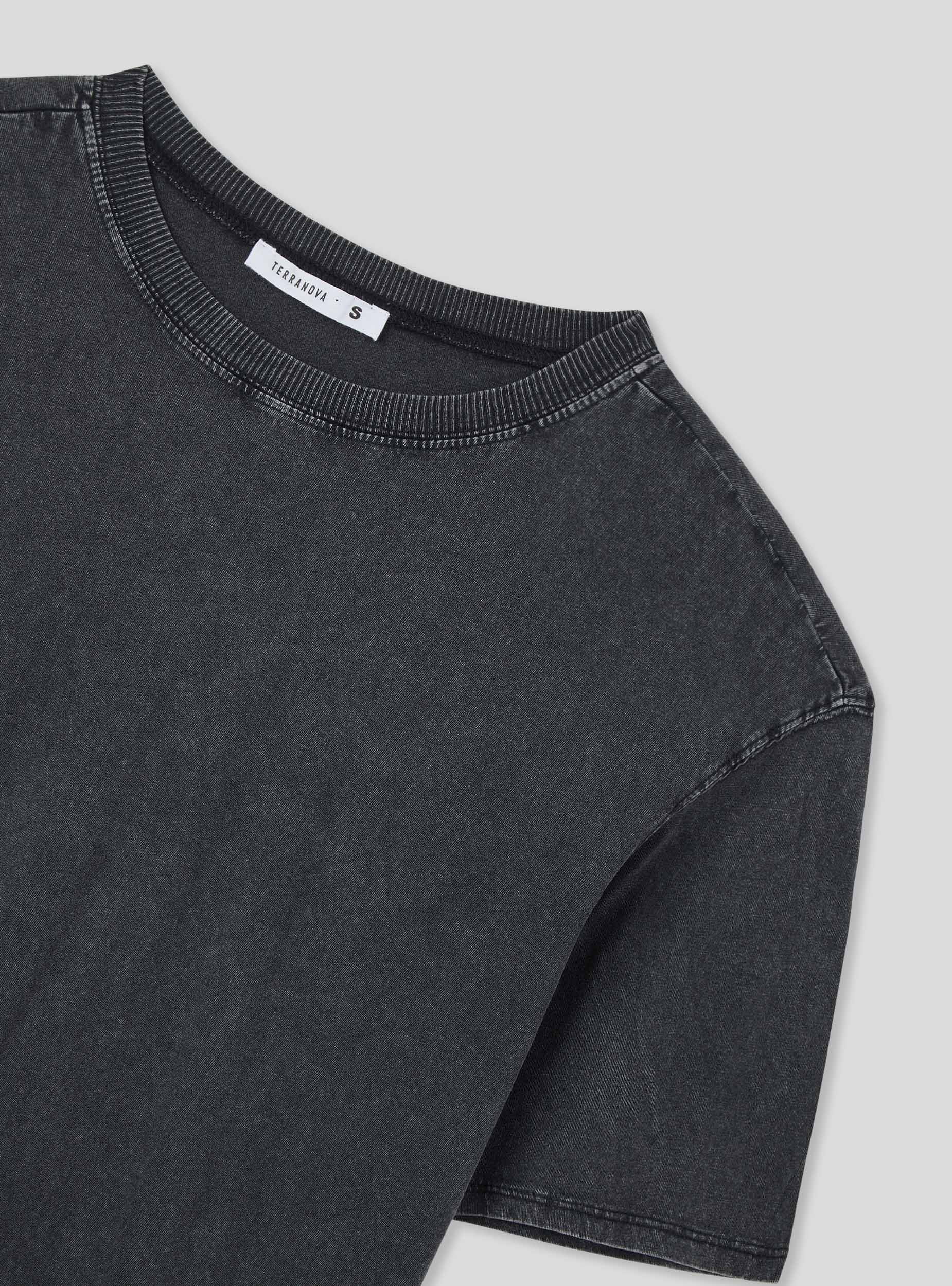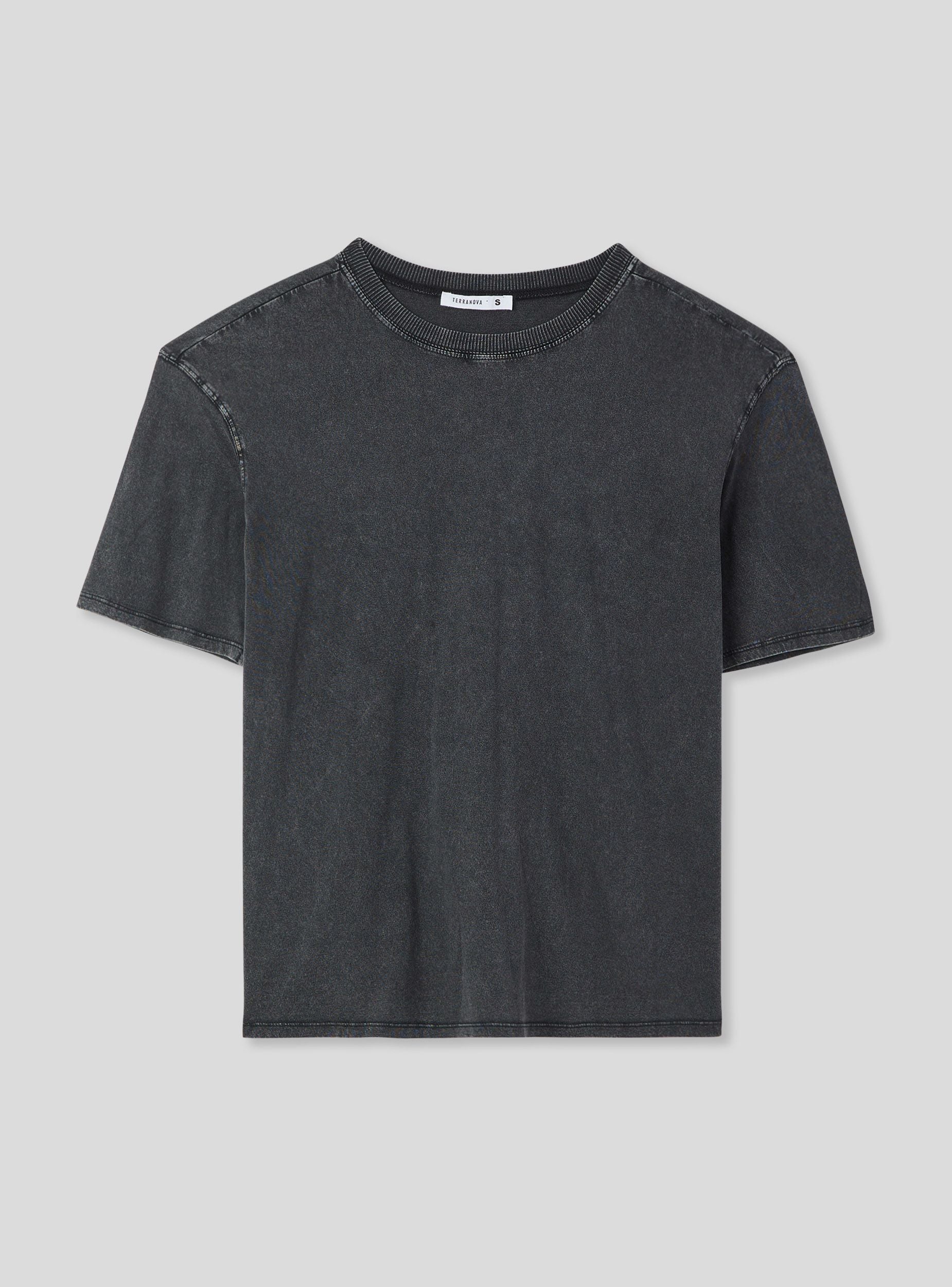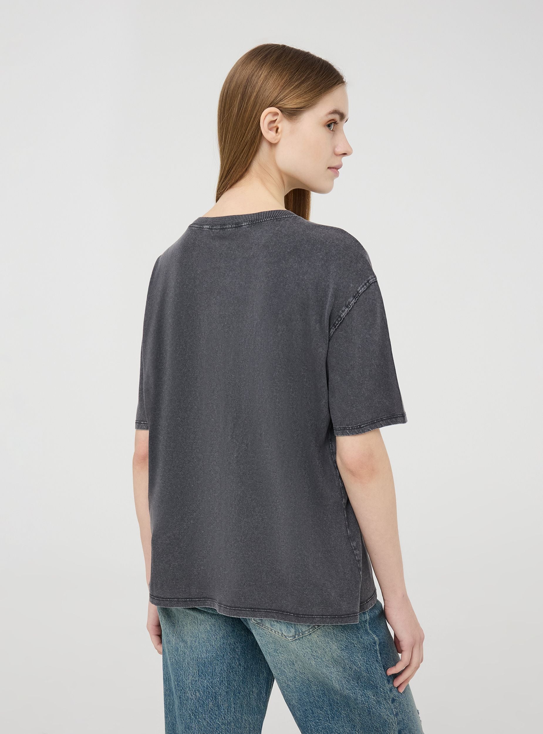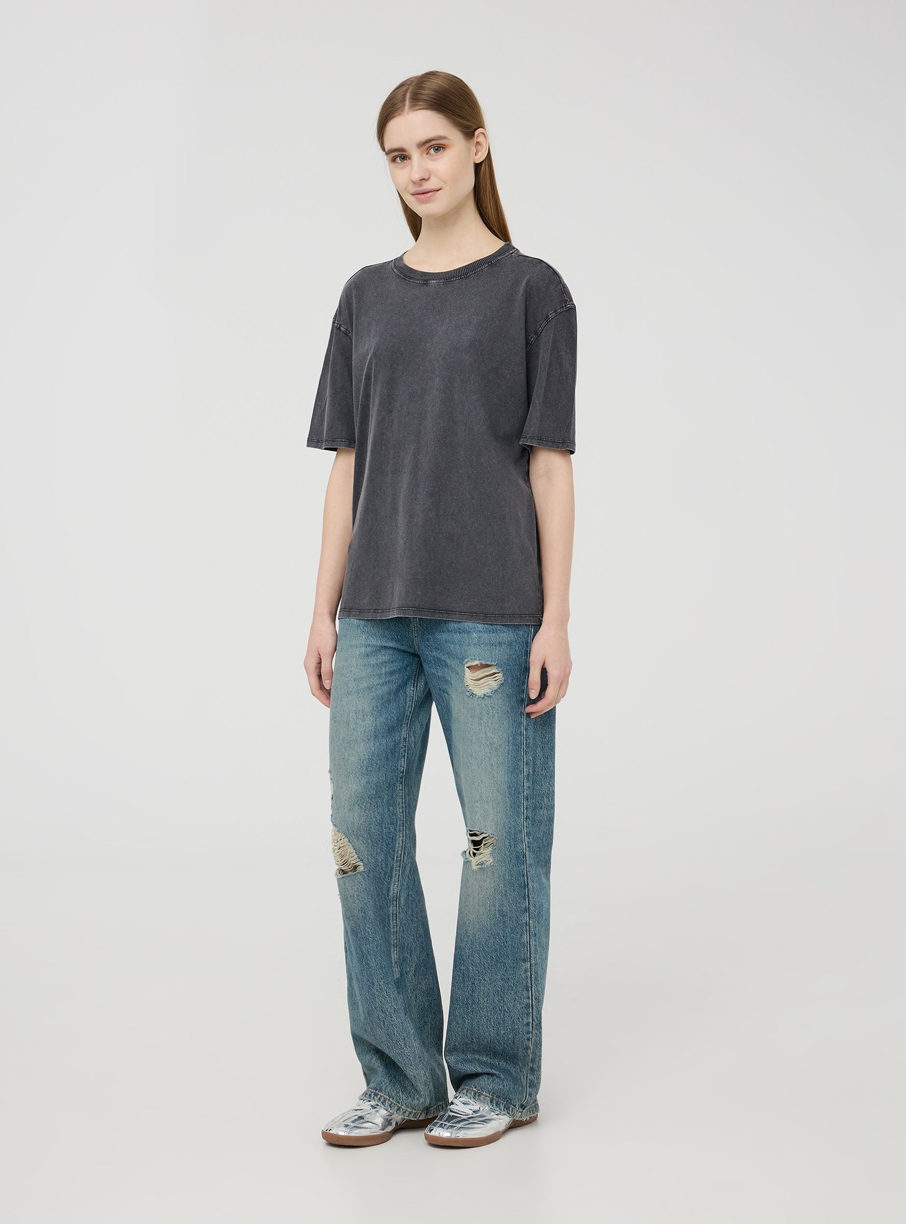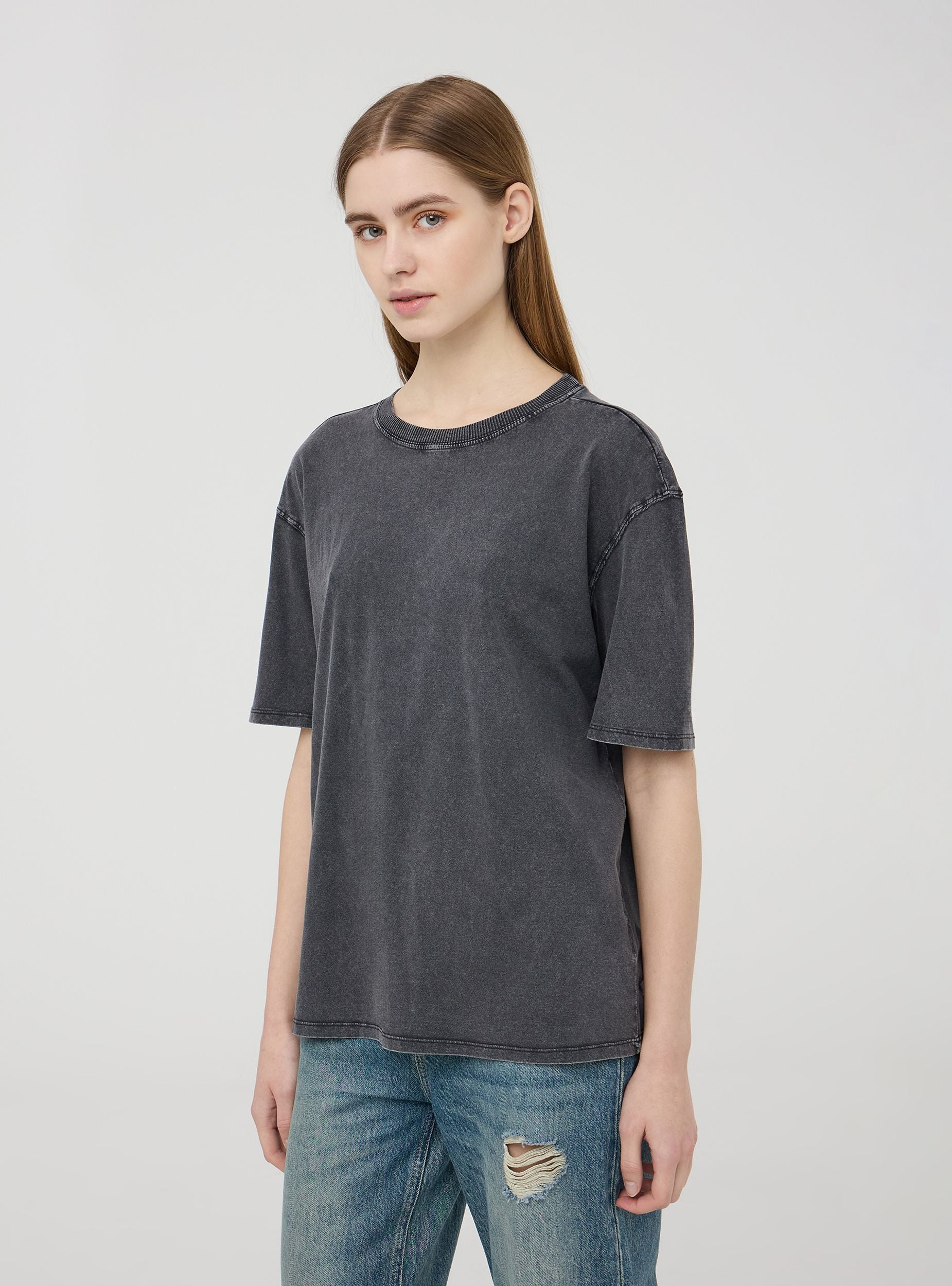 Maglietta da donna con taglio oversize e un effetto tinto in capo che le conferisce un look vintage e vissuto. Presenta maniche corte e ampie, con cuciture visibili che aggiungono un tocco di carattere al design. Il capo ha uno scollo rotondo e un taglio dritto, perfetto per un look casual e rilassato. Questa maglietta priva di decorazioni mantiene uno stile essenziale. Ideale per abbinamenti informali.Dettagli