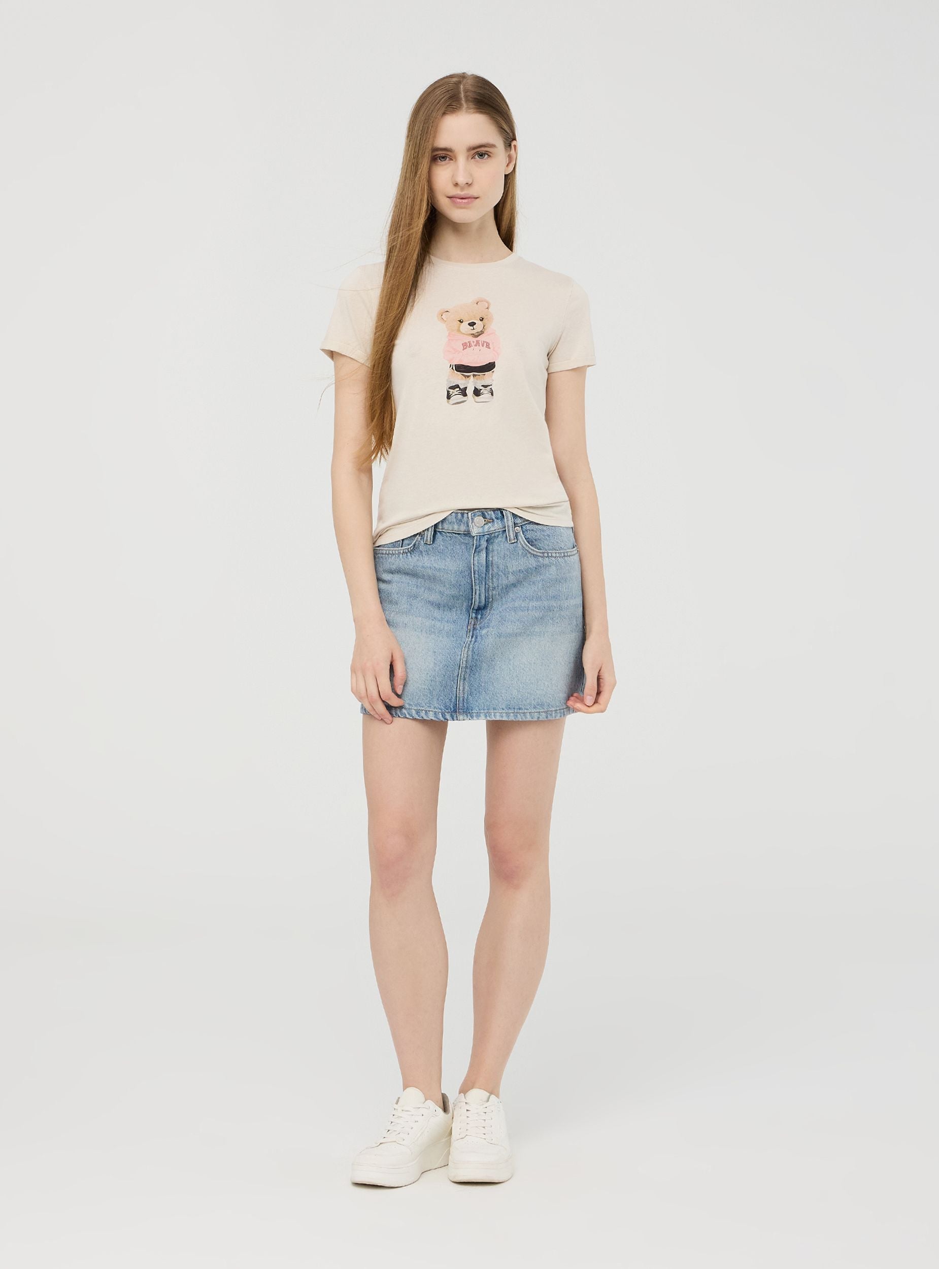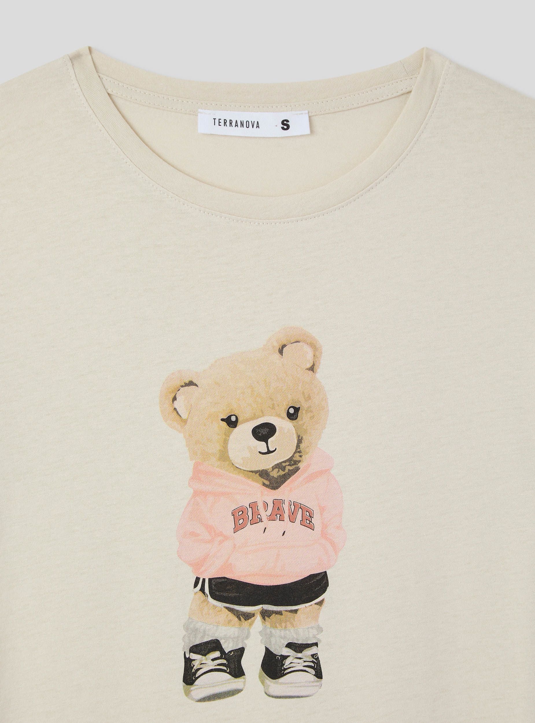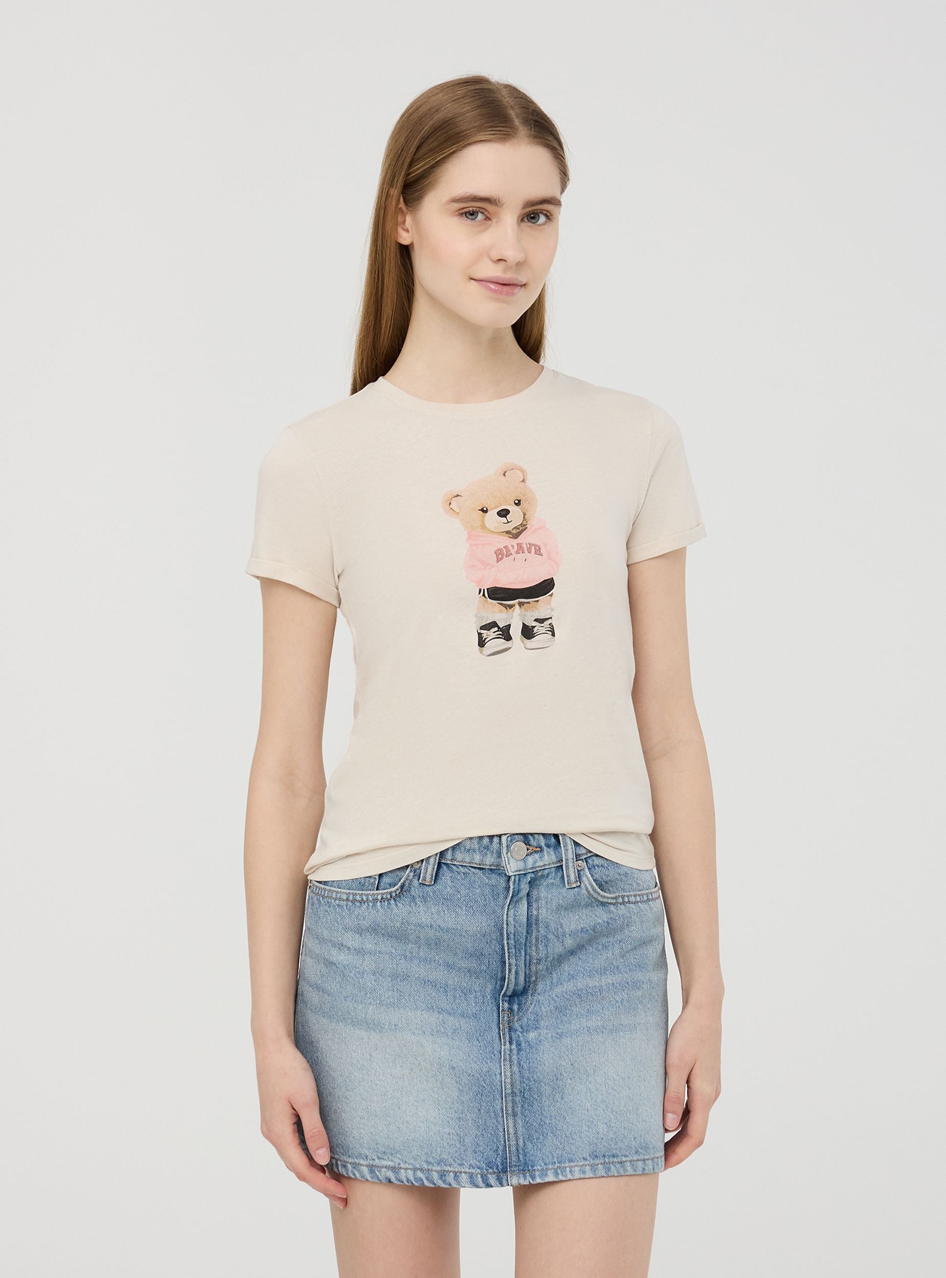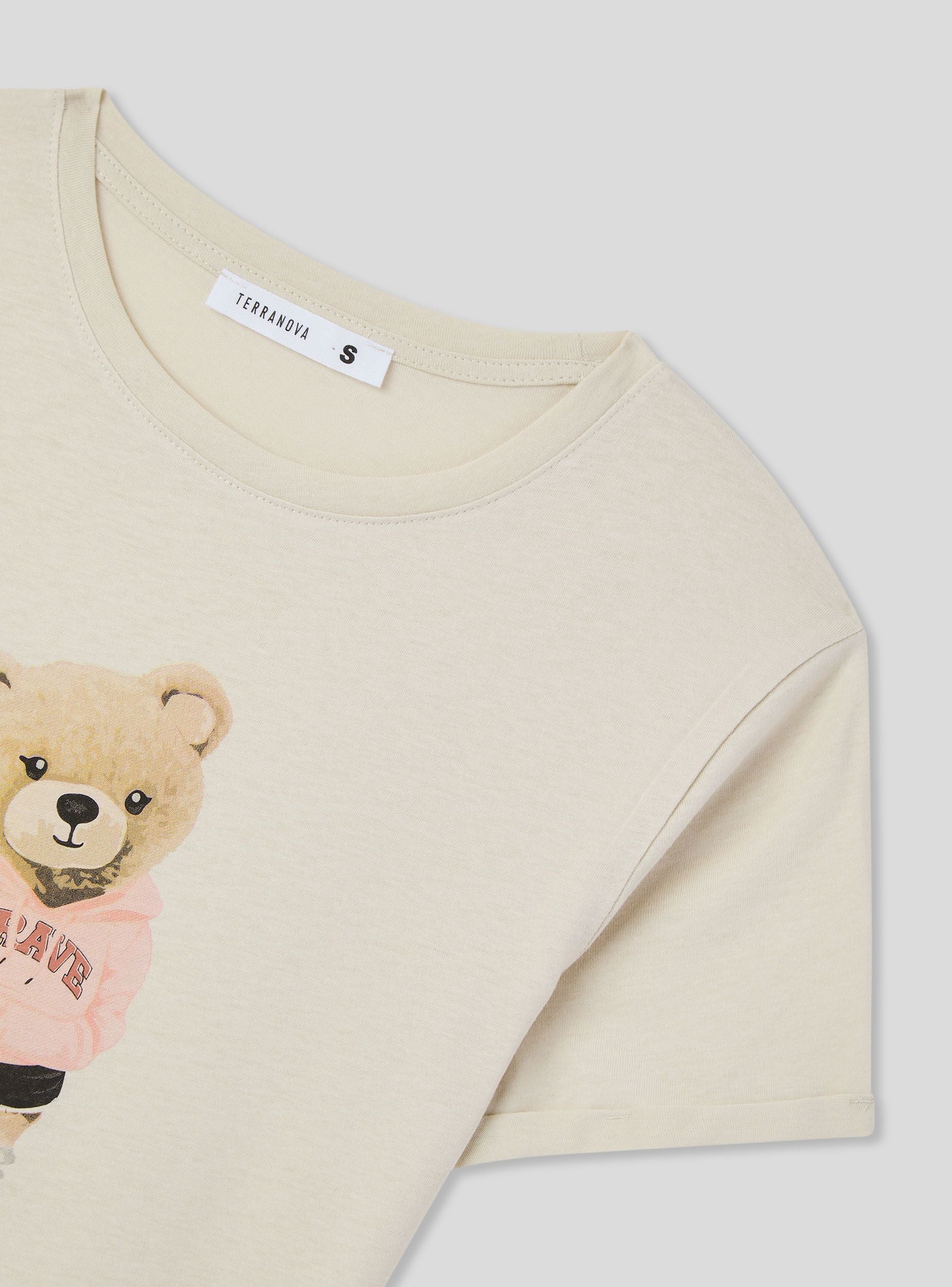 Maglietta da donna con vestibilità slim fit, perfetta per esaltare la silhouette in modo confortevole. Il girocollo aggiunge un tocco semplice e versatile, ideale per abbinamenti casual. La stampa frontale raffigura un simpatico orsetto vestito in stile sportivo, che dona un'aria giocosa e vivace al capo. Le maniche corte, rifinite con un leggero risvolto, completano il design rendendolo adatto sia per look quotidiani che per momenti di relax, mantenendo uno stile fresco e originale.Dettagli