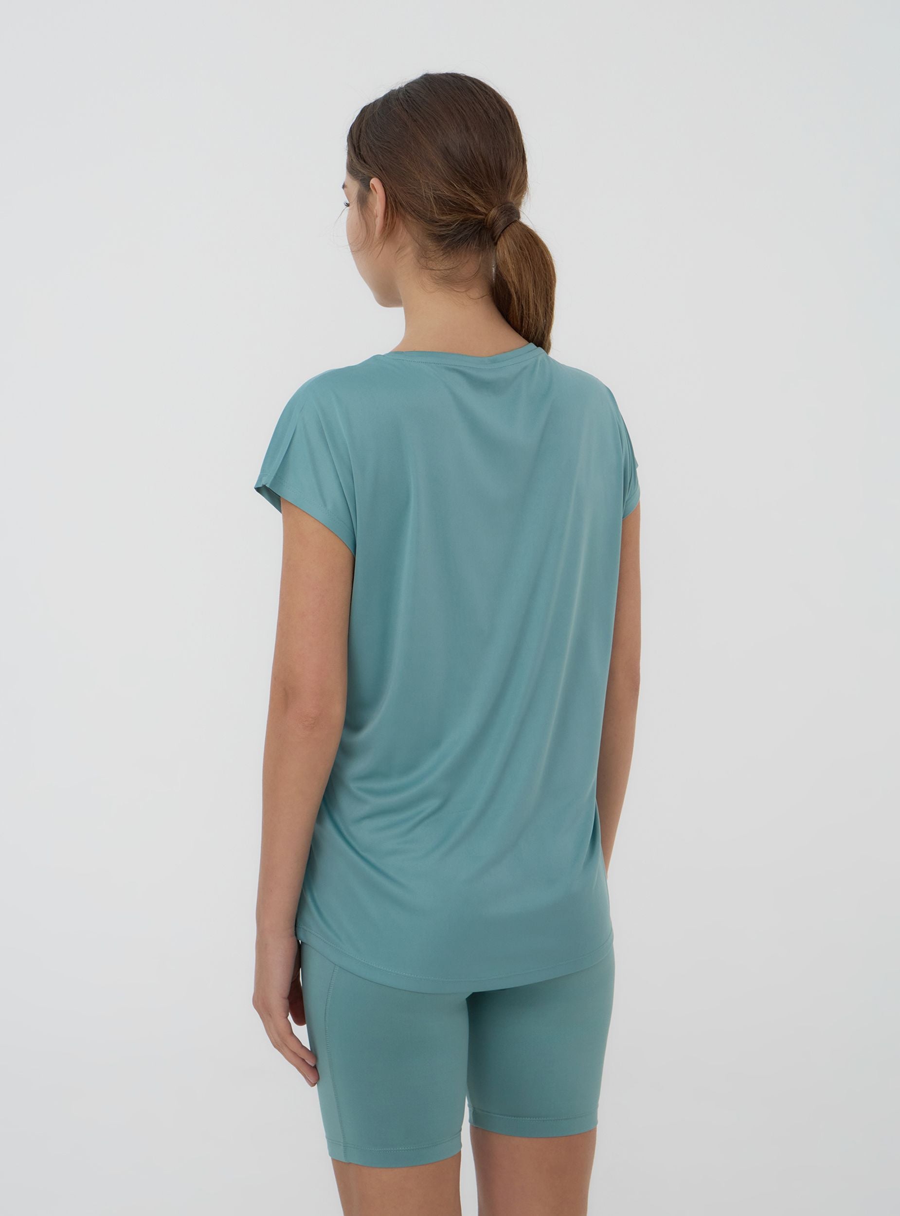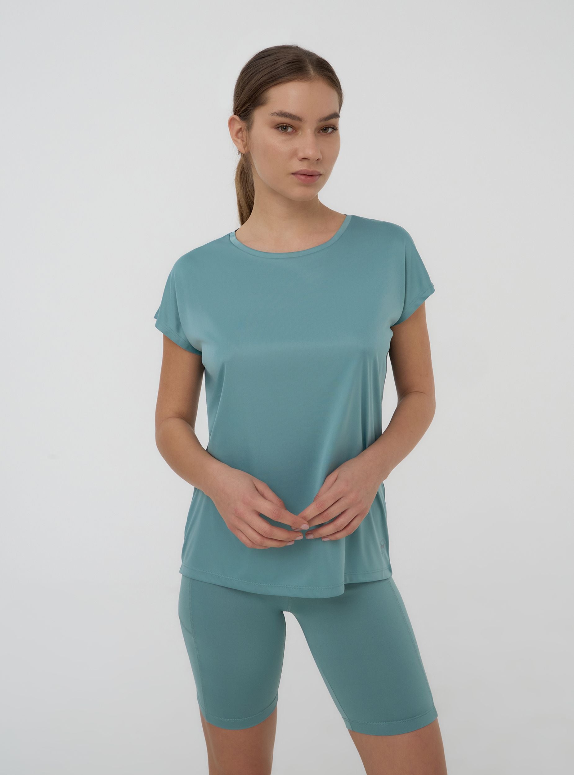 Maglietta sportiva da donna con un taglio ampio e comodo, ideale per attività fisiche o per un look casual. Presenta maniche corte e uno scollo rotondo semplice. Ottimo comfort e libertà di movimento. Il design minimalista la rende versatile e adatta a diversi tipi di abbinamenti, perfetta per allenamenti o per un outfit rilassato e confortevole.Dettagli