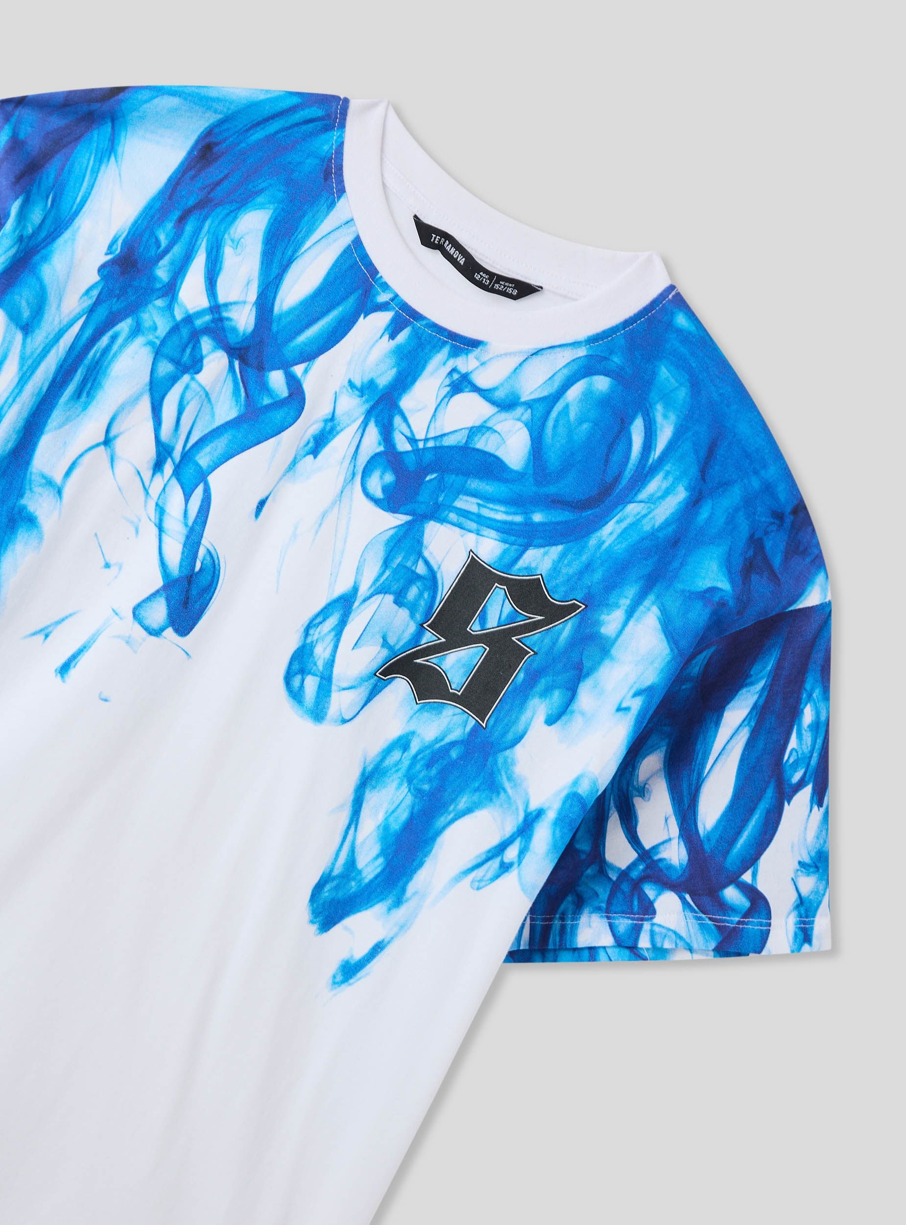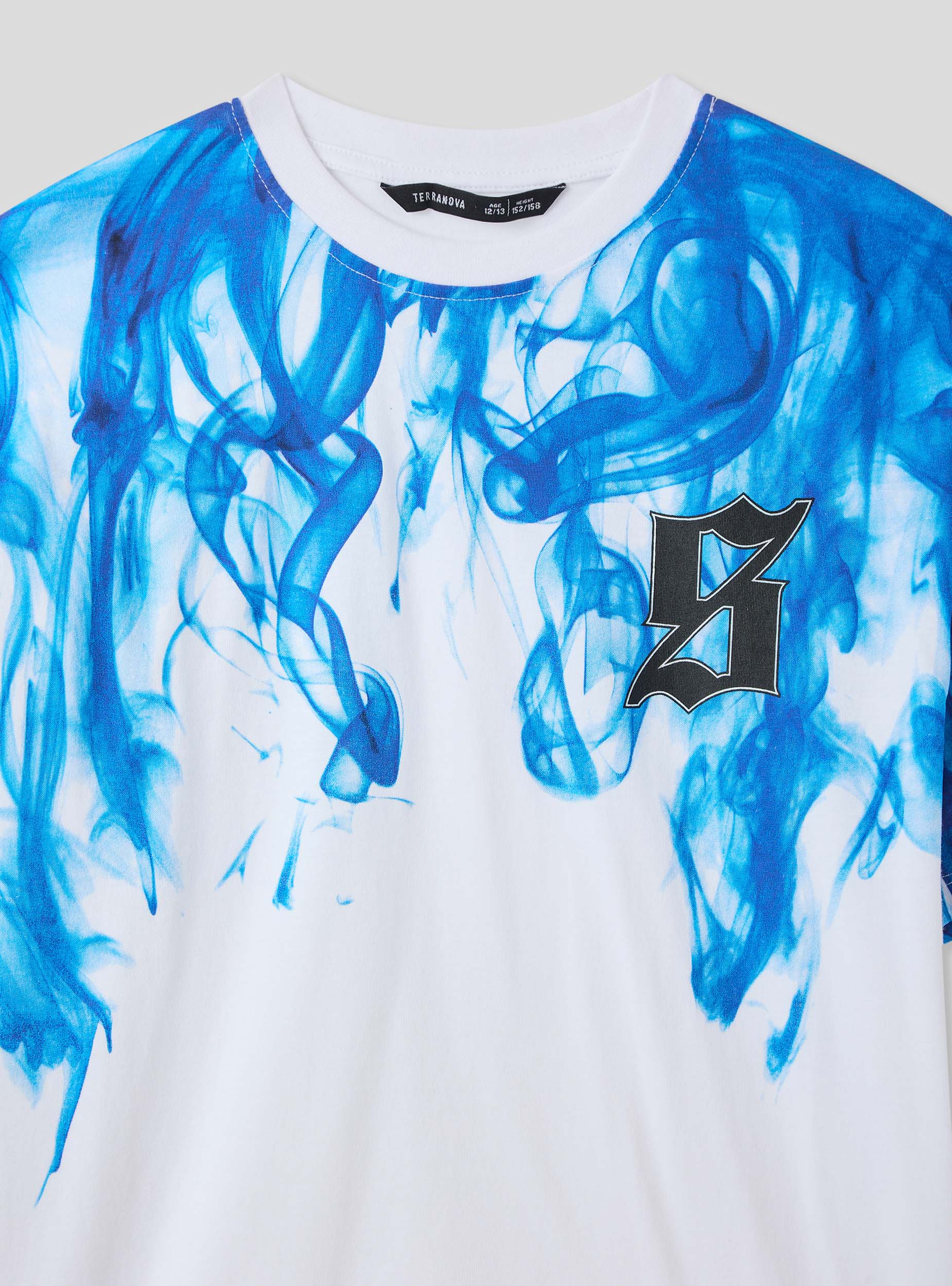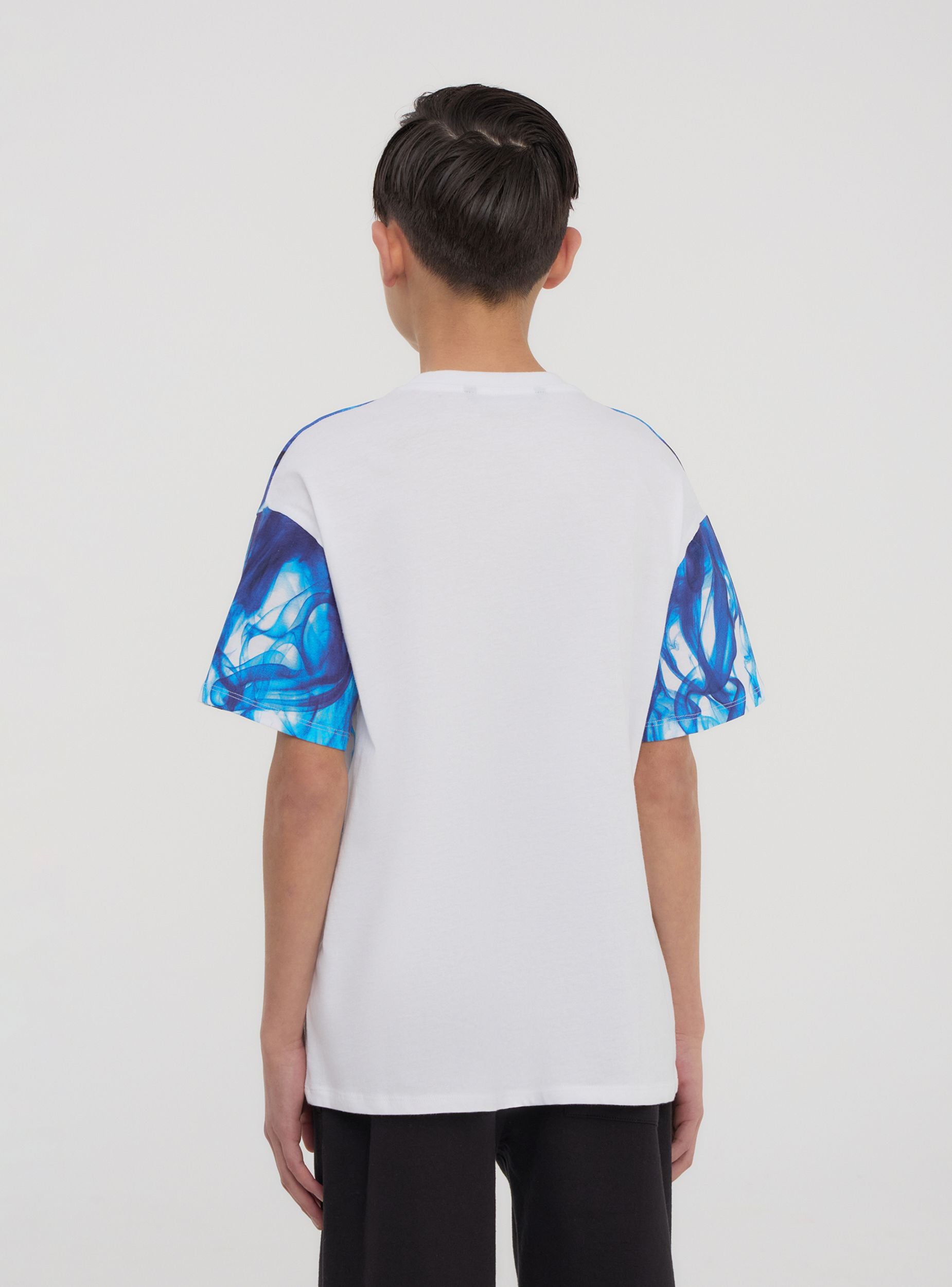 Maglietta da bambino dallo stile accattivante, ideale per aggiungere un tocco di originalità al guardaroba quotidiano. Il modello con maniche corte e girocollo garantisce comfort e libertà di movimento, mentre la stampa effetto fumo dona un look grintoso e moderno. Perfetta per il tempo libero, si abbina facilmente a jeans, joggers o bermuda per outfit casual e dinamici.Dettagli