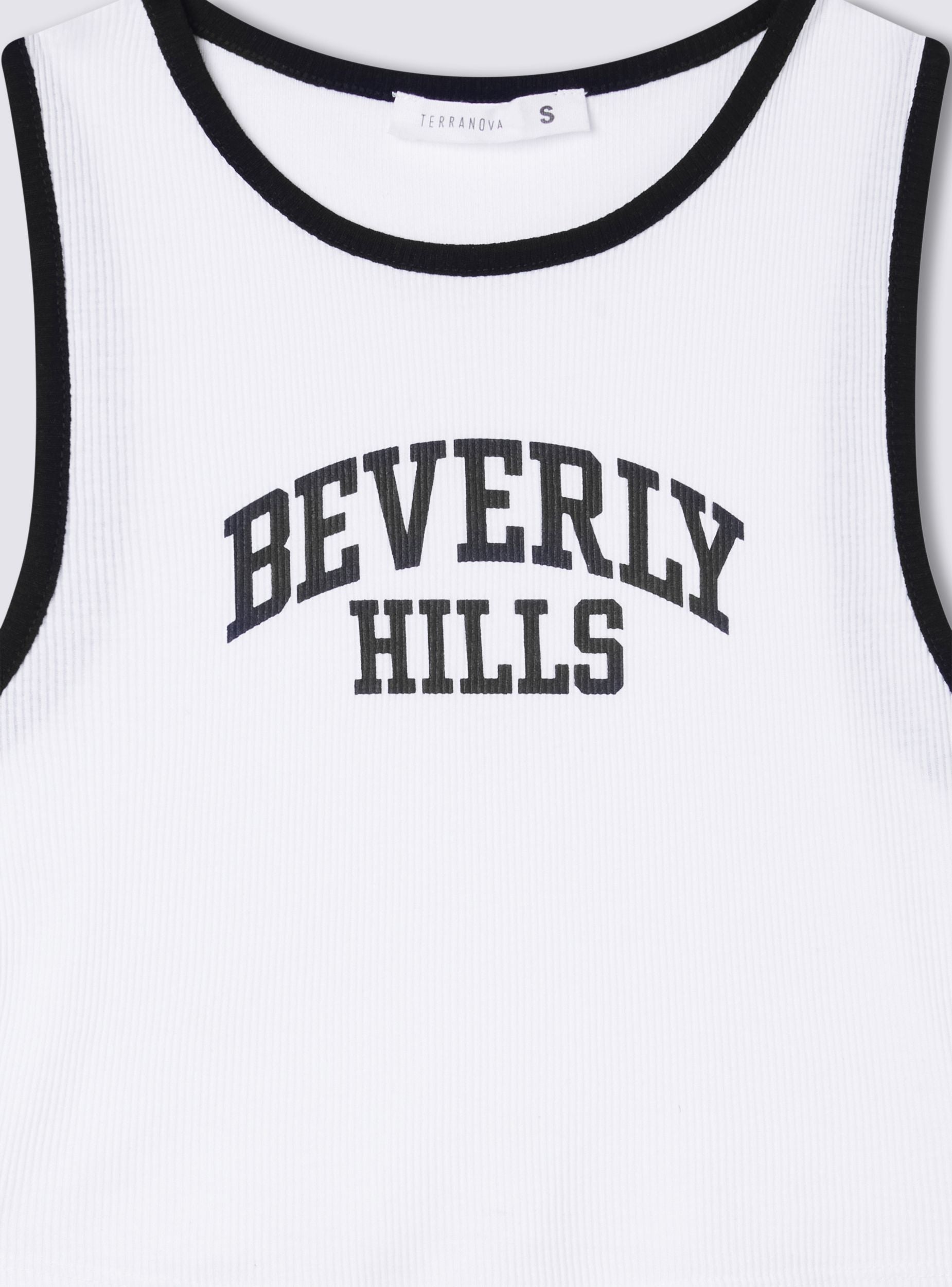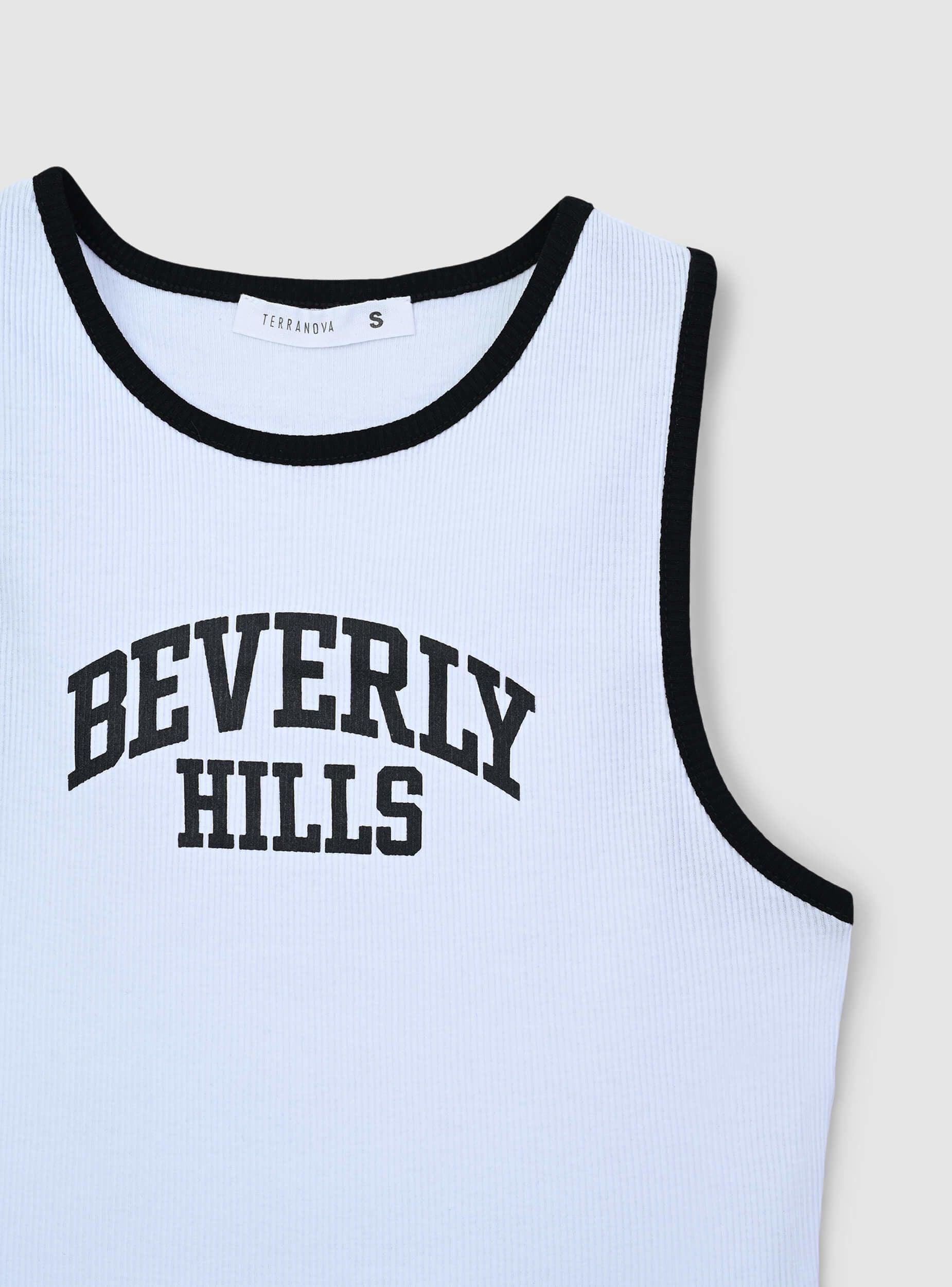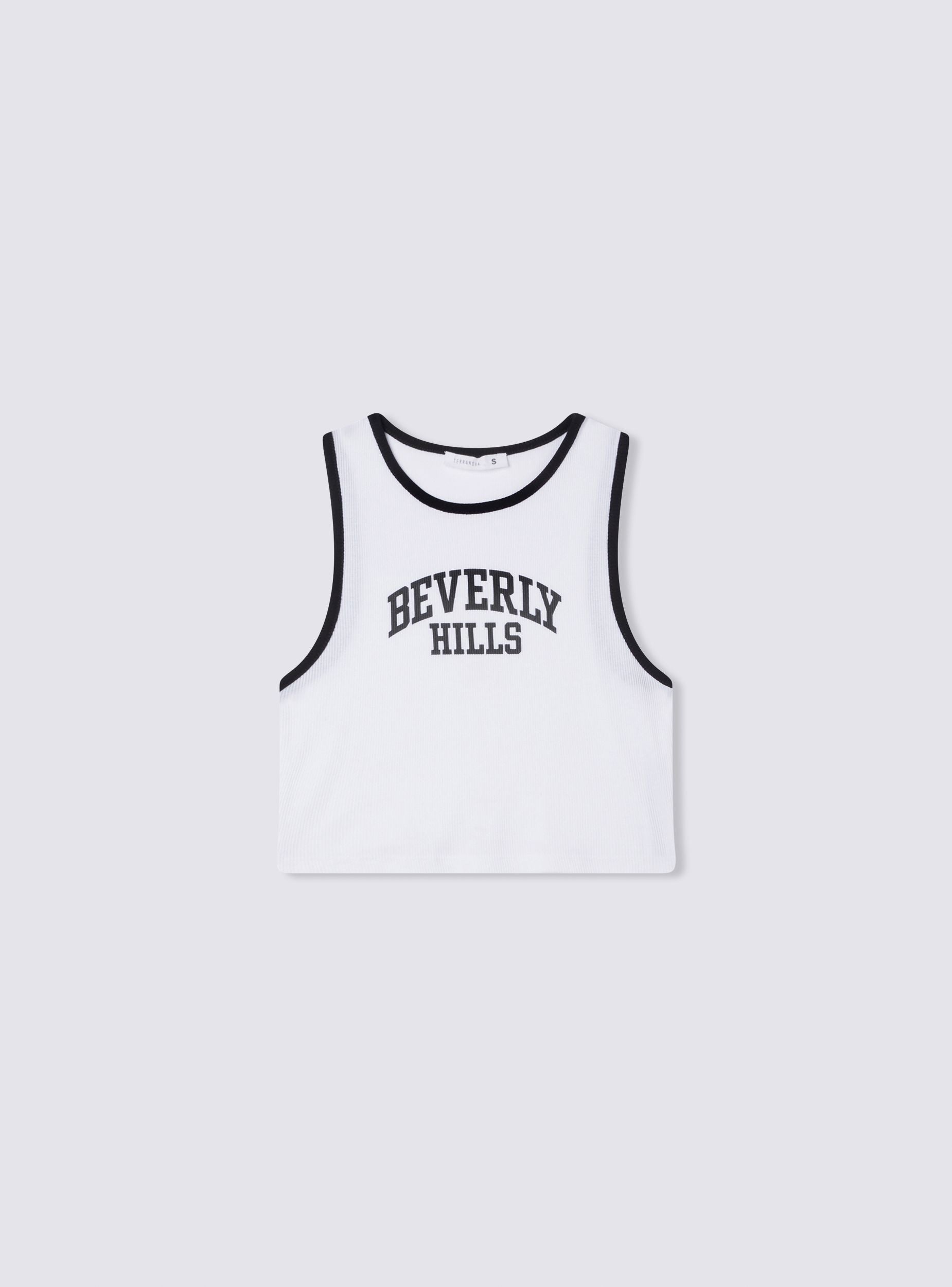 Top da donna con scollo americano e design che combina comfort e stile. I profili a contrasto aggiungono un tocco visivo distintivo, mentre la stampa con scritta in stile college sul davanti dona un look dinamico e sportivo. Perfetto per completare outfit casual, è un capo ideale per chi cerca un mix di praticità e tendenze moderne. Il modello aderente valorizza la figura, assicurando versatilità e comodità per ogni occasione informale.Dettagli