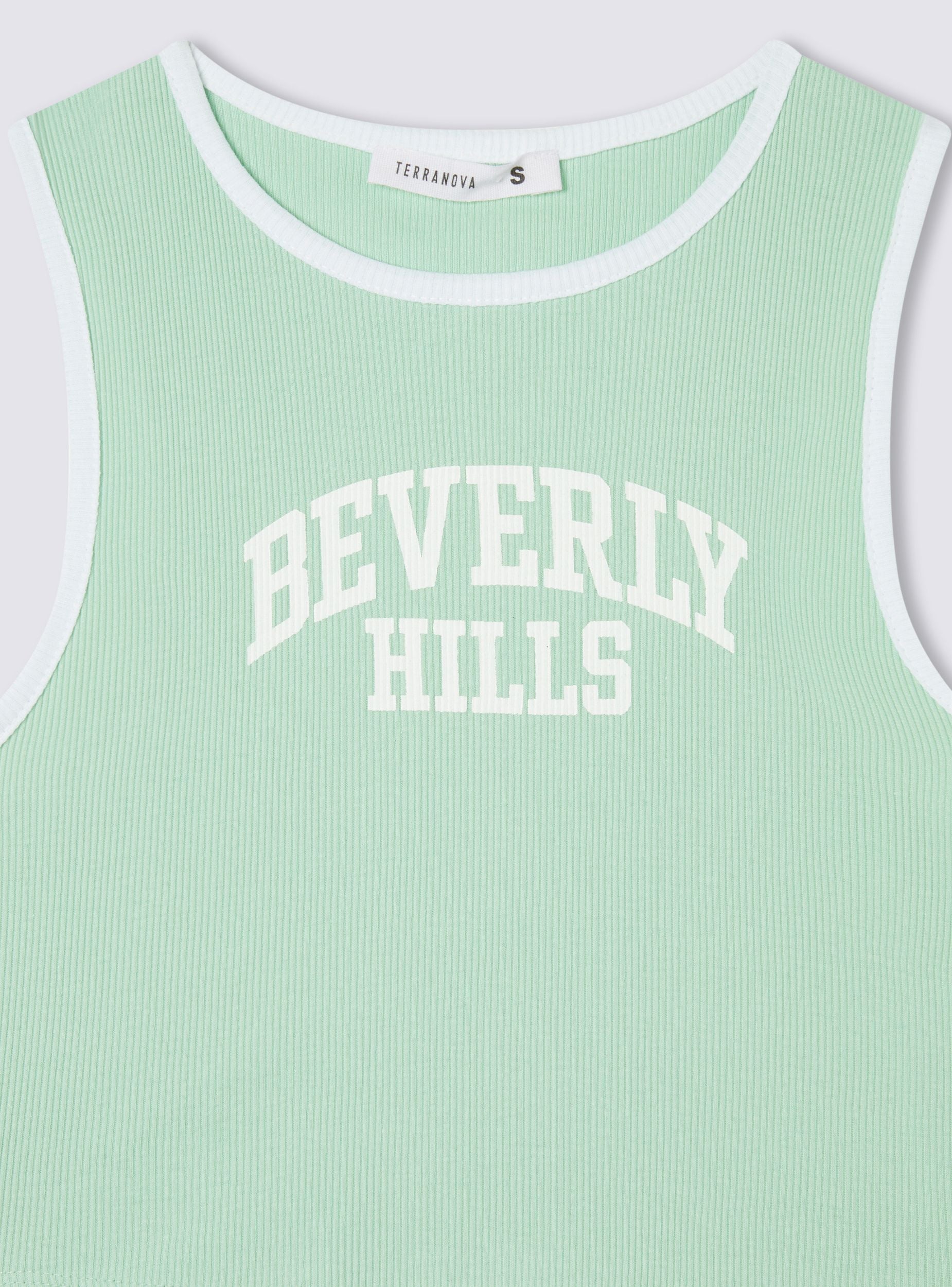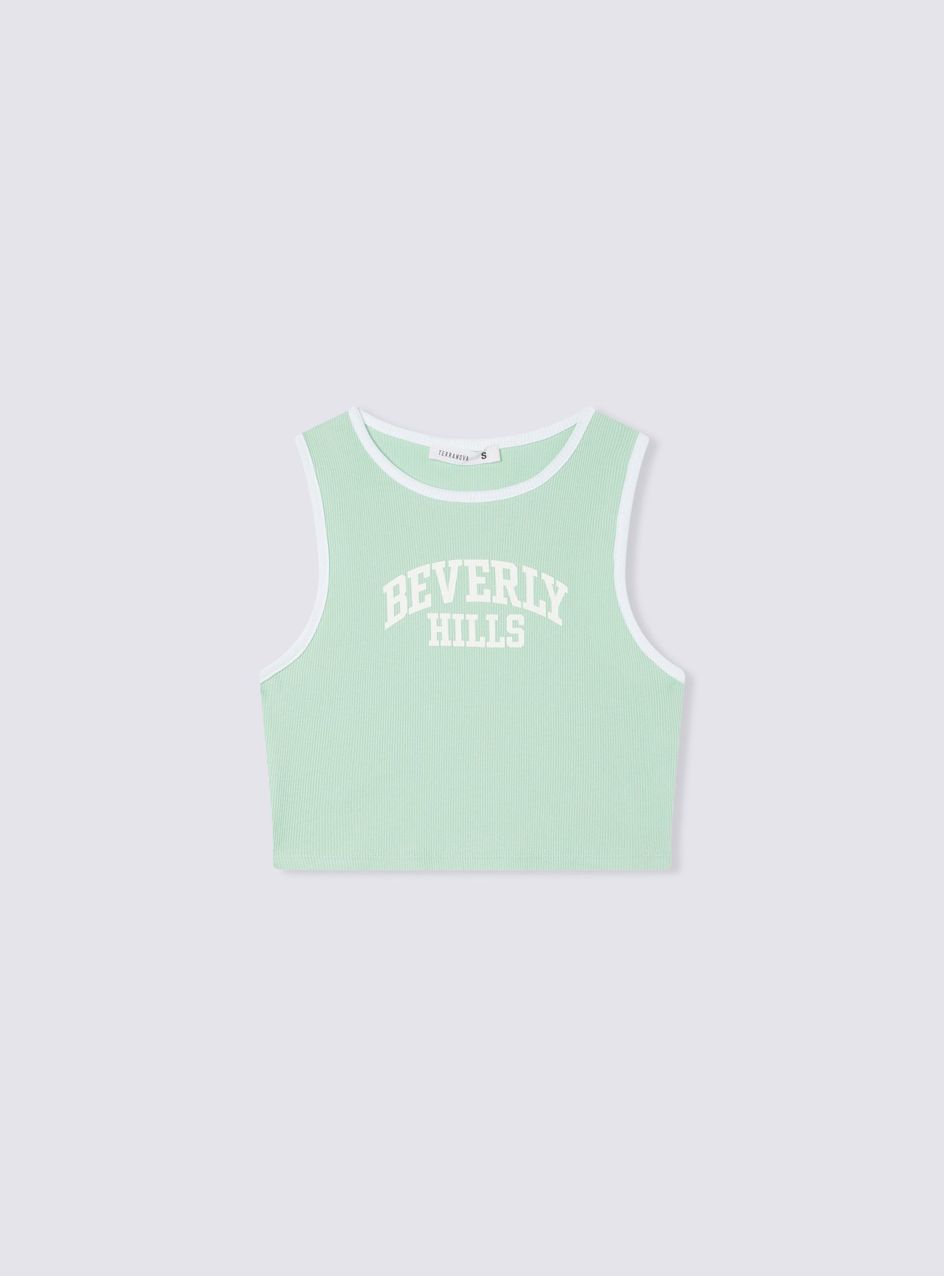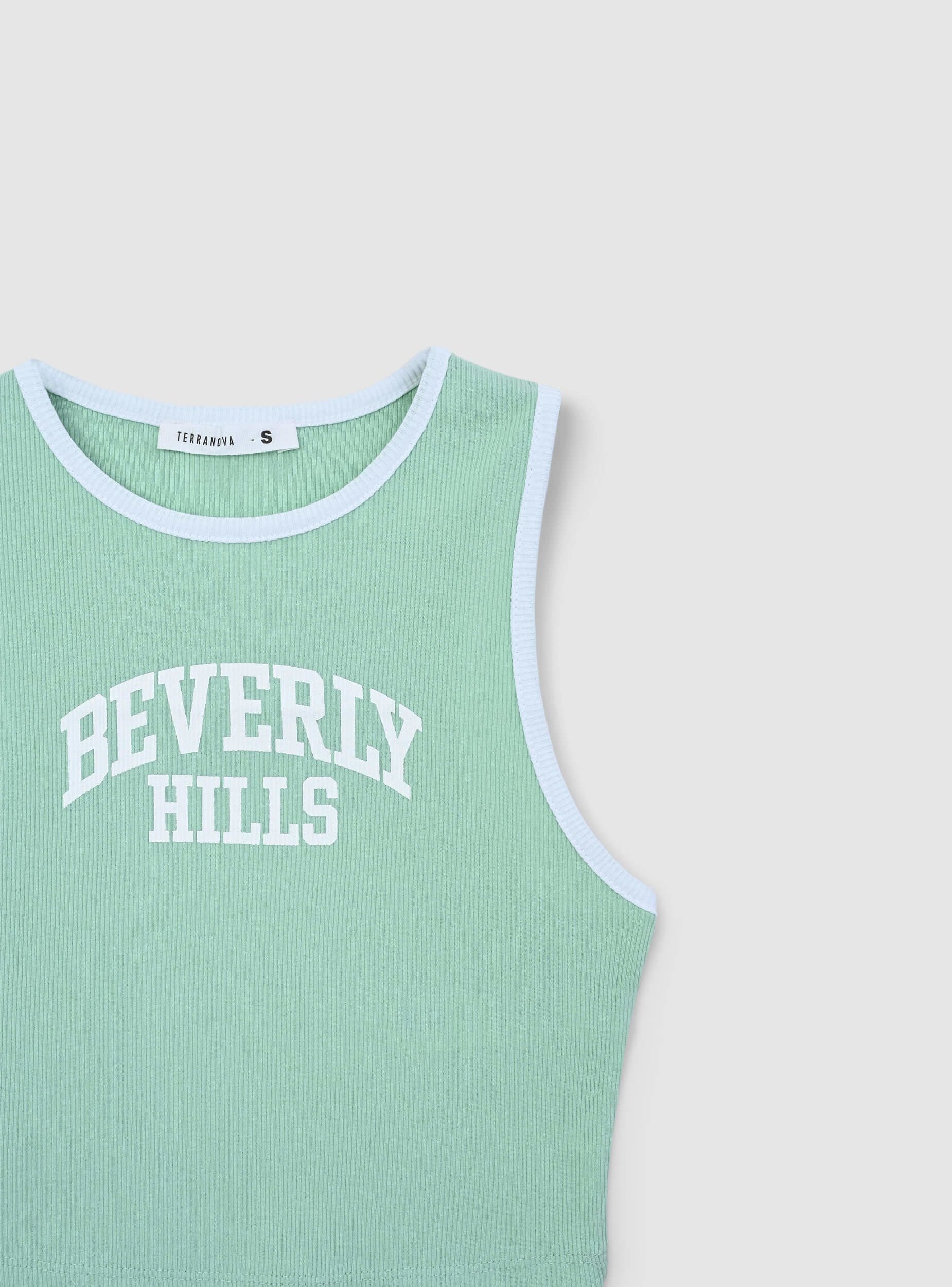 Top da donna con scollo americano e design che combina comfort e stile. I profili a contrasto aggiungono un tocco visivo distintivo, mentre la stampa con scritta in stile college sul davanti dona un look dinamico e sportivo. Perfetto per completare outfit casual, è un capo ideale per chi cerca un mix di praticità e tendenze moderne. Il modello aderente valorizza la figura, assicurando versatilità e comodità per ogni occasione informale.Dettagli