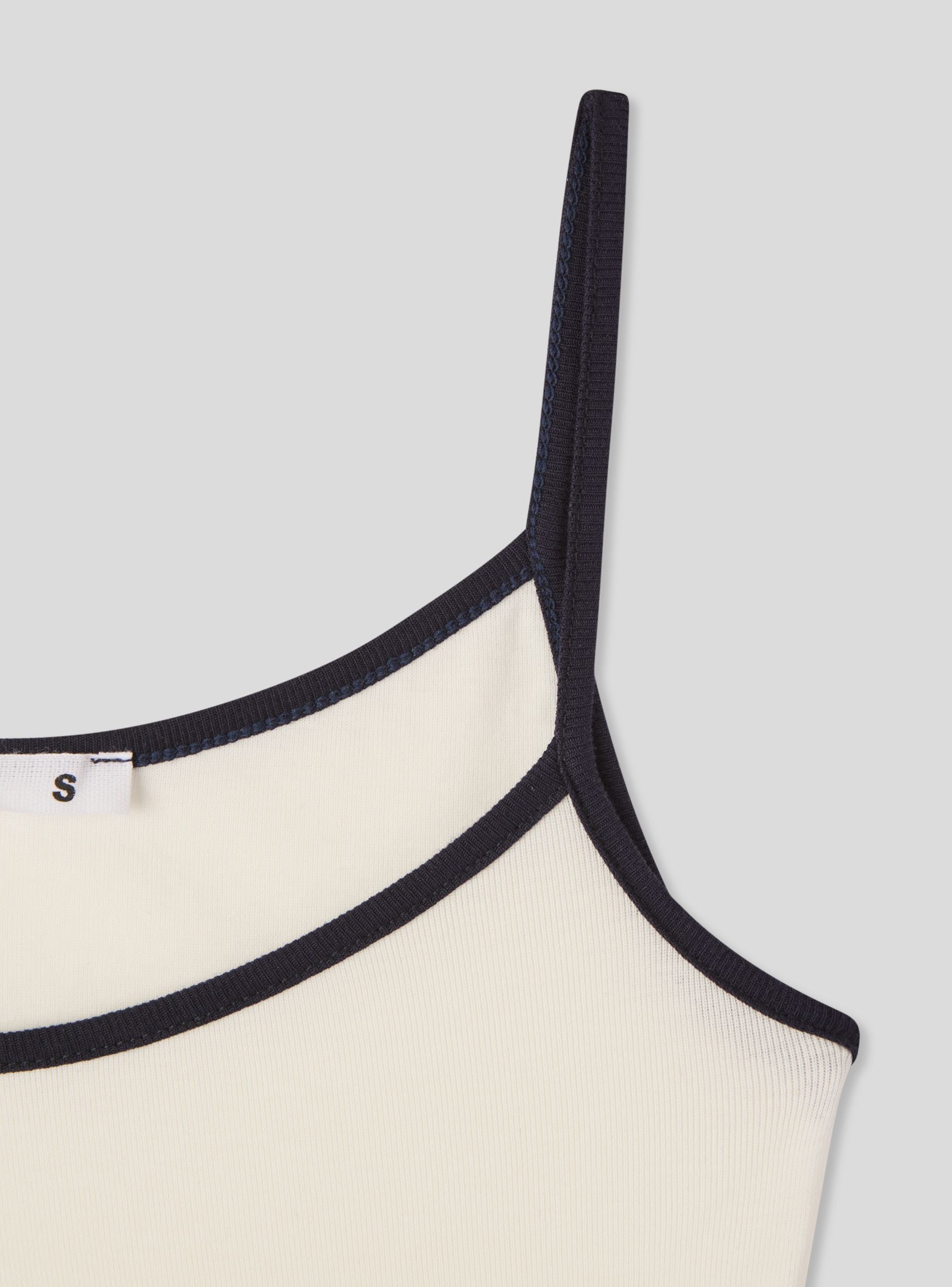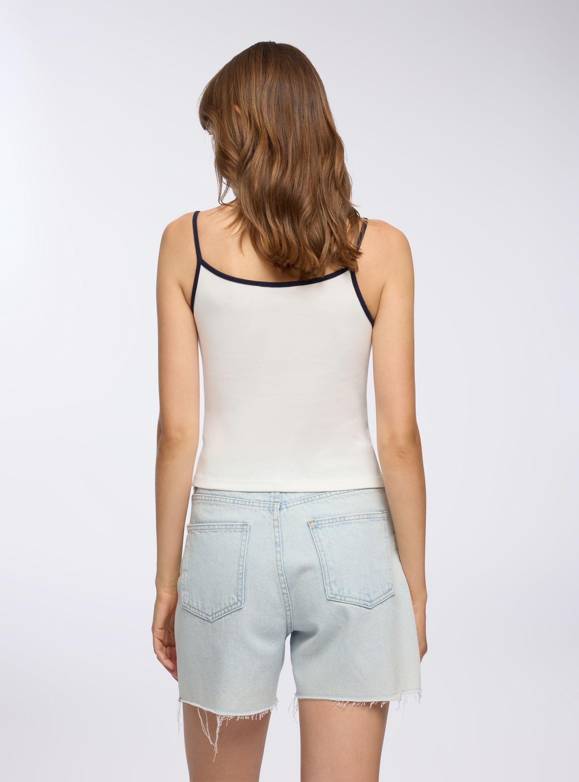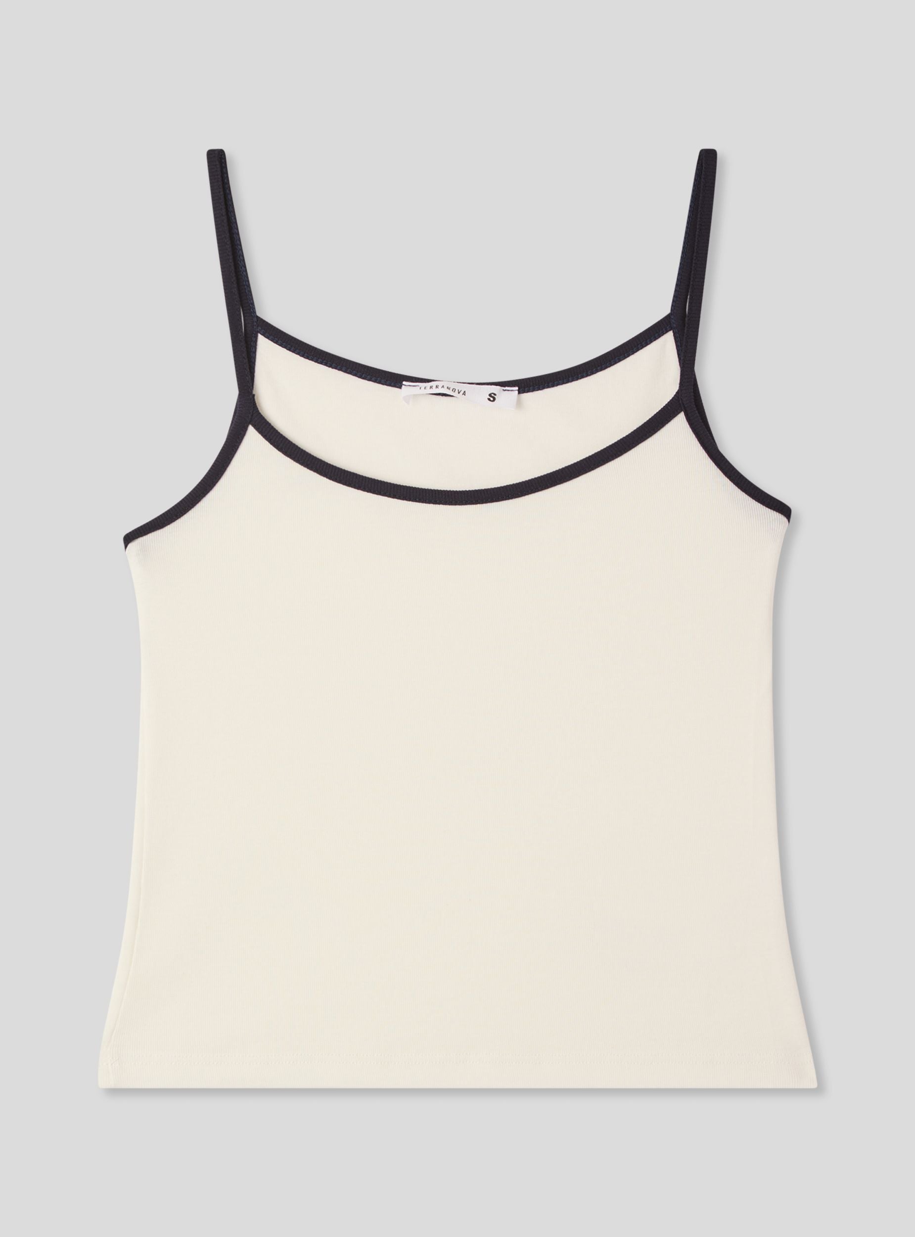 Top da donna con spalline sottili, ideale per look casual e versatili. Il design bicolor con profili a contrasto aggiunge un tocco moderno e distintivo, perfetto da abbinare a jeans, gonne o shorts per uno stile fresco e dinamico. La vestibilità regolare valorizza la silhouette, mentre la scollatura arrotondata e le spalline sottili lo rendono adatto sia per il tempo libero che per outfit a strati.Dettagli