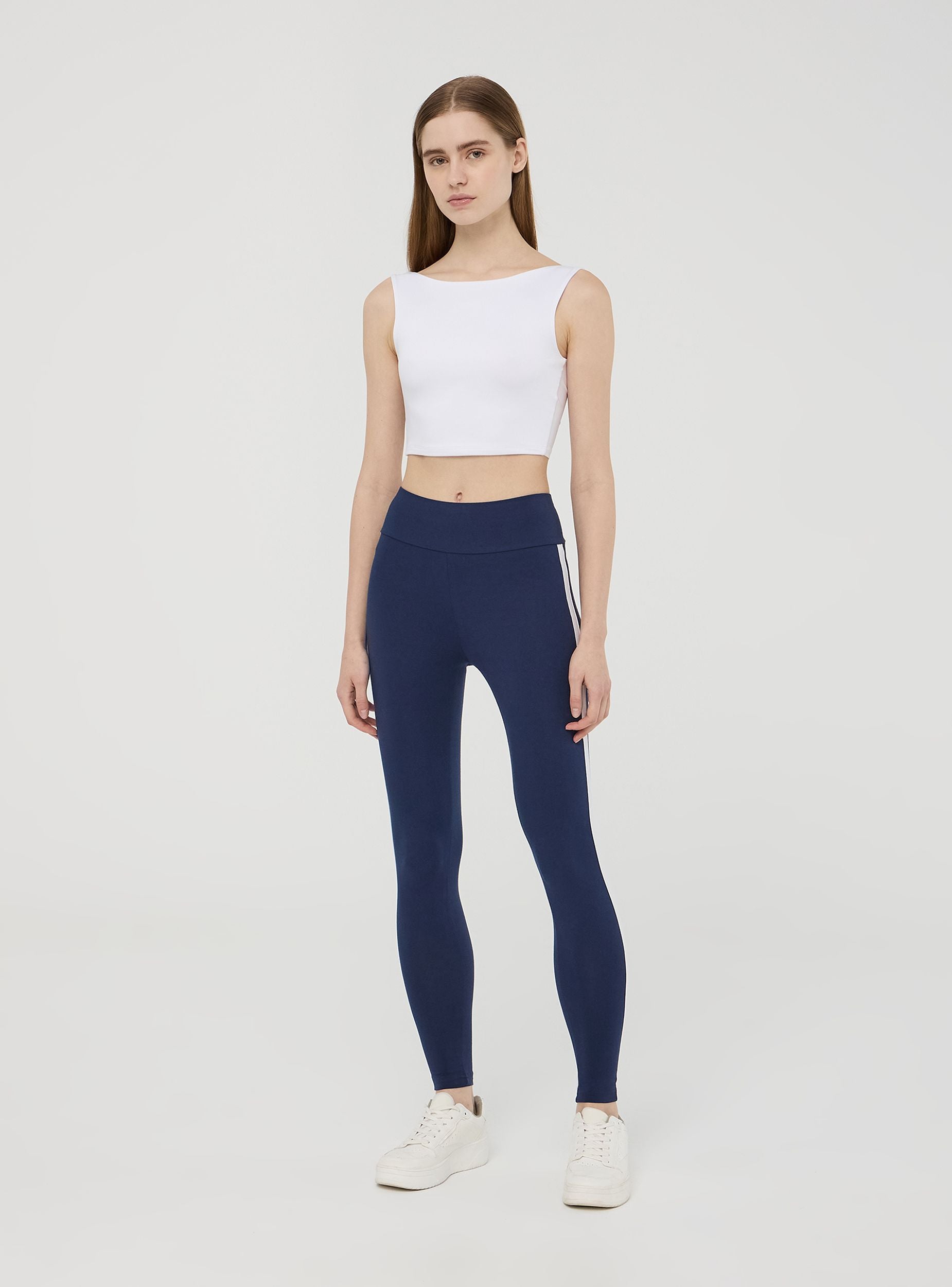 Top crop da donna. Il design presenta un'elegante tinta unita e il tessuto elasticizzato garantisce comfort. Il retro è caratterizzato da un ampio scollo che lascia la schiena scoperta, conferendo al capo un tocco sofisticato e moderno. Perfetto per completare look casual o abbinato a capi più ricercati per creare contrasti di stile.Dettagli