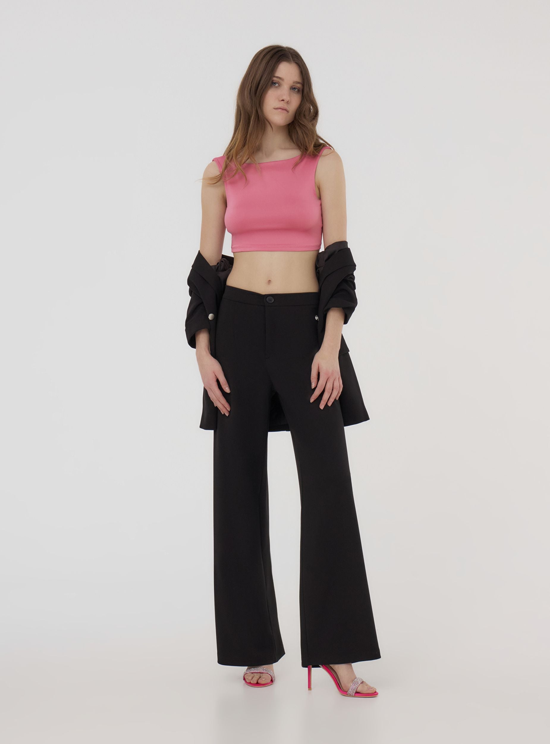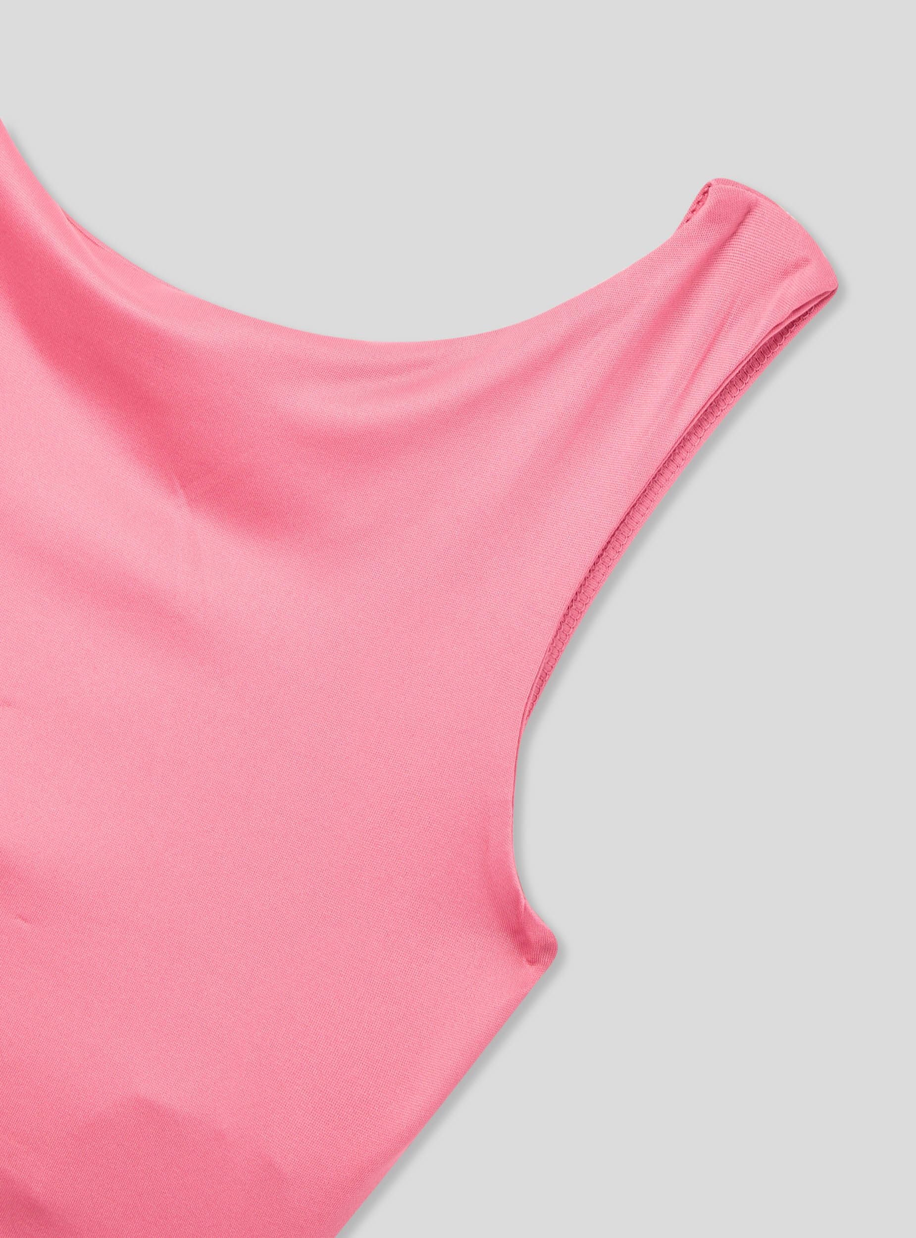 Top crop da donna. Il design presenta un'elegante tinta unita e il tessuto elasticizzato garantisce comfort. Il retro è caratterizzato da un ampio scollo che lascia la schiena scoperta, conferendo al capo un tocco sofisticato e moderno. Perfetto per completare look casual o abbinato a capi più ricercati per creare contrasti di stile.Dettagli