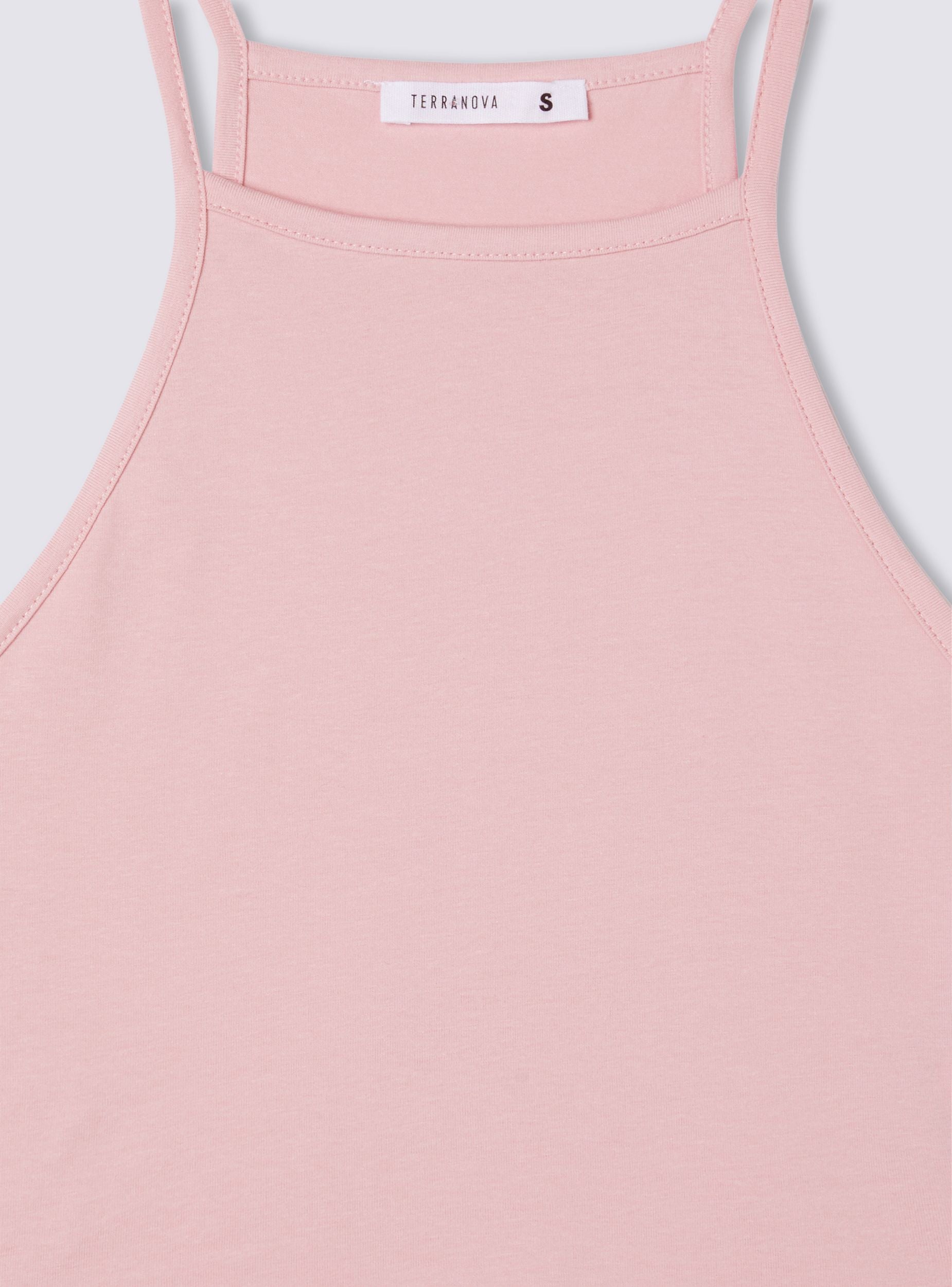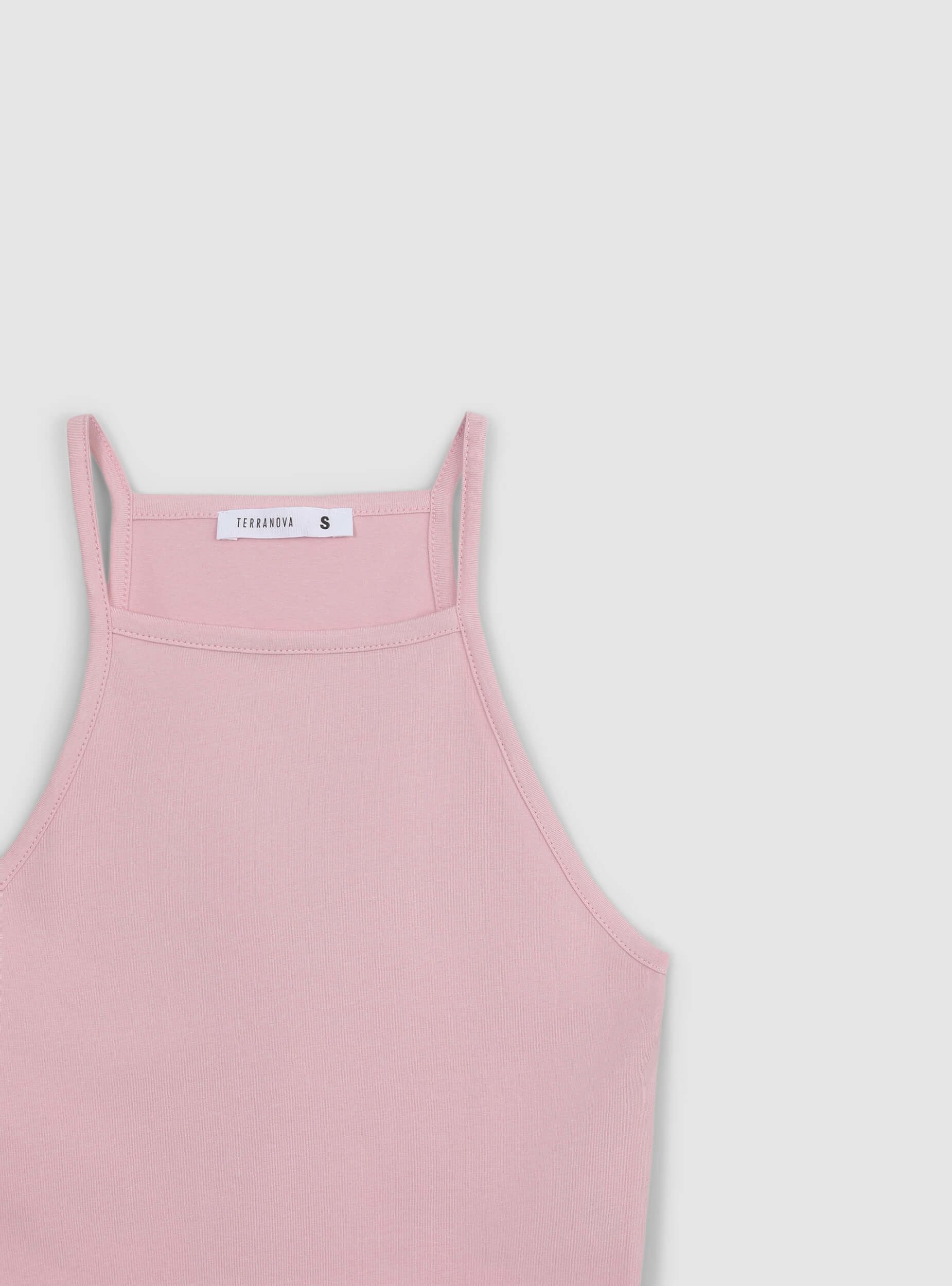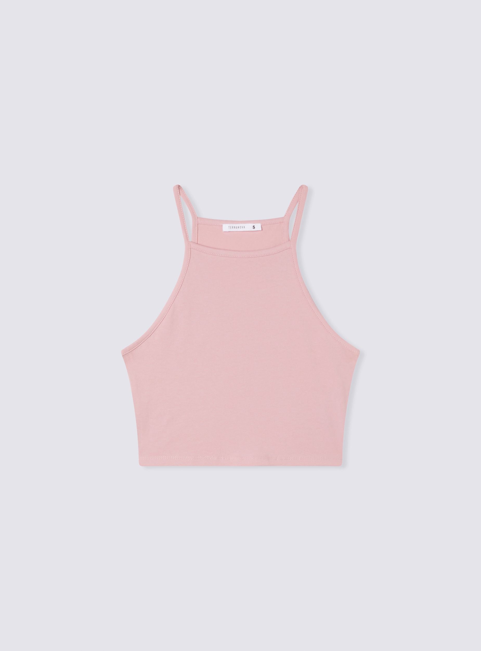 Top da donna dal design essenziale a tinta unita. Questo modello presenta uno scollo all'americana che mette in risalto le spalle, garantendo un look moderno e sportivo. Il taglio crop conferisce una silhouette dinamica e alla moda, perfetta per la stagione calda. Il design aderente segue le linee del corpo, mentre le sottili spalline aggiungono un tocco di leggerezza e femminilità. Ideale da abbinare con jeans, gonne o pantaloncini per un look casual ma sempre attento ai dettagli.Dettagli