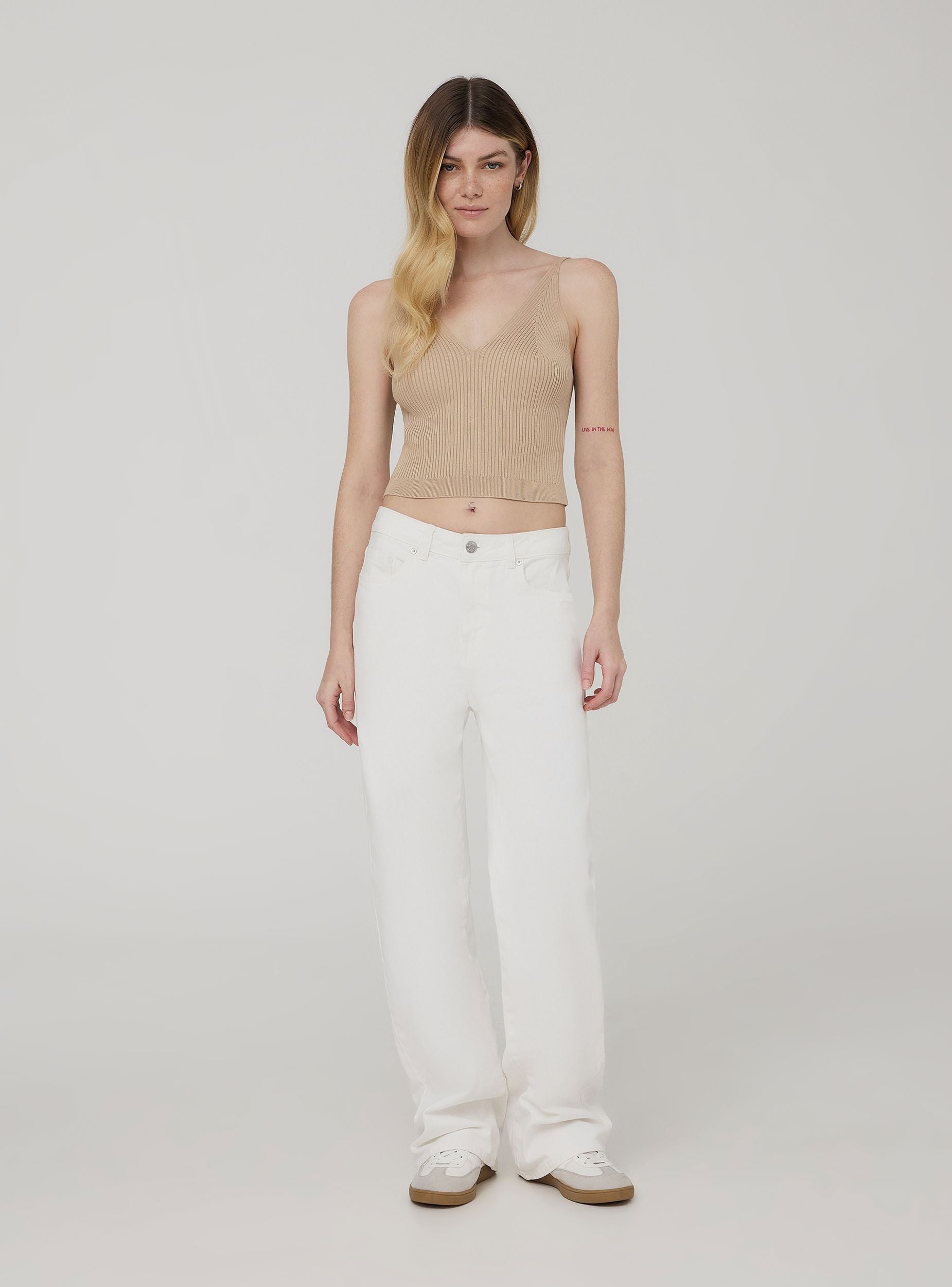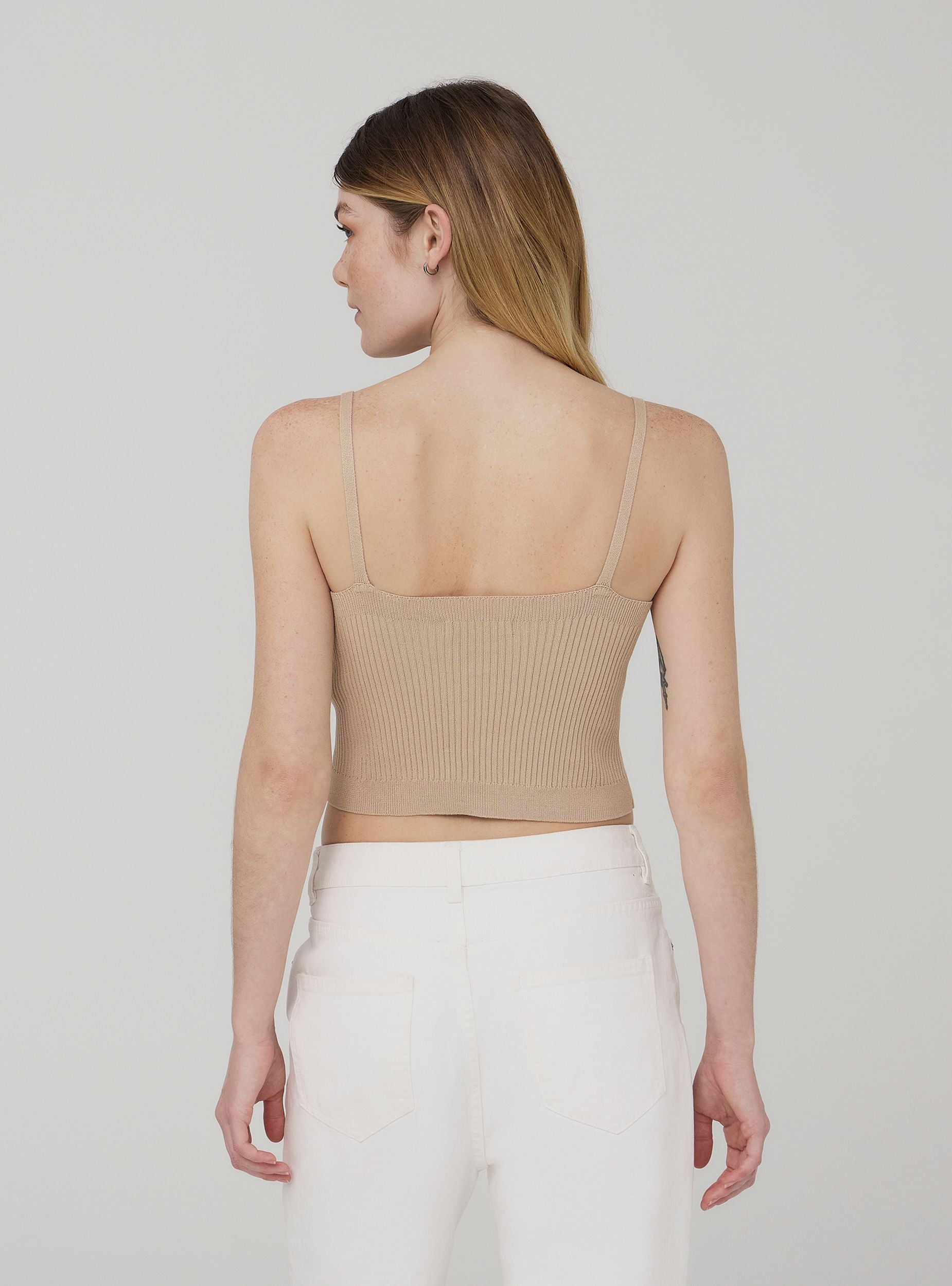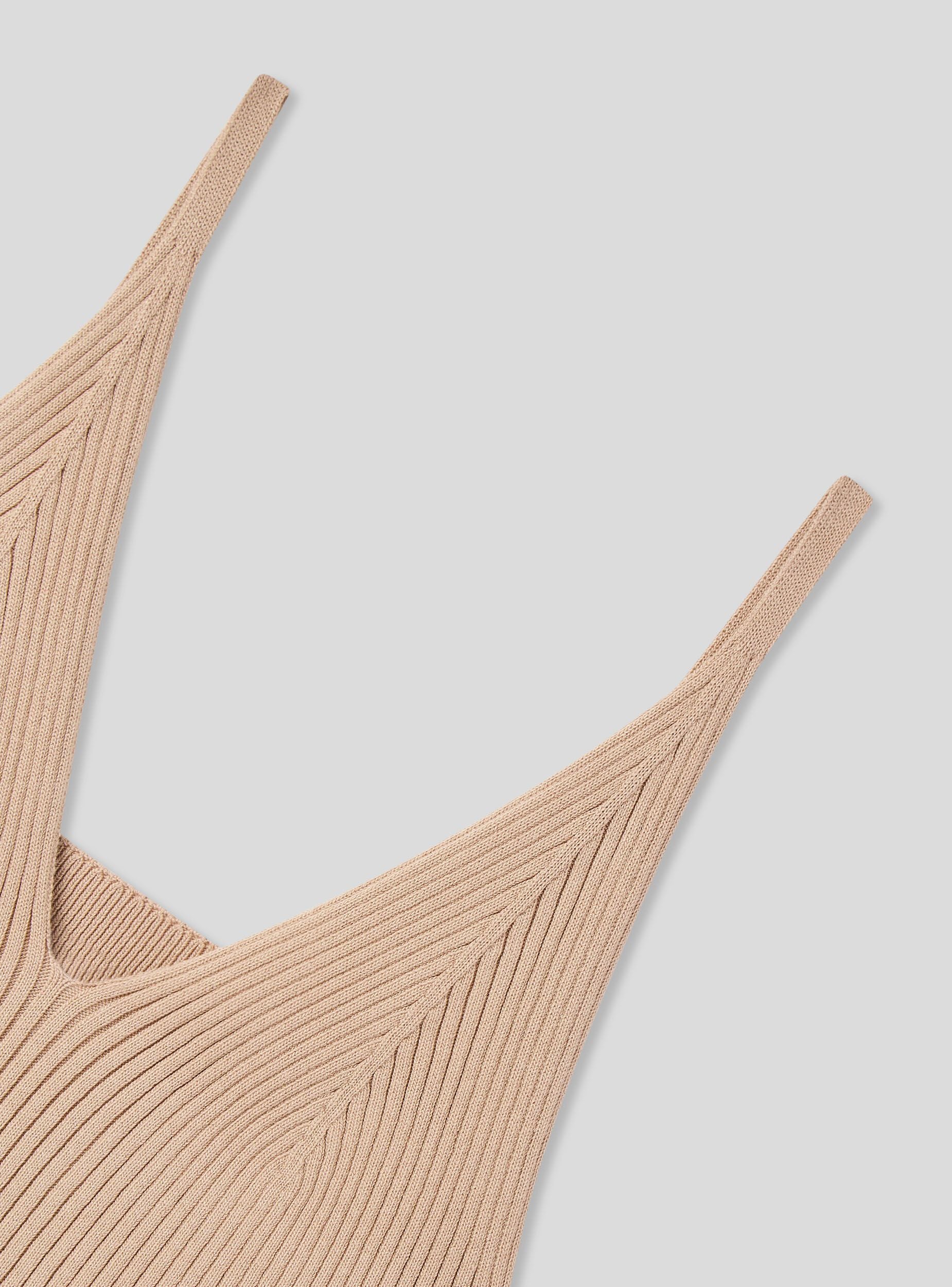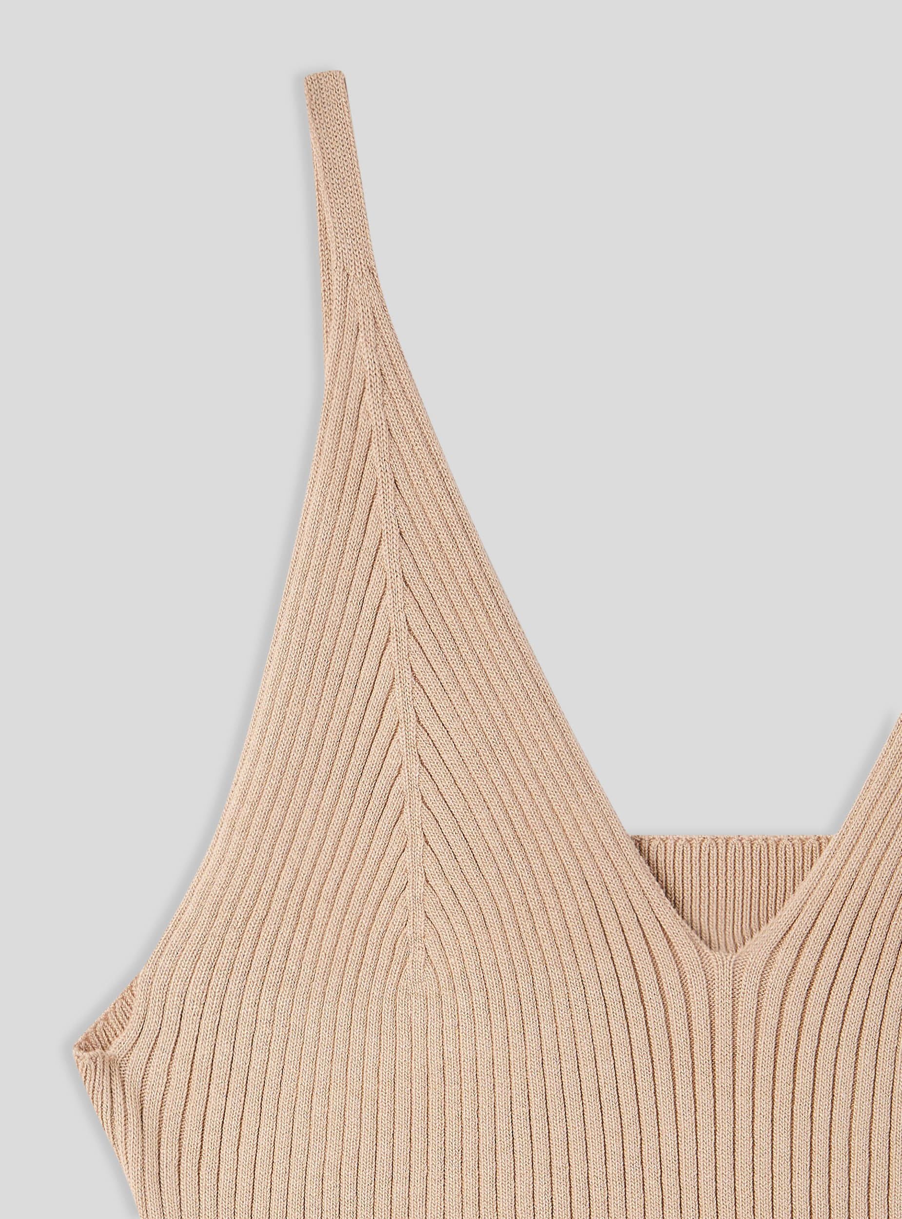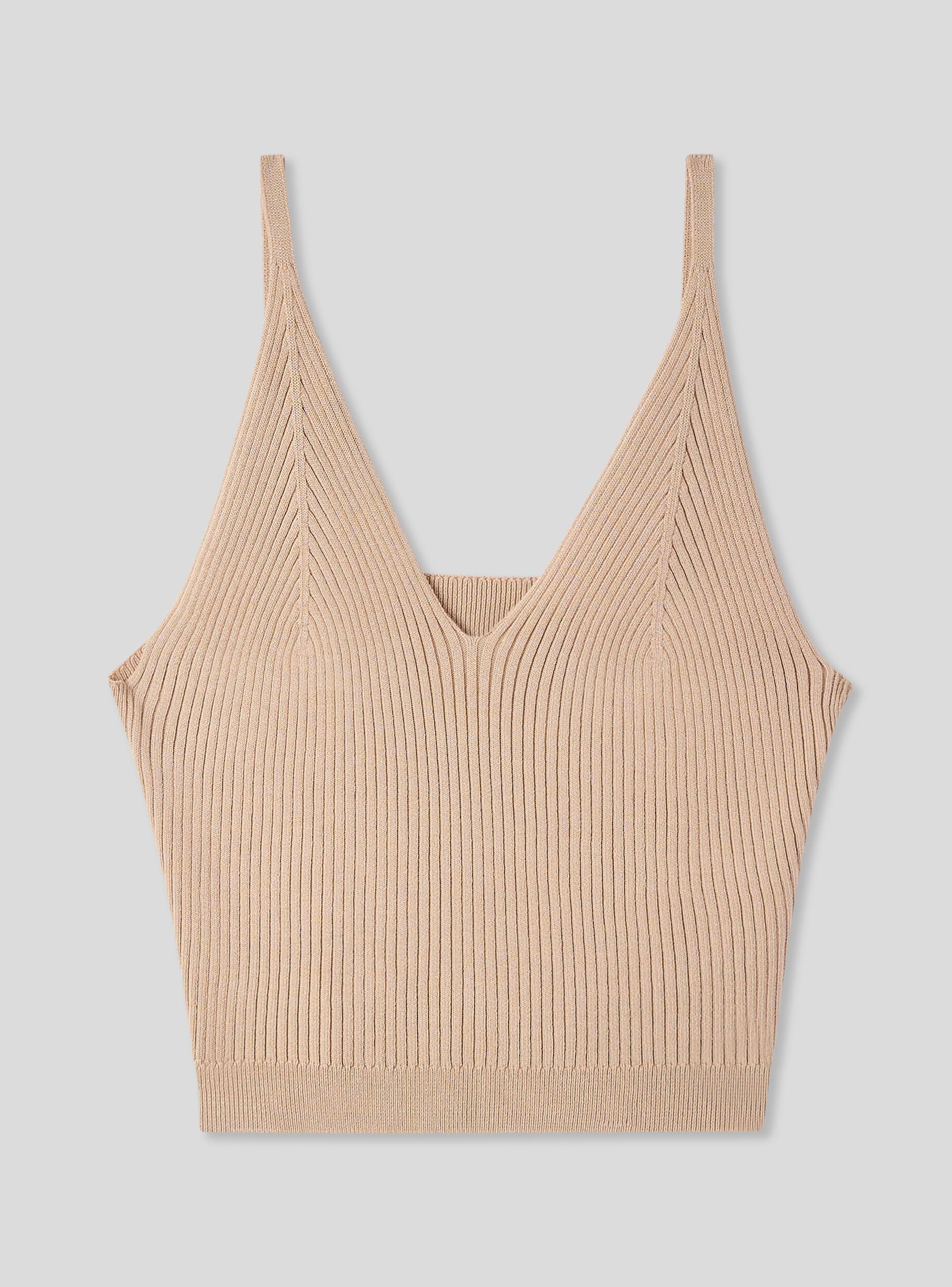 Top crop da donna realizzato in maglia a tinta unita. Modello dotato di scollo a v e spalline sottili. Ideale per i tuoi outfit estivi e primaverili. La tinta unita lo rende estremamente versatile per vari tipo di abbinamenti, perfetto con shorts a vita alta o gonne lunghe.Dettagli