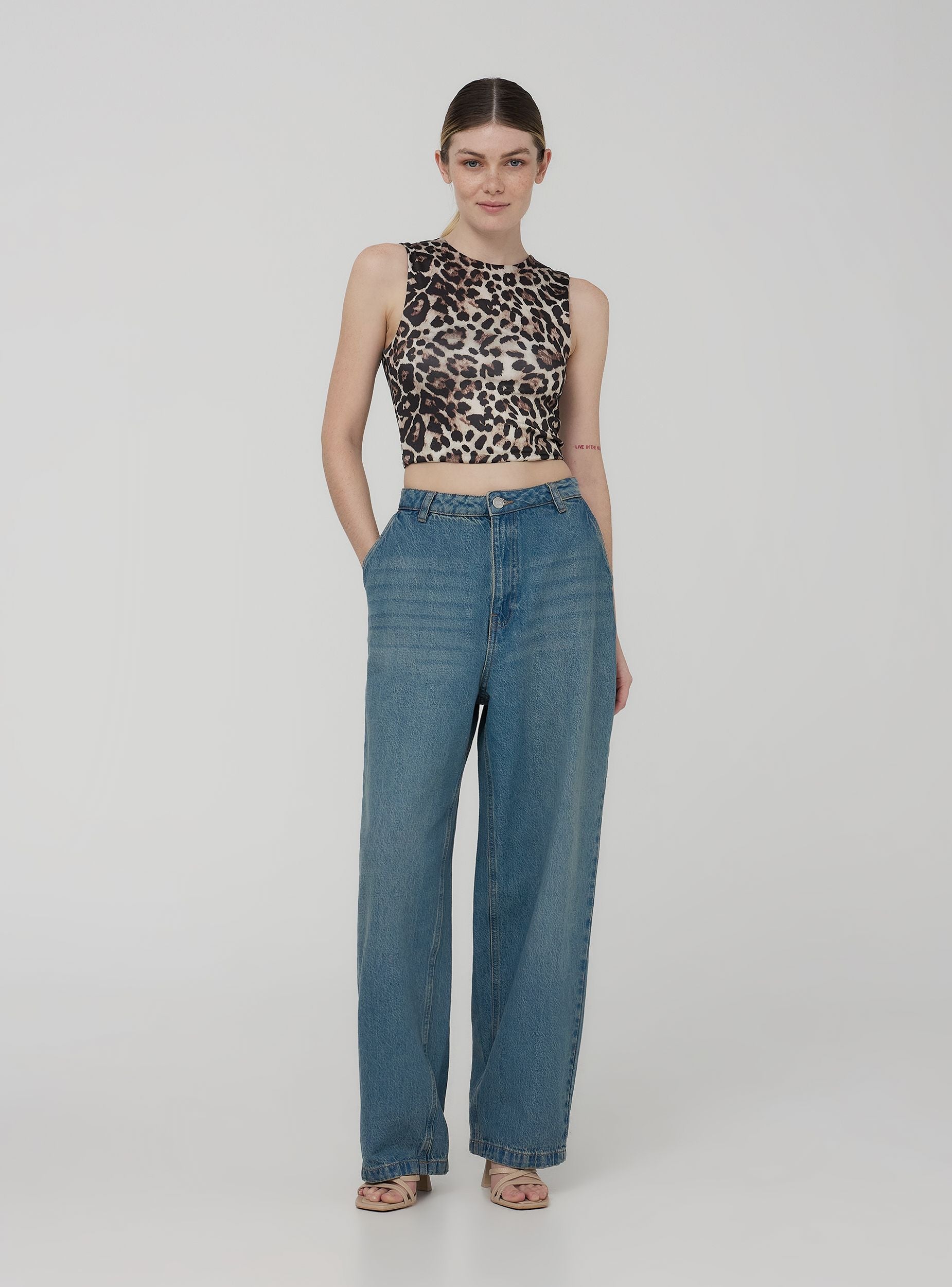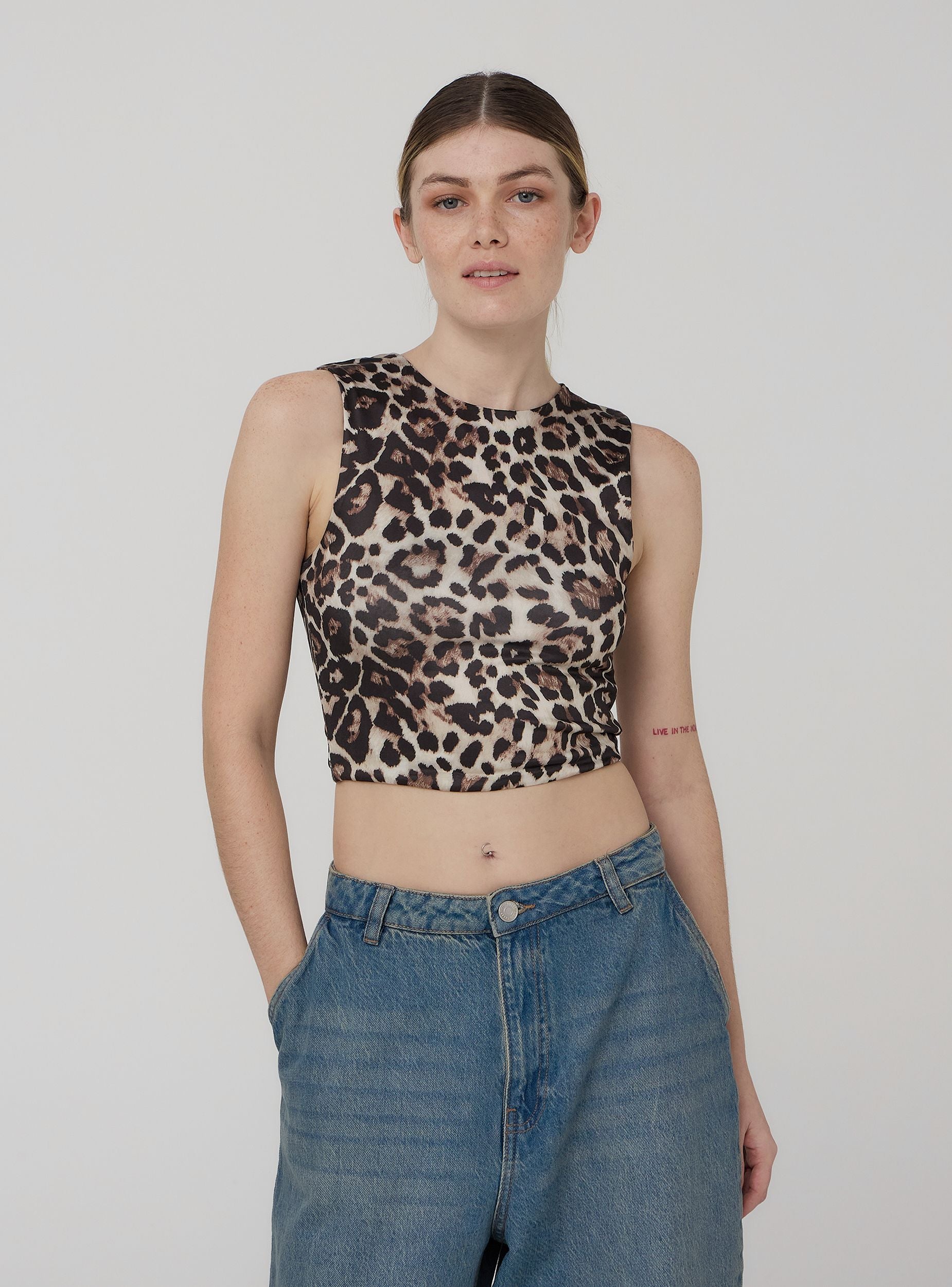 Top da donna dal design trendy e moderno, con scollo americano. Realizzato in tessuto elasticizzato per garantire comfort e vestibilità. La fantasia animalier dona un tocco deciso e grintoso, perfetto per chi ama osare con uno stile originale e di carattere.Dettagli