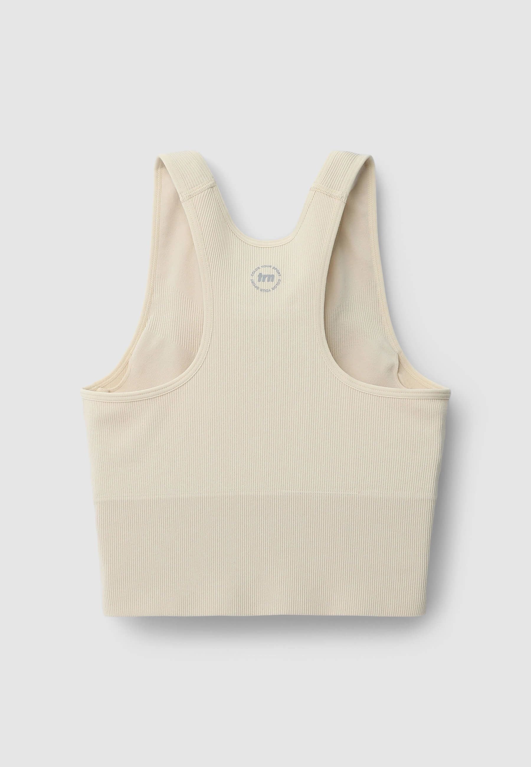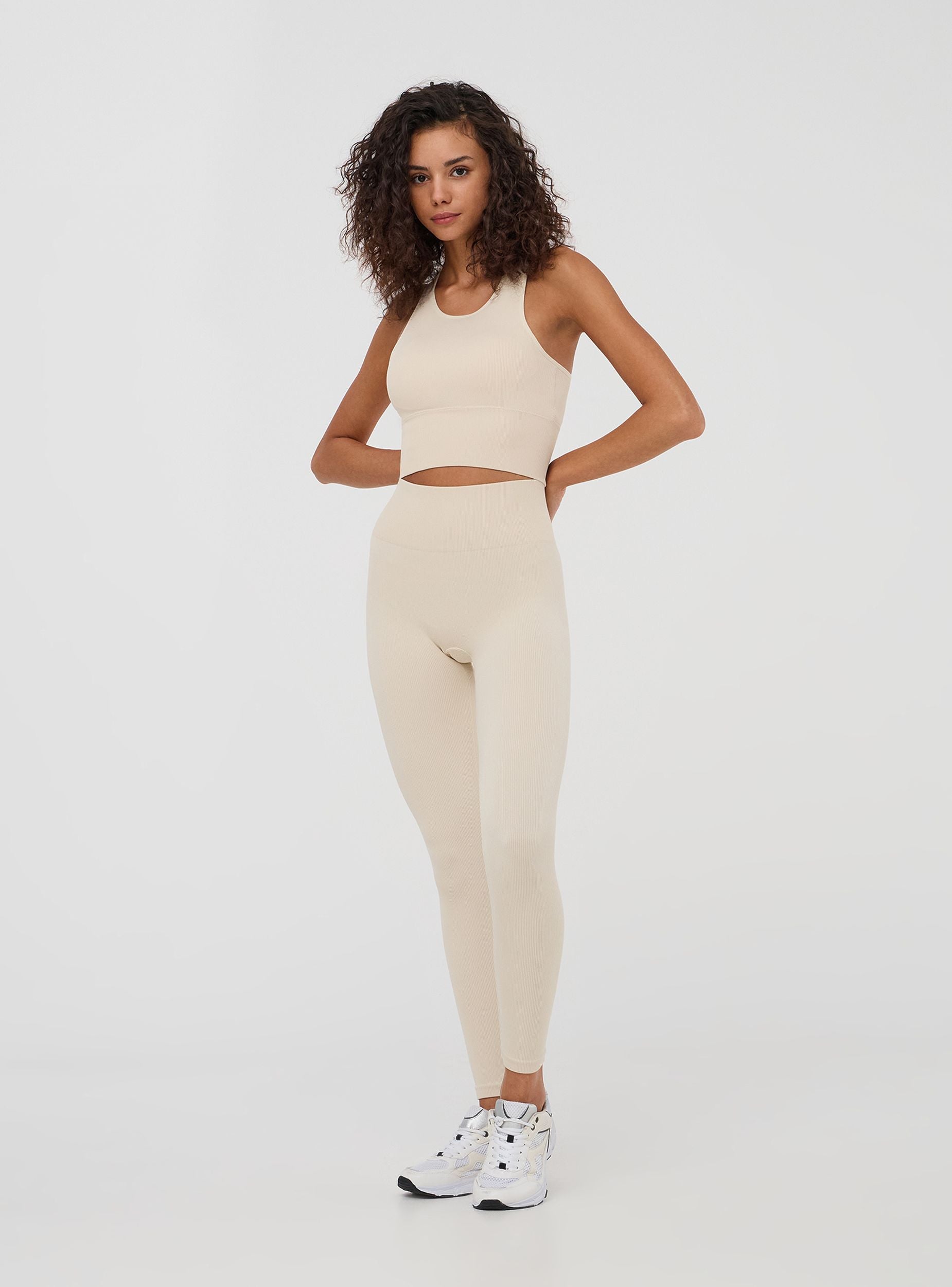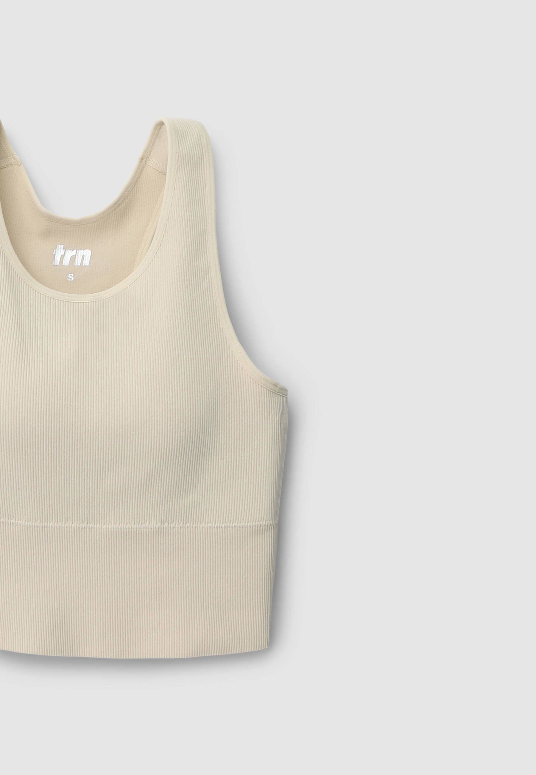 Top da donna sportivo, realizzato in tinta unita con un design elasticizzato che garantisce comfort e libertà di movimento. Presenta coppe interne removibili per un sostegno personalizzato e una lavorazione a costine che valorizza la silhouette. Perfetto per attività sportive o look casual, combina stile e funzionalità in un capo pratico e versatile. Linea Active.Dettagli