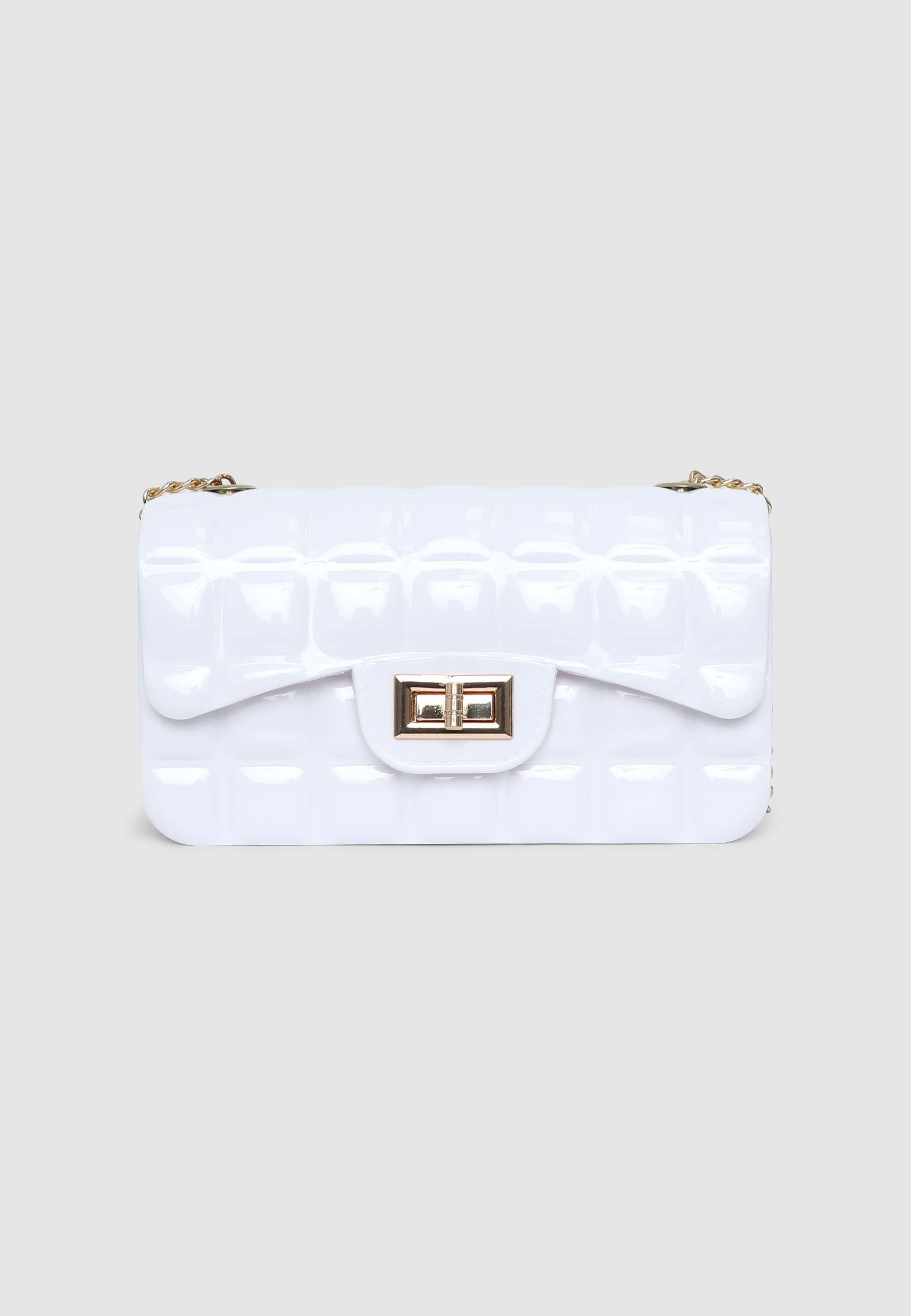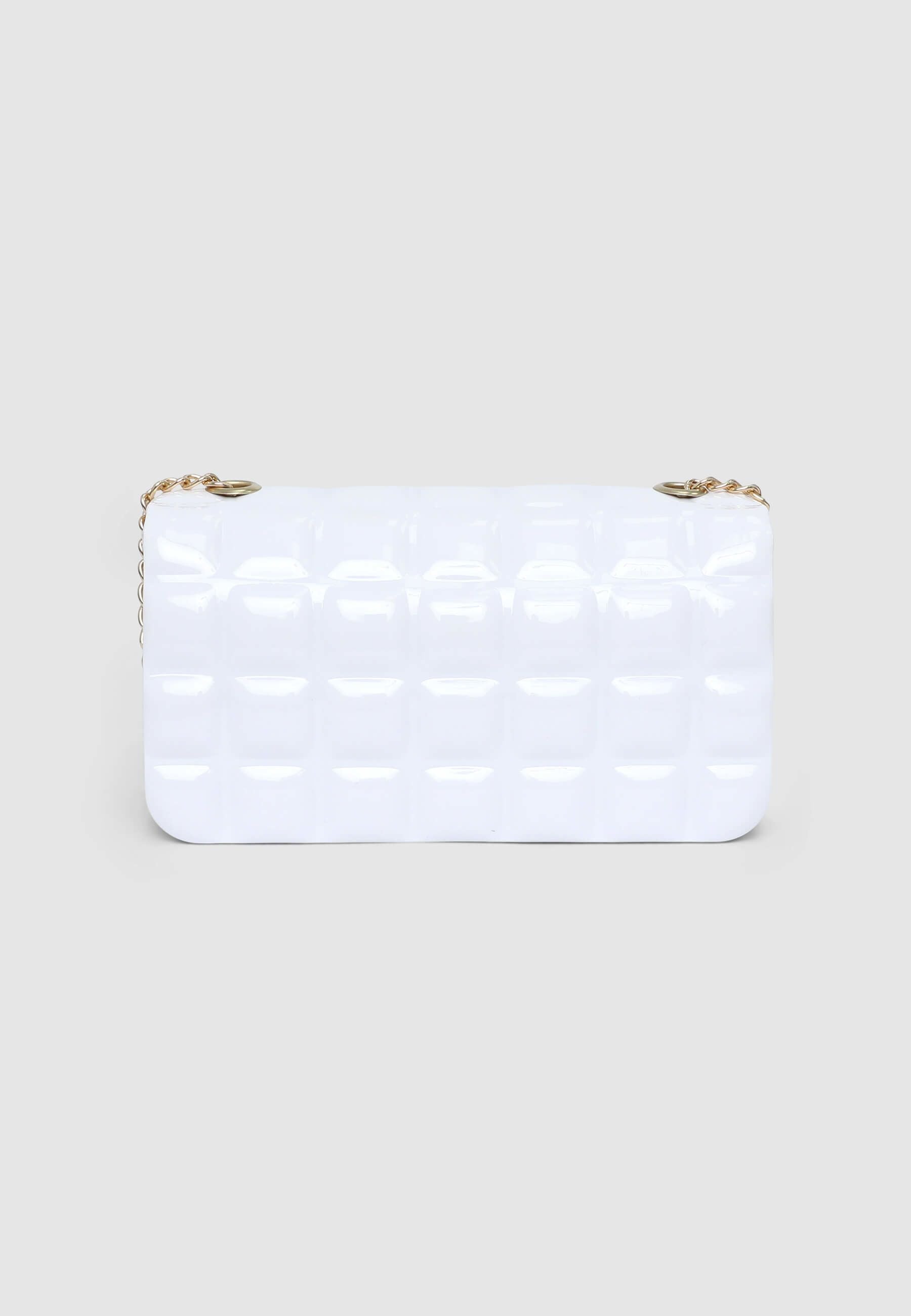 Borsa da donna a tracolla piccola con design compatto e chiusura frontale. Presenta un effetto lucido brillante, abbinato a una tracolla a catena per un tocco elegante e raffinato. La struttura rigida assicura la forma, mantenendo un look sempre ordinato e alla moda. Ideale per portare con sé l'essenziale in modo pratico e chic, perfetta per completare outfit sia casual che più eleganti. Dimensioni: Altezza 9cm, Lunghezza 17cm, Profondità 6,5cm.Dettagli