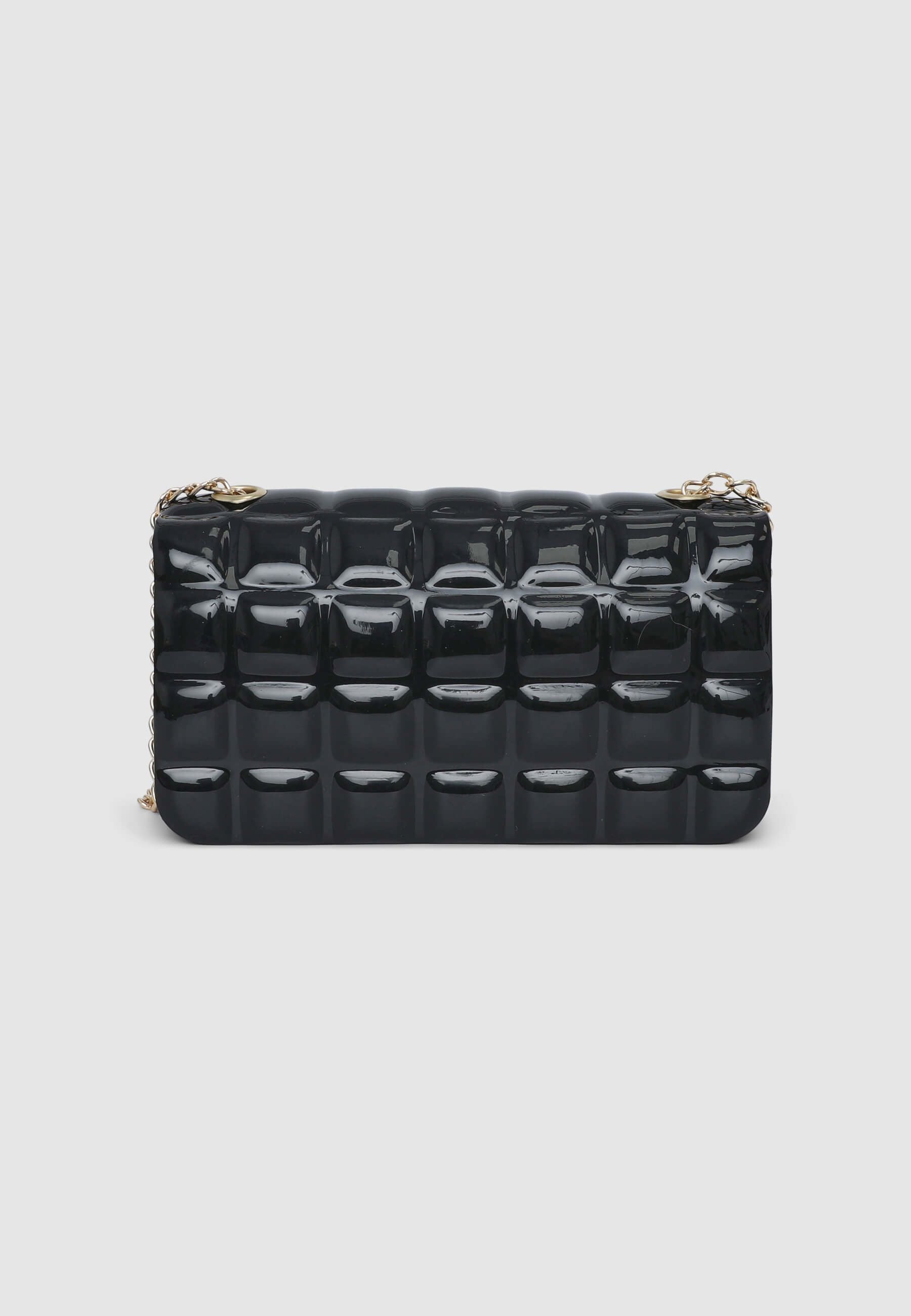 Borsa da donna a tracolla piccola con design compatto e chiusura frontale. Presenta un effetto lucido brillante, abbinato a una tracolla a catena per un tocco elegante e raffinato. La struttura rigida assicura la forma, mantenendo un look sempre ordinato e alla moda. Ideale per portare con sé l'essenziale in modo pratico e chic, perfetta per completare outfit sia casual che più eleganti. Dimensioni: Altezza 9cm, Lunghezza 17cm, Profondità 6,5cm.Dettagli