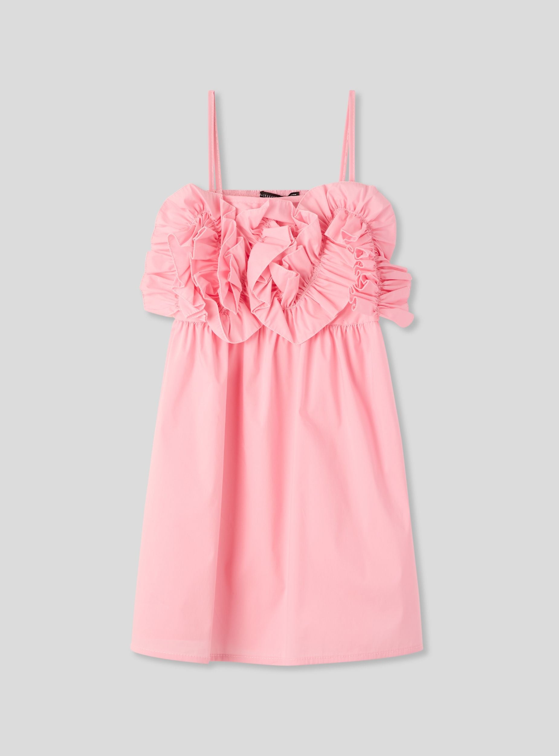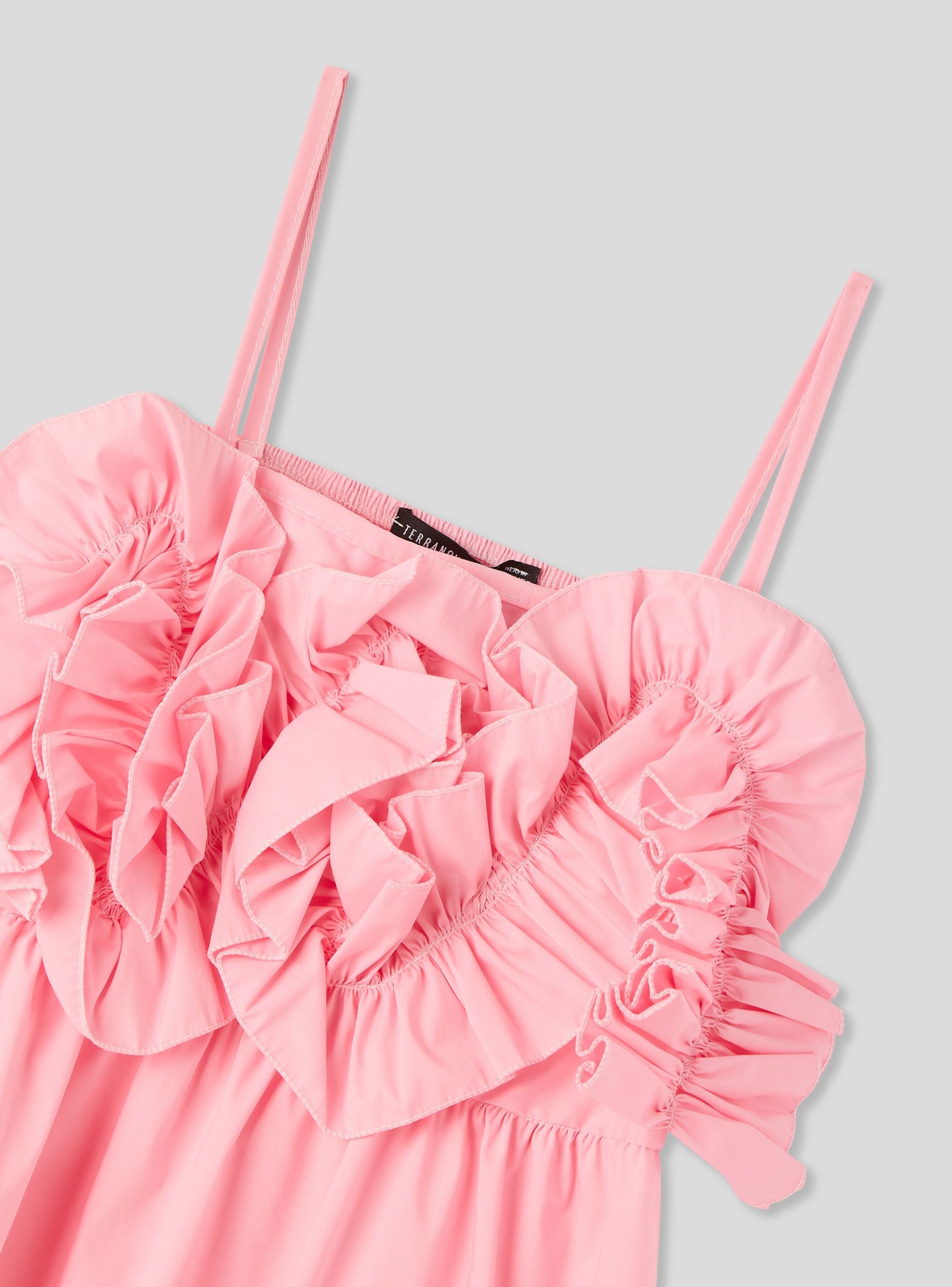 Abito da bambina con spalline sottili e balze decorative sul corpetto. Ideale per occasioni speciali, questo abito offre un design elegante e raffinato. La vestibilitá comoda e il taglio svasato lo rendono perfetto per essere indossato con sandali o ballerine. Un capo versatile che aggiunge un tocco di stile al guardaroba delle più piccole.Dettagli