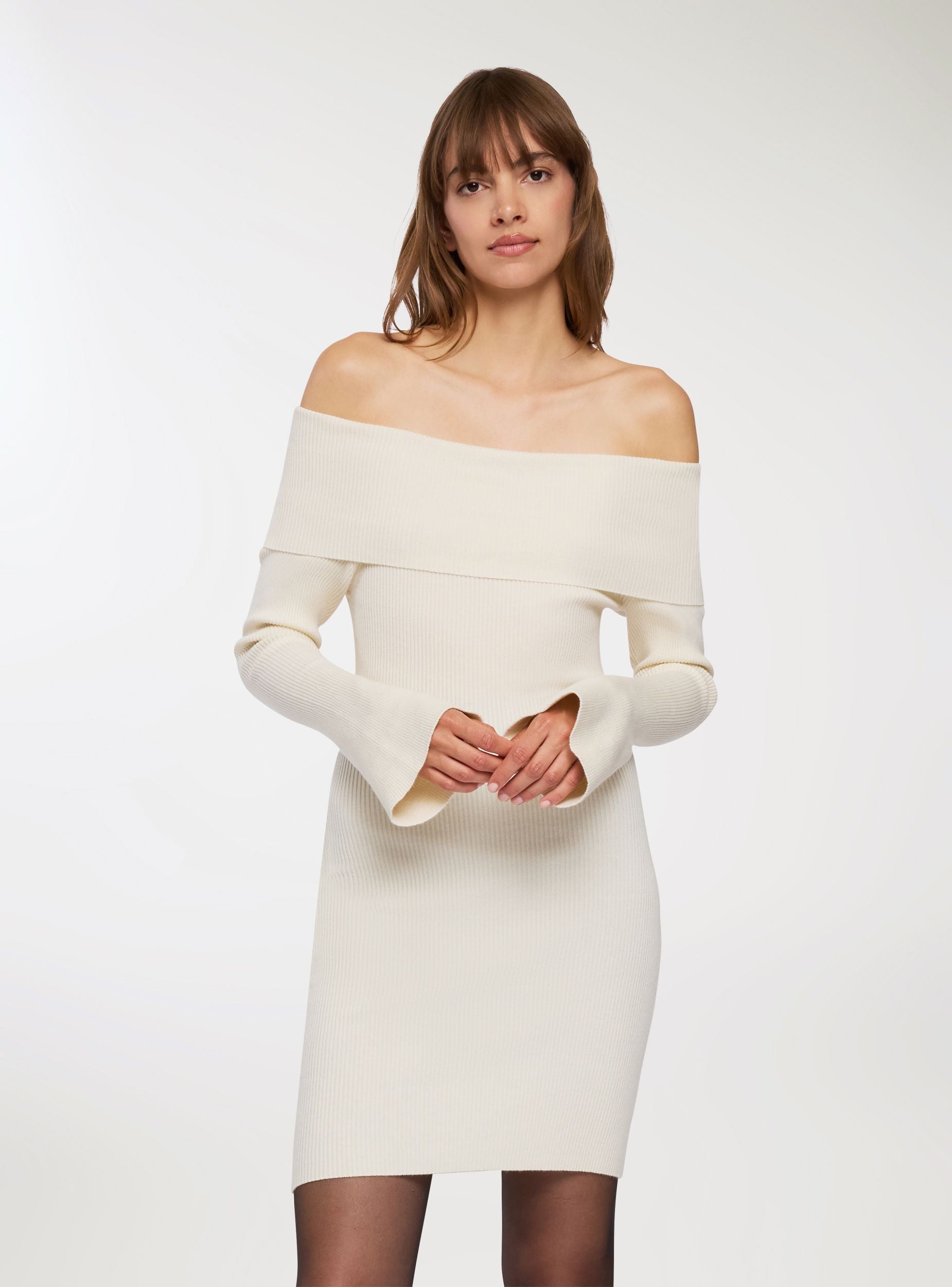 Abito in maglia da donna con design a spalle scoperte, perfetto per uno stile femminile e sofisticato. Il taglio aderente valorizza la silhouette, mentre le maniche lunghe leggermente svasate aggiungono un tocco elegante. Ideale per la stagione fredda, si presta sia a look casual con stivali che a outfit più chic per la sera. Un capo versatile, caldo e alla moda per ogni occasione.Dettagli
