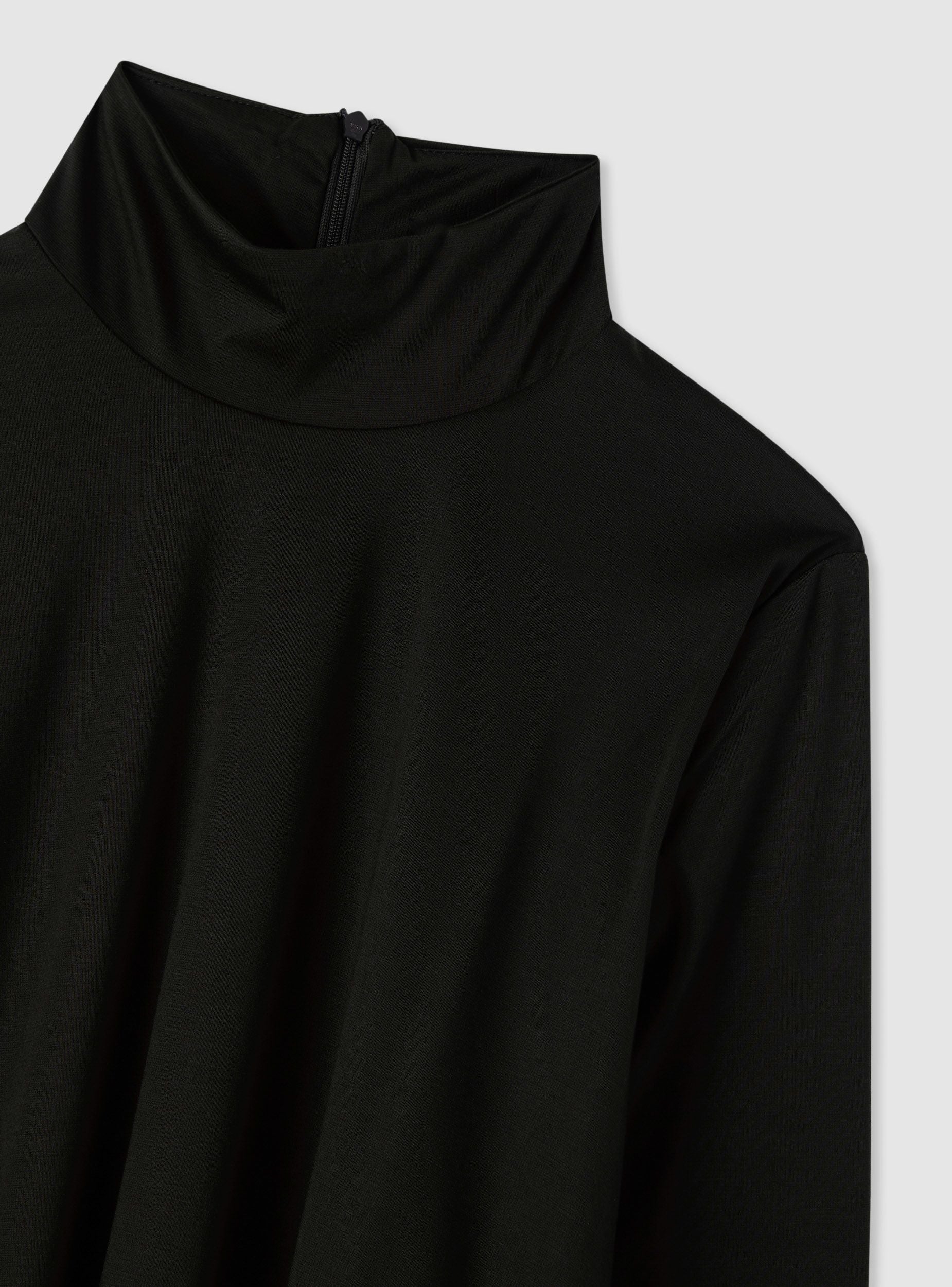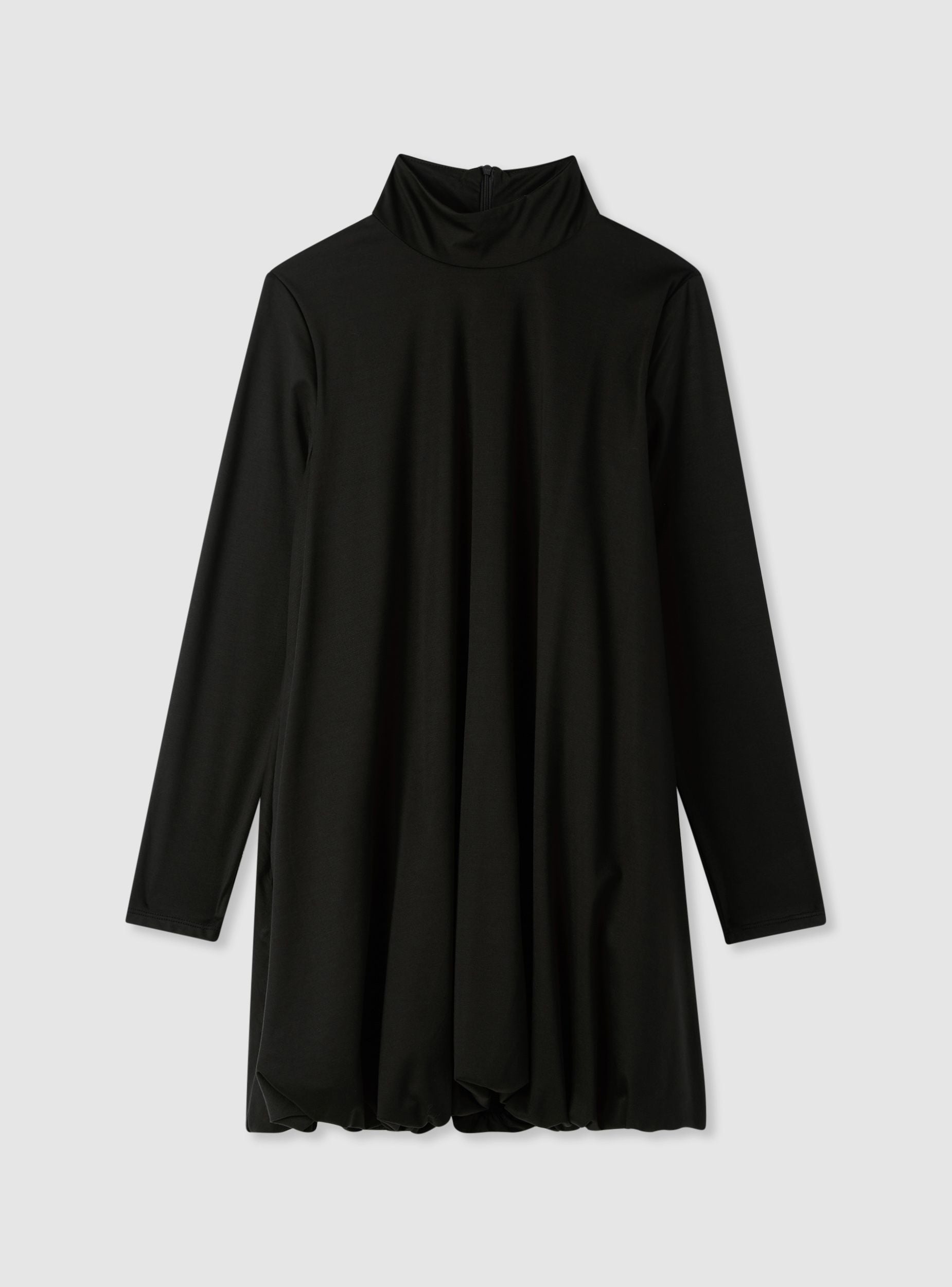 Abito da donna a tinta unita con collo alto e maniche lunghe. La silhouette palloncino aggiunge volume al fondo con arricciatura, ideale per eventi serali o occasioni speciali. Lunghezza al ginocchio e vestibilità regolare. Chiusura con zip sul retro. Perfetto con stivali alti o décolleté e accessori minimal per un look elegante e moderno.Dettagli