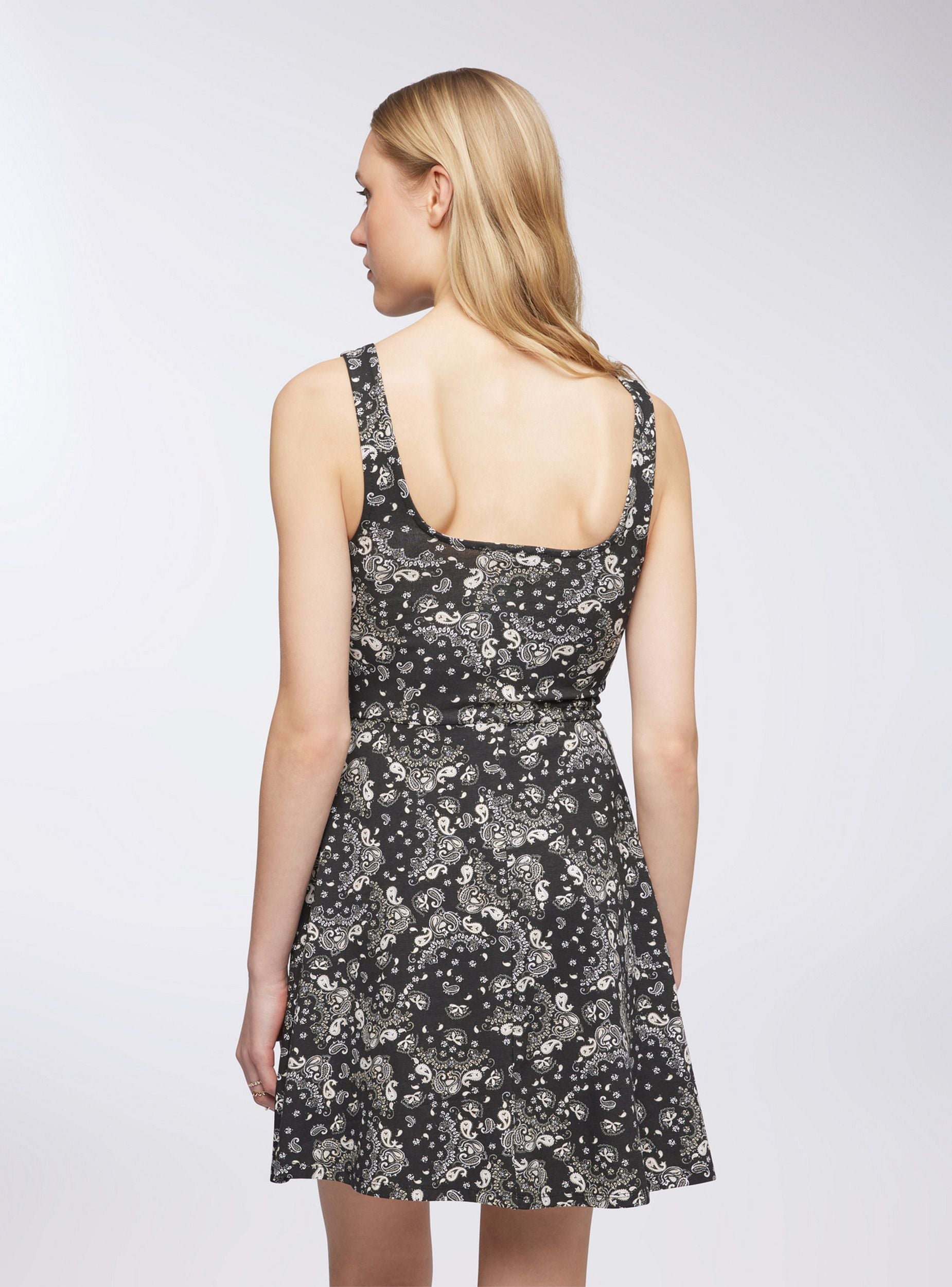 Abito da donna in stile skater con stampa bandana, che combina praticità e stile per un look vivace e casual. Presenta una linea corta e una gonna svasata che dona movimento e leggerezza. Le spalline offrono un tocco di semplicità, mentre lo scollo arrotondato sul davanti crea una silhouette morbida e femminile. Ideale per giornate estive o per un'uscita informale, questo abito abbina un design fresco a un taglio versatile, valorizzando la figura senza rinunciare al comfort.Dettagli