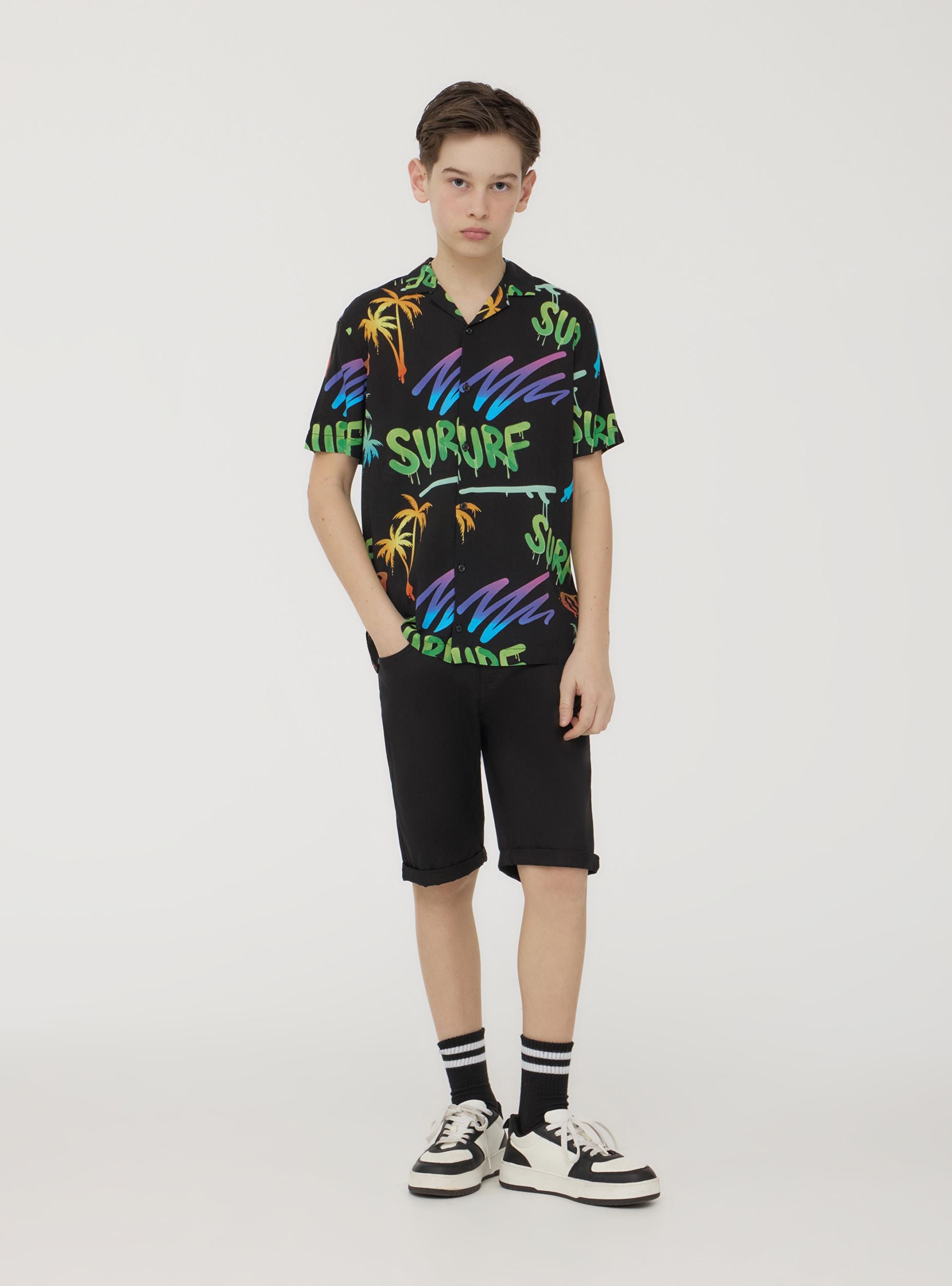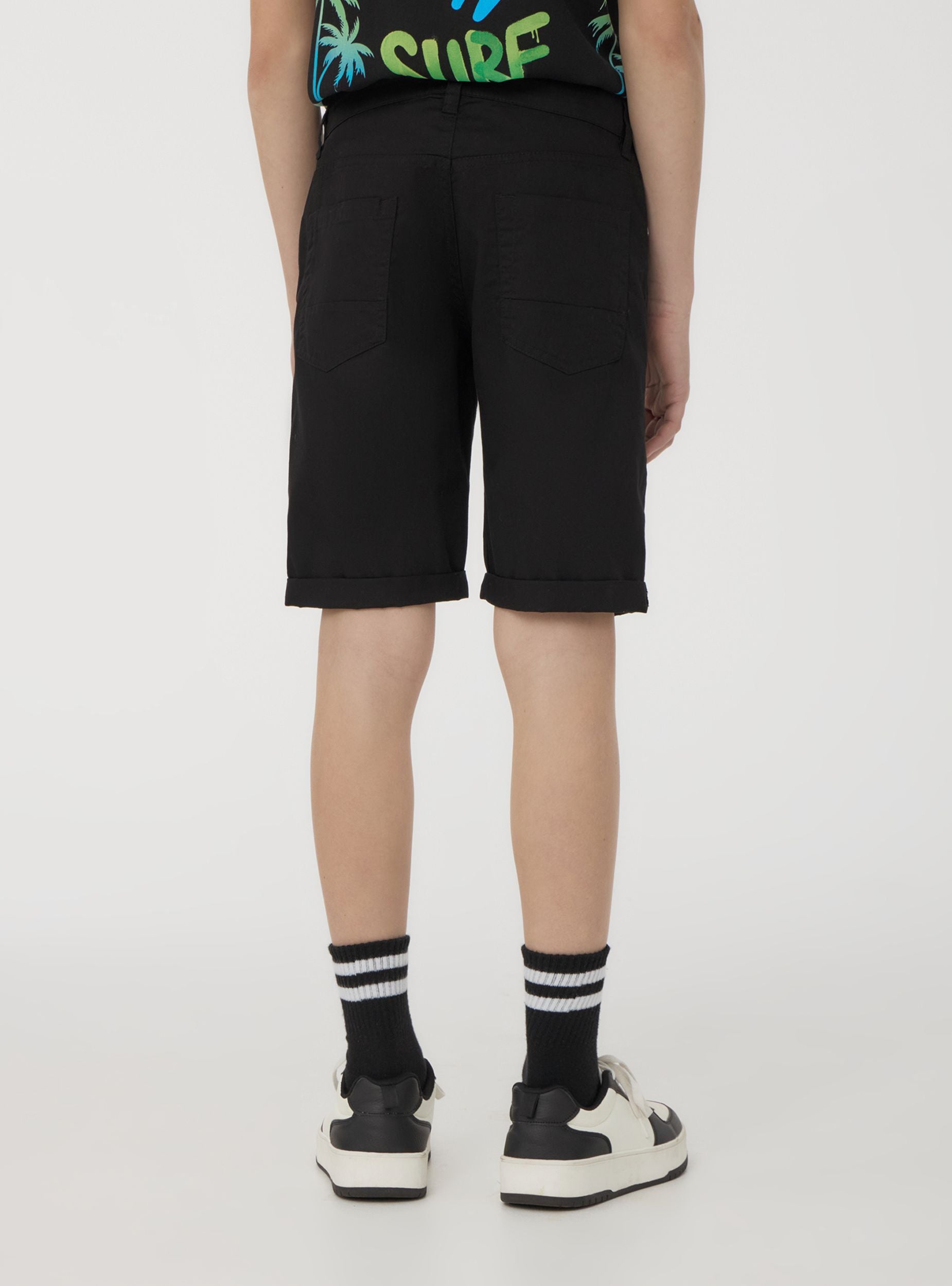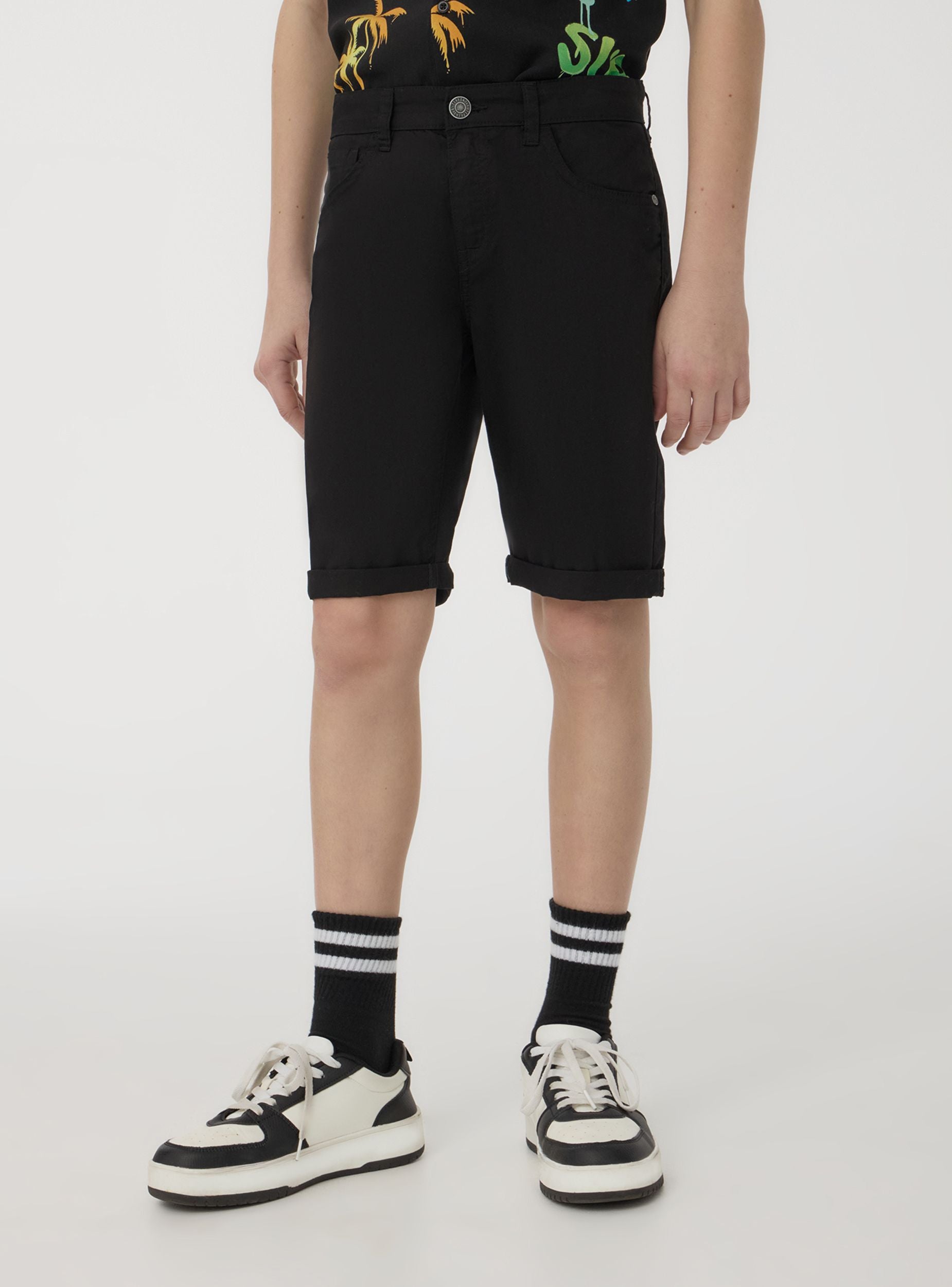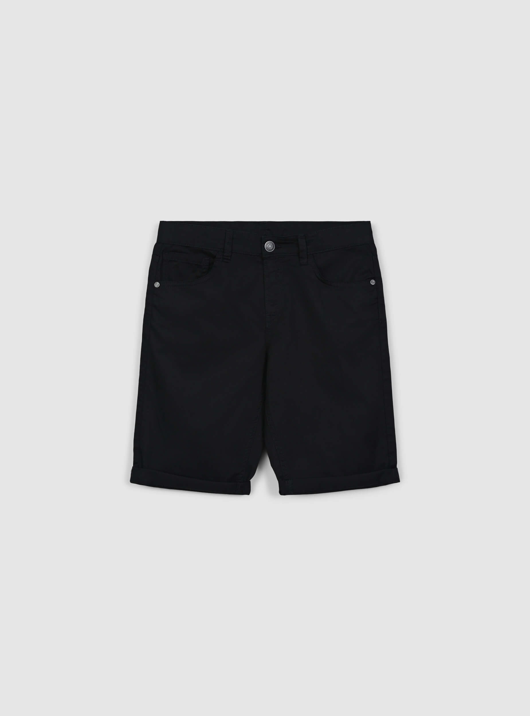 Pantaloni scurți pentru copii, perfecți pentru zilele de vară sau timpul liber. Model cu închidere cu nasture și fermoar, îmbogățit cu șlițuri în talie pentru utilizarea cu curele. Designul cu cinci buzunare oferă practicitate, în timp ce tivul adaugă un plus de stil. Culoarea uni îi face ideali pentru asocieri versatile în orice ocazie.Detalii