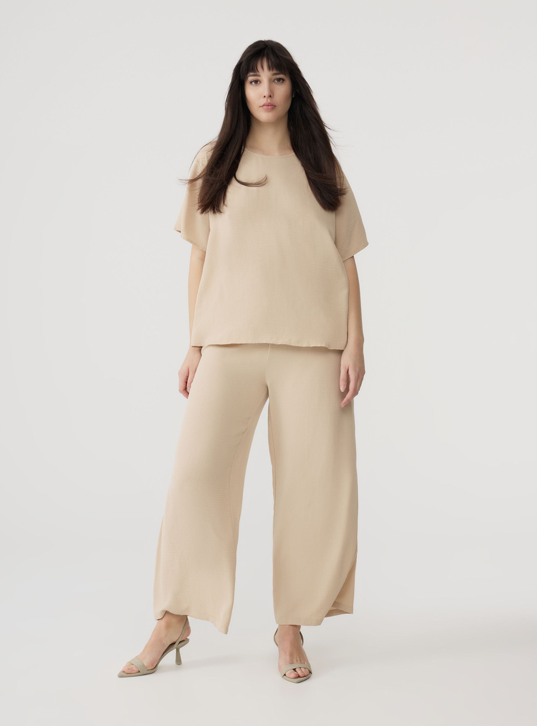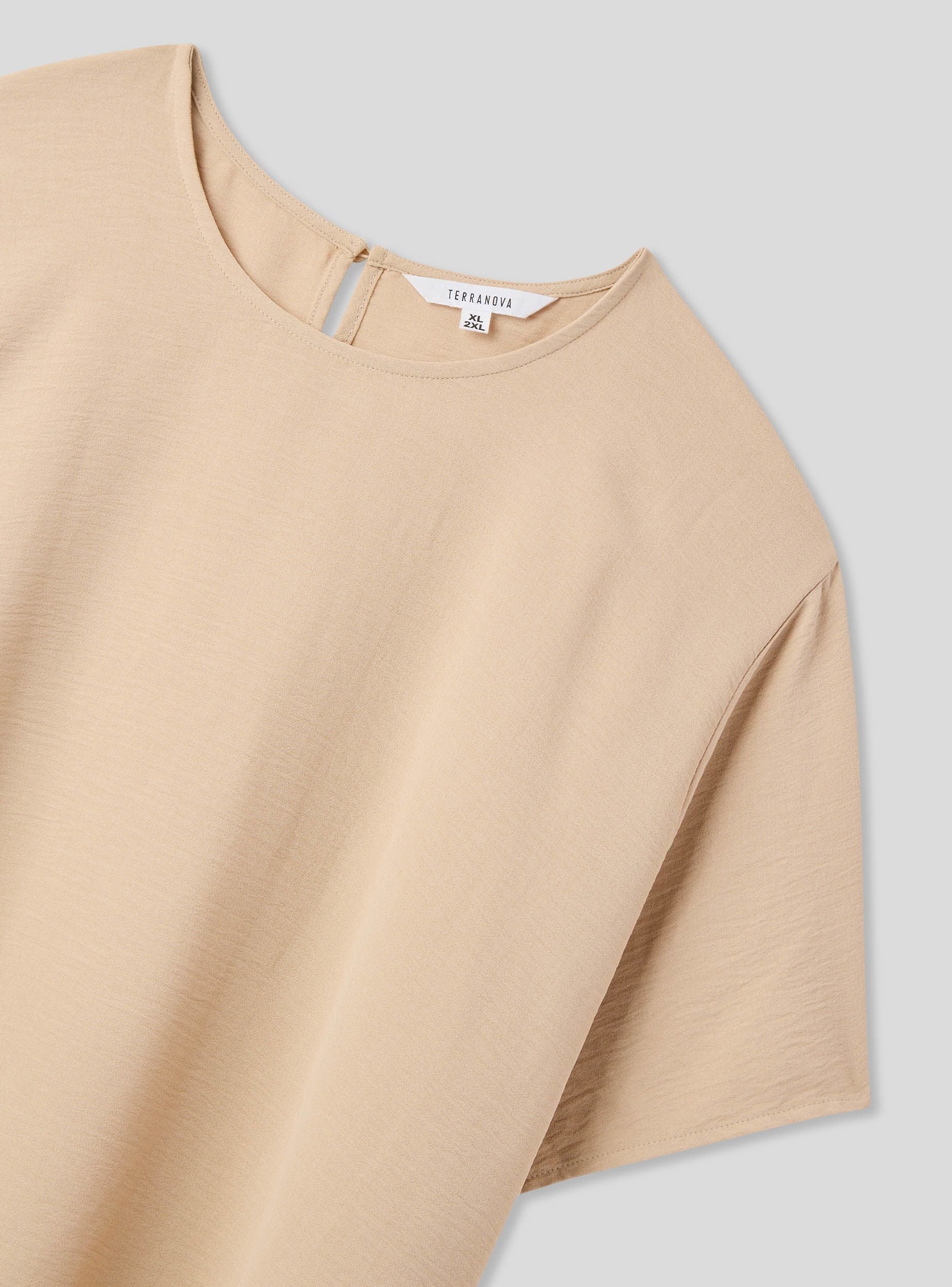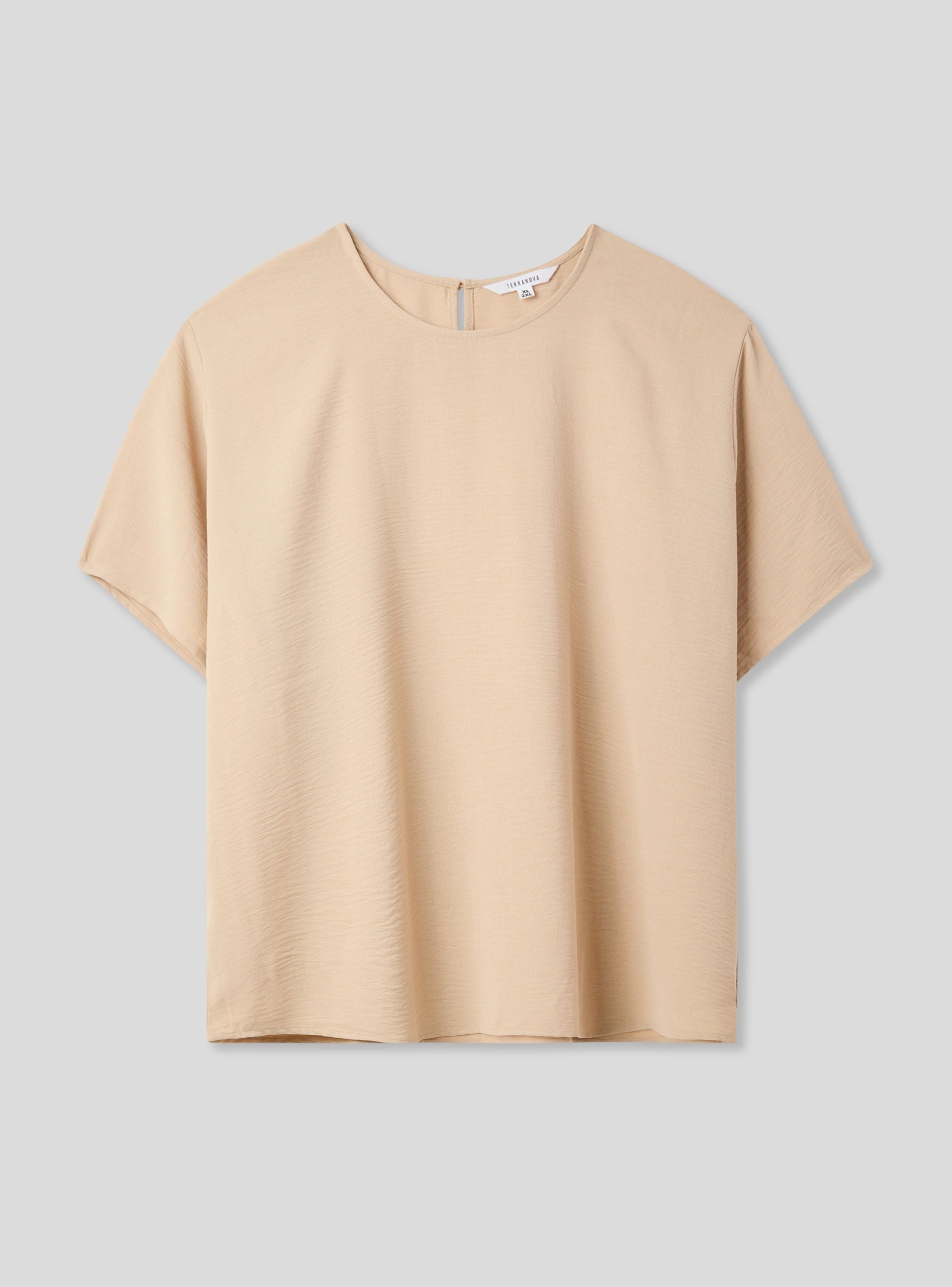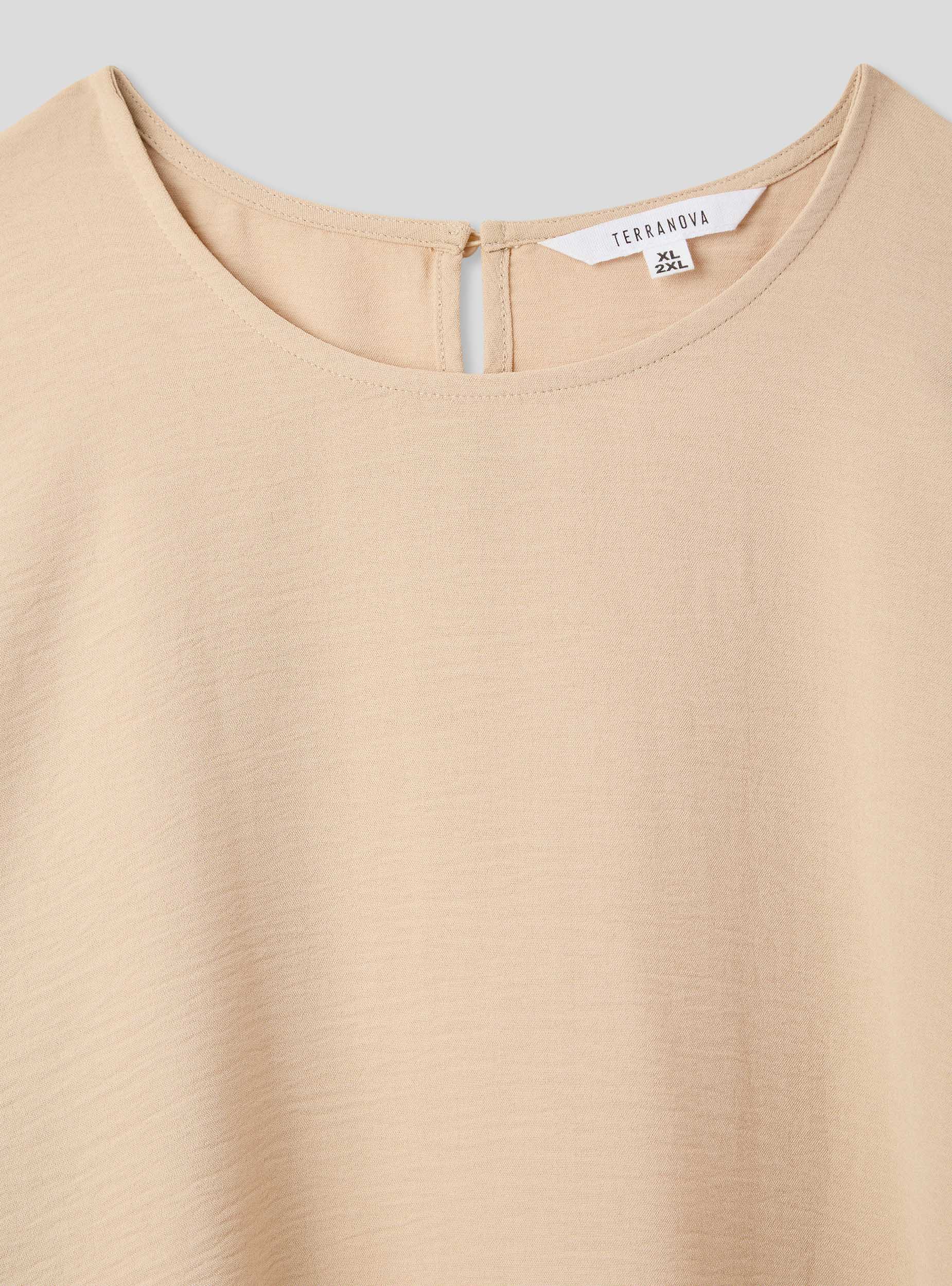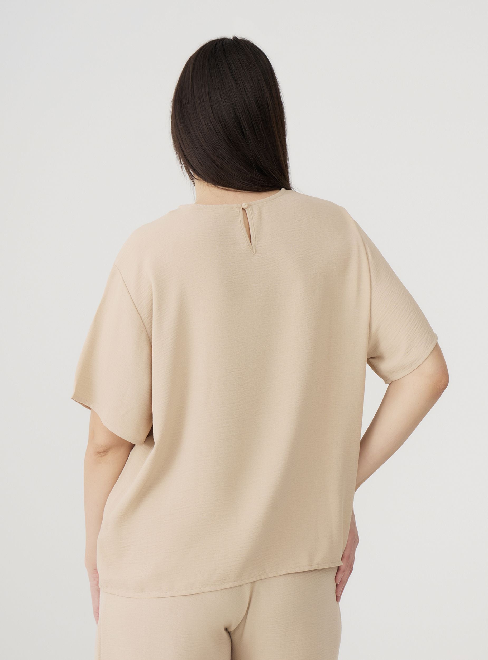 Bluză damă uni, cu un design esențial și rafinat. Modelul prezintă un guler rotund confortabil care pune în valoare linia gâtului și mâneci scurte largi, perfecte pentru un plus de prospețime și libertate de mișcare. Închiderea din spate cu nasture adaugă un detaliu delicat și practic. Croiala lejeră o face ideală pentru combinații versatile, potrivită pentru diverse ocazii cu un stil minimalist și elegant.Detalii