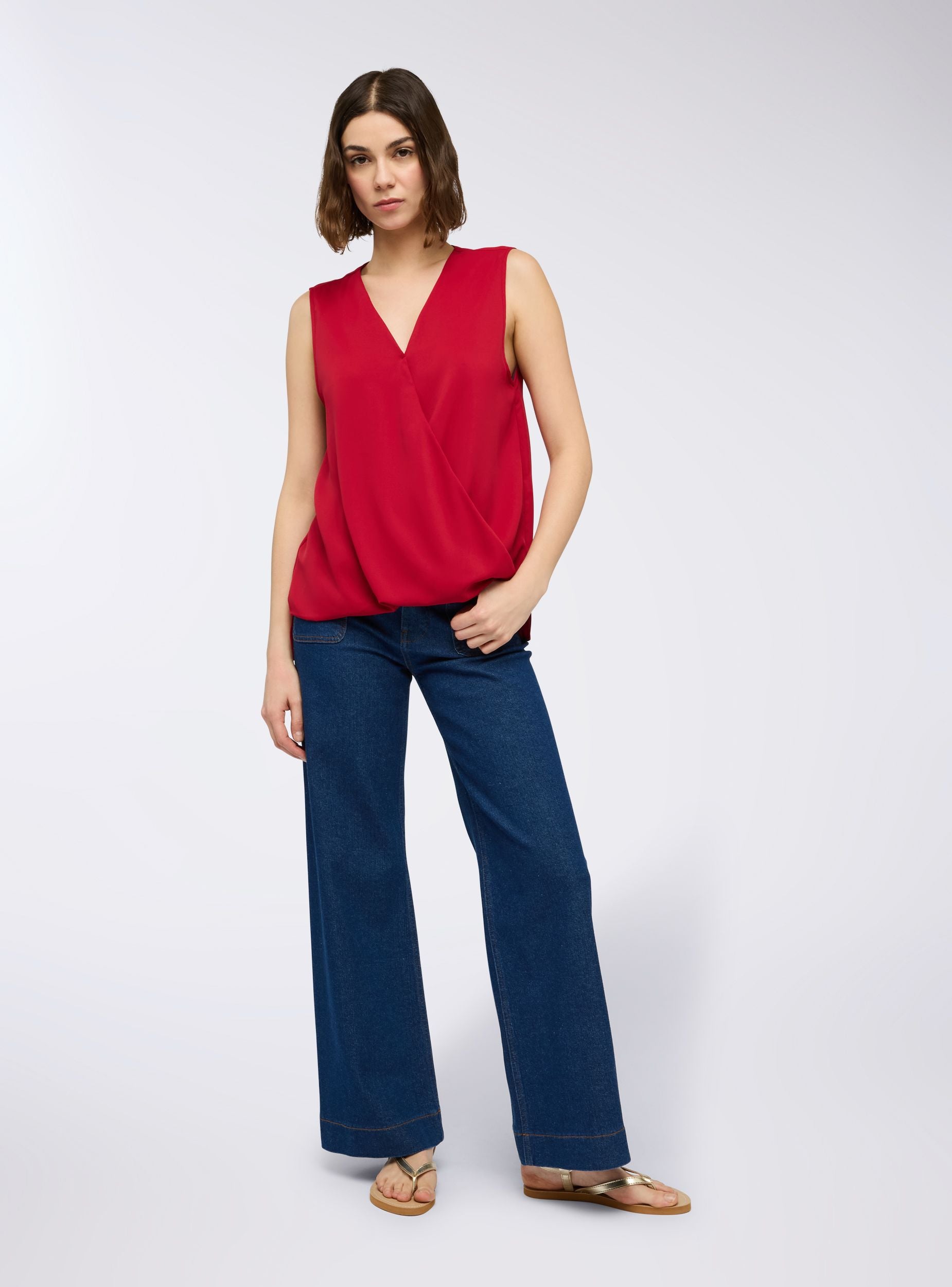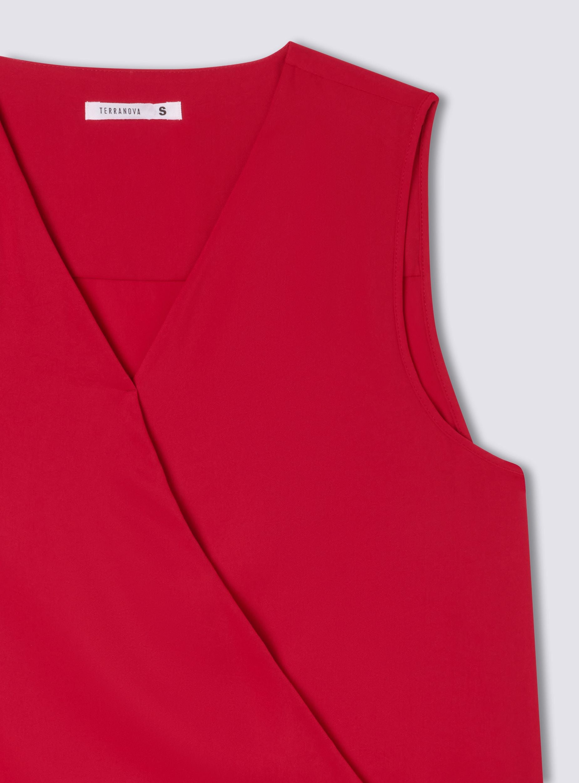 Cămașă de damă cu o linie esențială și sofisticată, caracterizată printr-un design încrucișat care pune în valoare silueta cu eleganță. Croiala fără mâneci o face ideală pentru zilele mai calde, în timp ce încrucișarea adaugă o notă de dinamism ținutei. Culoarea uni o face perfectă pentru combinații versatile, atât cu pantaloni croiți, cât și cu blugi, pentru un outfit mereu îngrijit și rafinat.Detalii