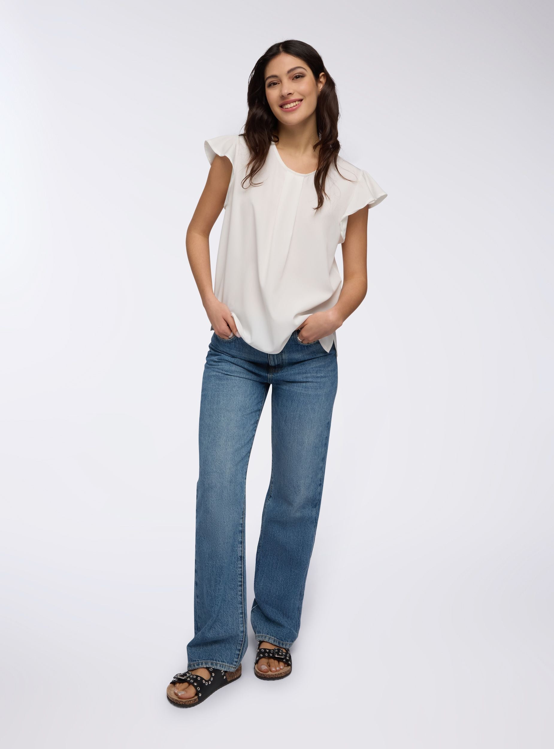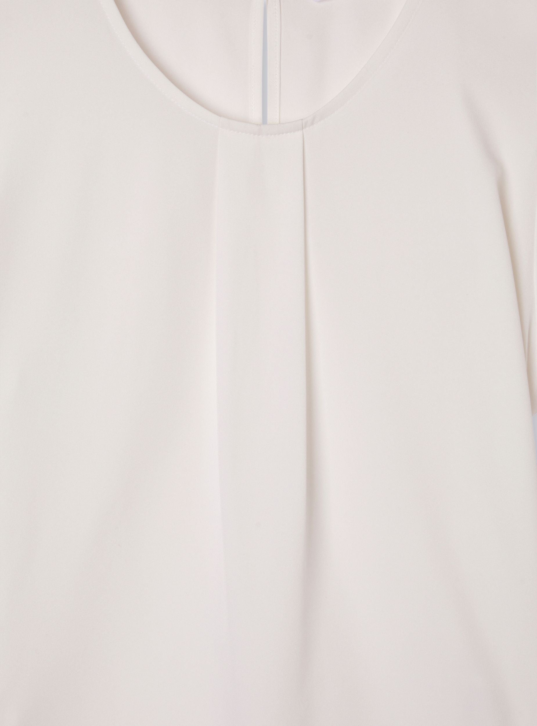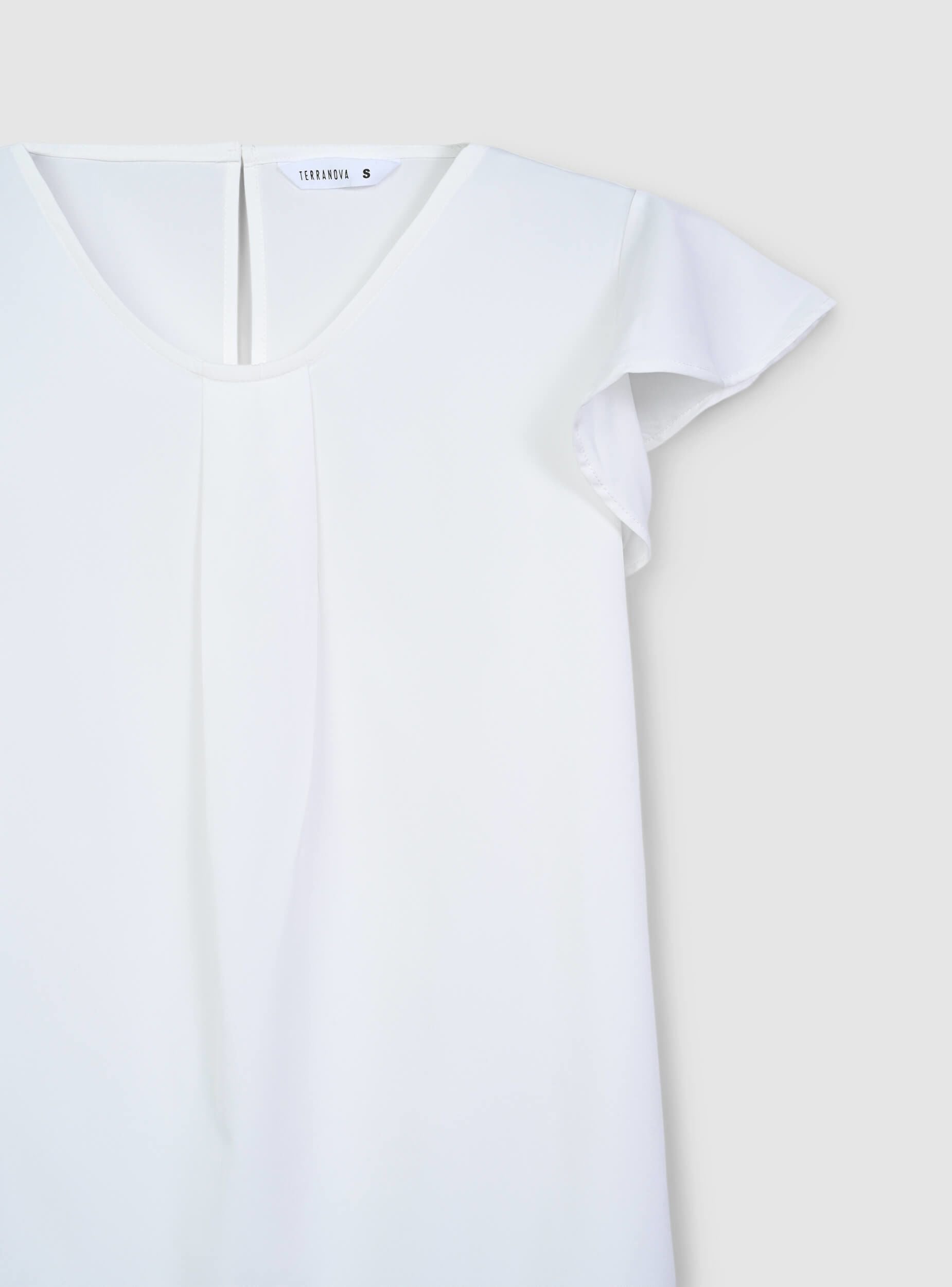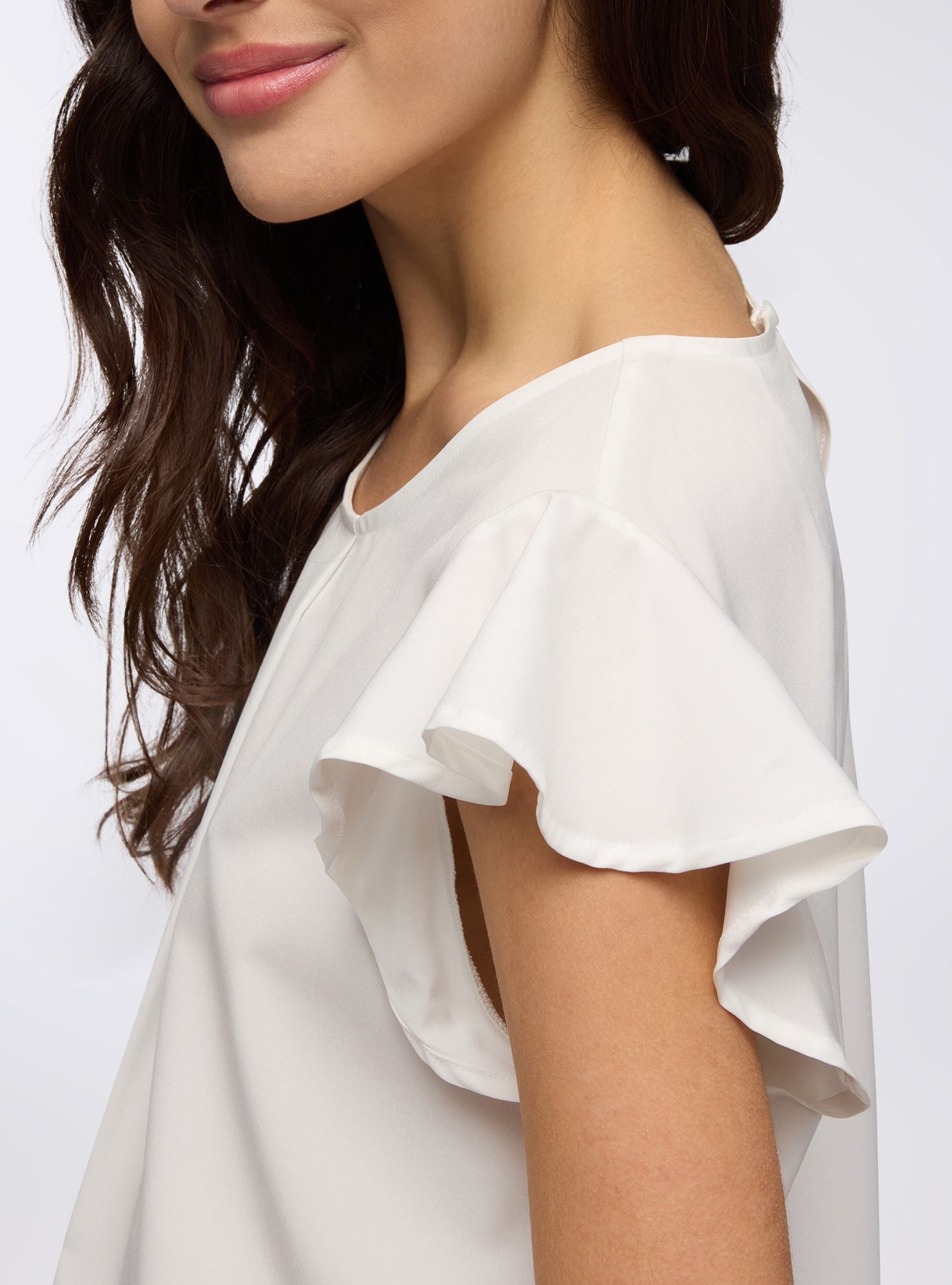 Bluză de damă cu un design esențial și rafinat, caracterizată printr-o croială largă și confortabilă. Prezintă o culoare uni elegantă care îi evidențiază versatilitatea. Echipată cu un nasture la spate pentru o închidere delicată și mâneci scurte. Perfectă pentru a completa ținute casual sau mai formale, această bluză se potrivește pentru multiple ocazii datorită stilului său simplu, dar sofisticat.Detalii