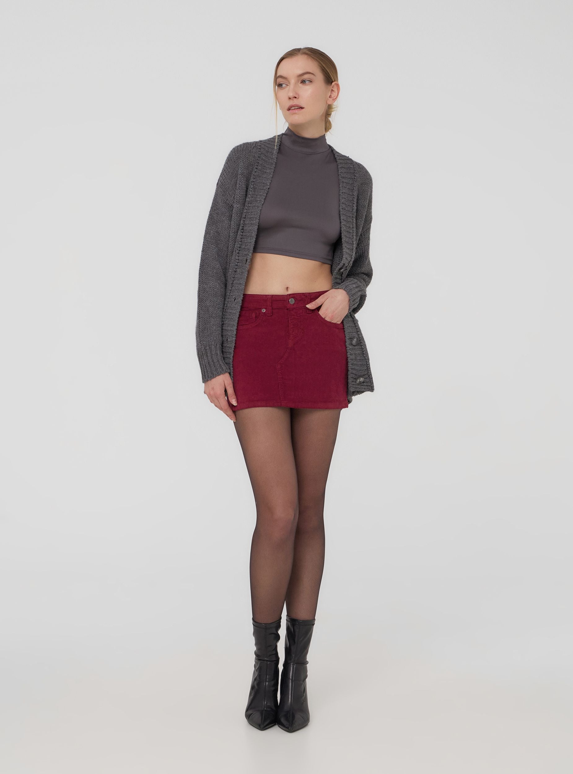 Fustă de damă cu un design modern și versatil, caracterizată printr-o culoare uni care o face potrivită pentru diverse ocazii. Realizată cu efect de catifea pentru un aspect sofisticat și moale, dispune de buzunare laterale practice, adăugând funcționalitate stilului. Detaliul nasturelui și buclele pentru curea o fac perfectă pentru a fi asortată cu o curea, permițând personalizarea look-ului. Ideală atât pentru ținute casual, cât și pentru ocazii mai elegante, această fustă este un must-have pentru cei care caută confort și stil într-un singur articol vestimentar.Detalii