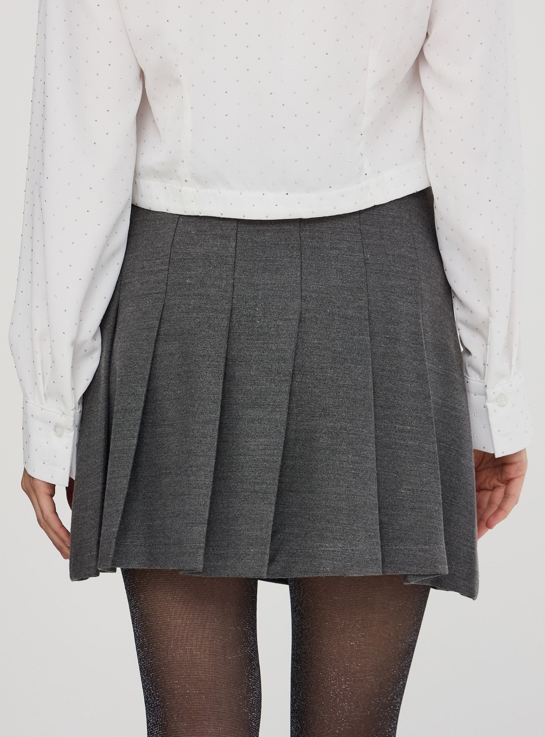 Fustă de damă cu croială mini, perfectă pentru un look modern și proaspăt. Caracterizată printr-o structură uni, această fustă prezintă pliseuri elegante care oferă mișcare și volum, adăugând un plus de dinamism stilului. Închiderea laterală cu fermoar este discretă și practică, facilitând îmbrăcarea fără a compromite estetica curată a piesei. Ideală pentru a crea ținute atât casual, cât și rafinate, se potrivește ușor cu cămăși sau topuri mulate. O piesă versatilă și la modă, indispensabilă pentru cei care iubesc să-și exprime personalitatea prin detalii simple și șic.Detalii