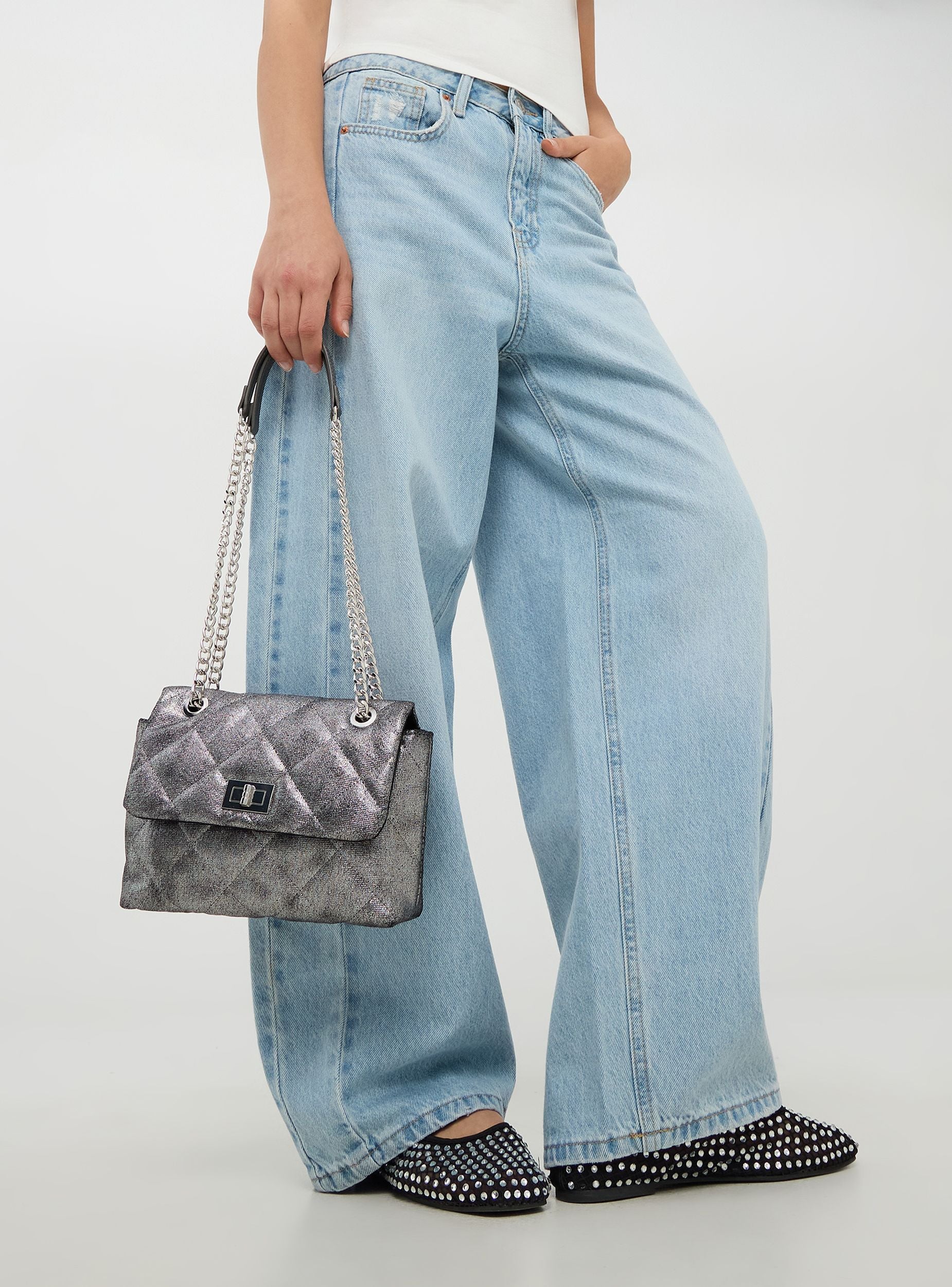 Geantă de umăr pentru femei, cu un design elegant și modern. Suprafața este realizată din material lucios cu efect matlasat. Geanta are dimensiuni compacte, ideală pentru utilizare atât ziua, cât și seara. Este prevăzută cu o închidere cu capsa. În interior, geanta este căptușită și dispune de un buzunar cu fermoar, util pentru depozitarea obiectelor personale mici. Perfectă pentru a completa atât ținutele casual, cât și pe cele elegante, oferind atât funcționalitate, cât și stil. Dimensiuni: Înălțime 14 cm, Lungime 26 cm, Adâncime 6,5 cm.Detalii