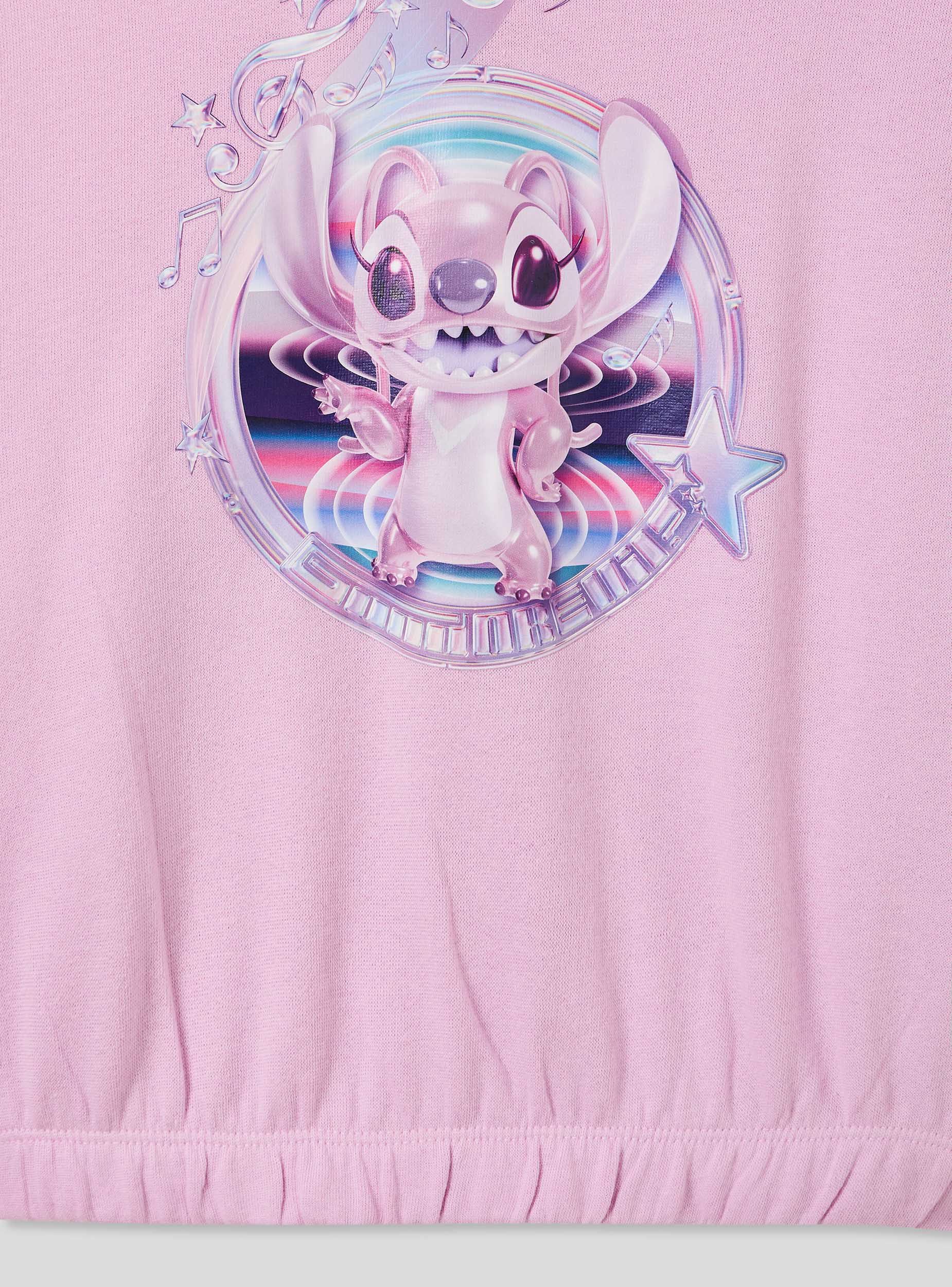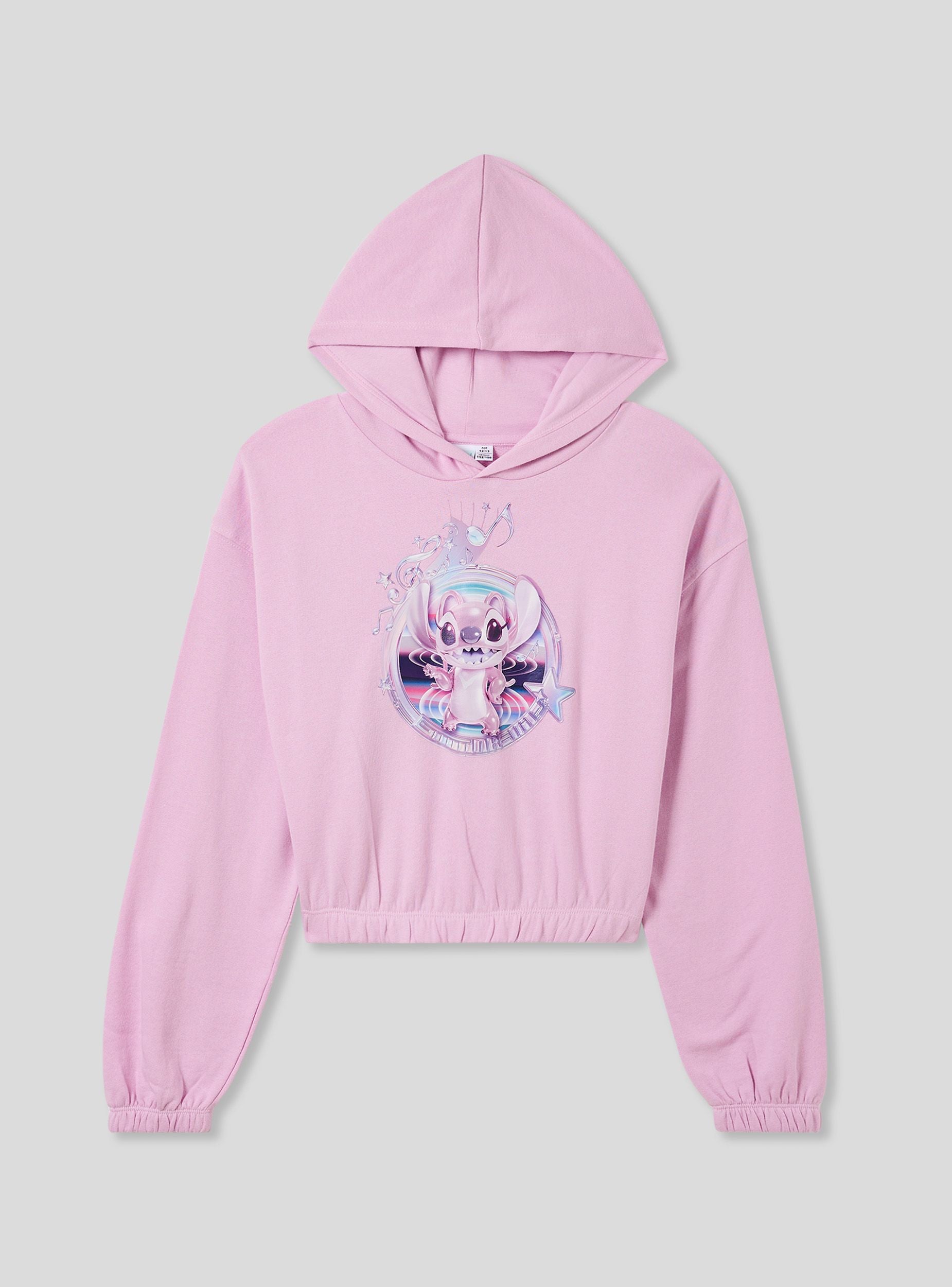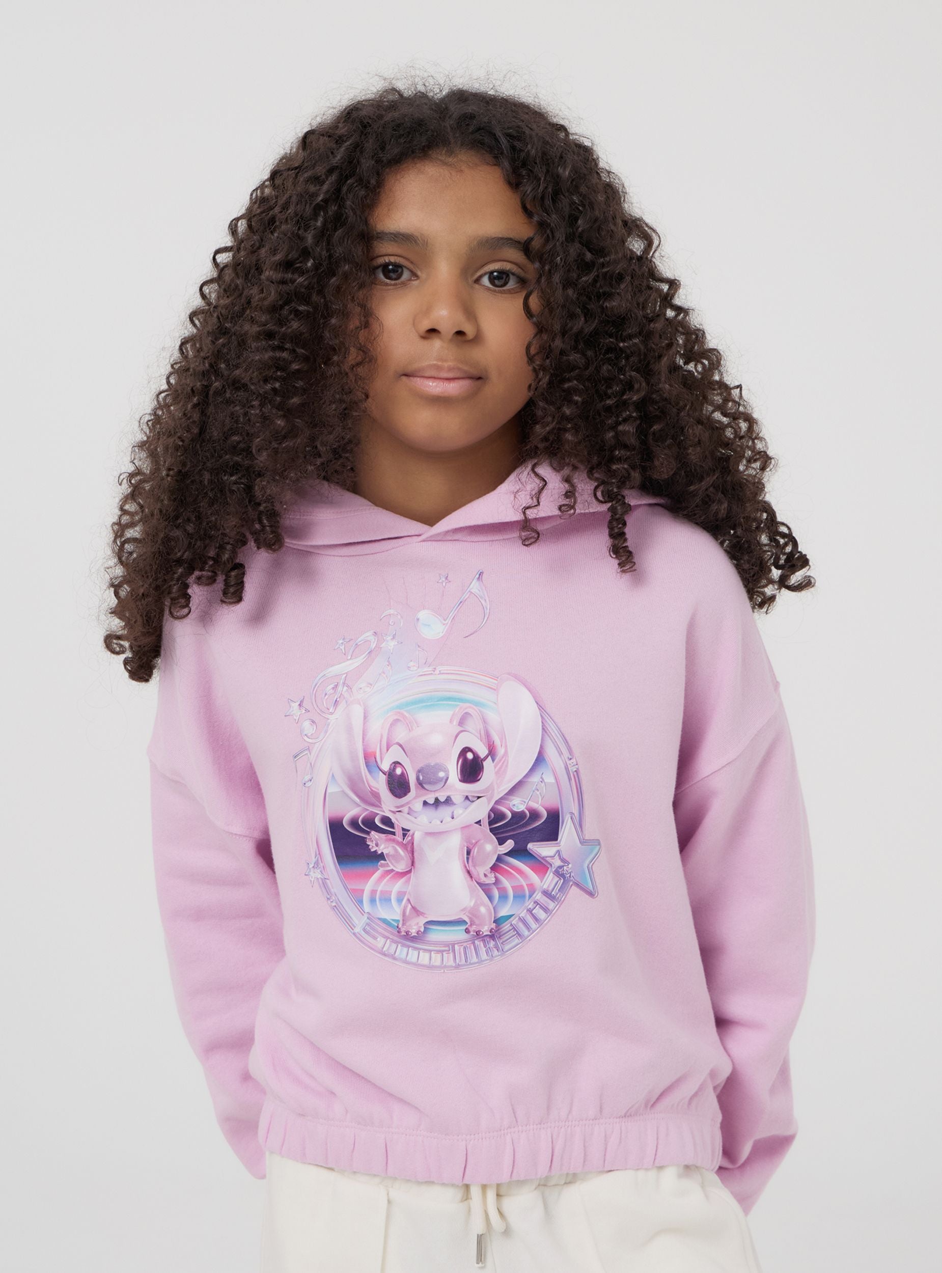 Hanorac ușor pentru fete, caracterizat printr-un imprimeu viu dedicat personajului Angel din Stitch®, perfect pentru un look jucăuș. Echipat cu o glugă practică, acest hanorac are un design fără fermoar, ceea ce îl face ușor de îmbrăcat. Mâneci lungi, împreună cu manșetele și tivul inferior elastice, asigură confort și o potrivire bună. O piesă ideală pentru timpul liber, care combină stilul cu practicitatea.Detalii