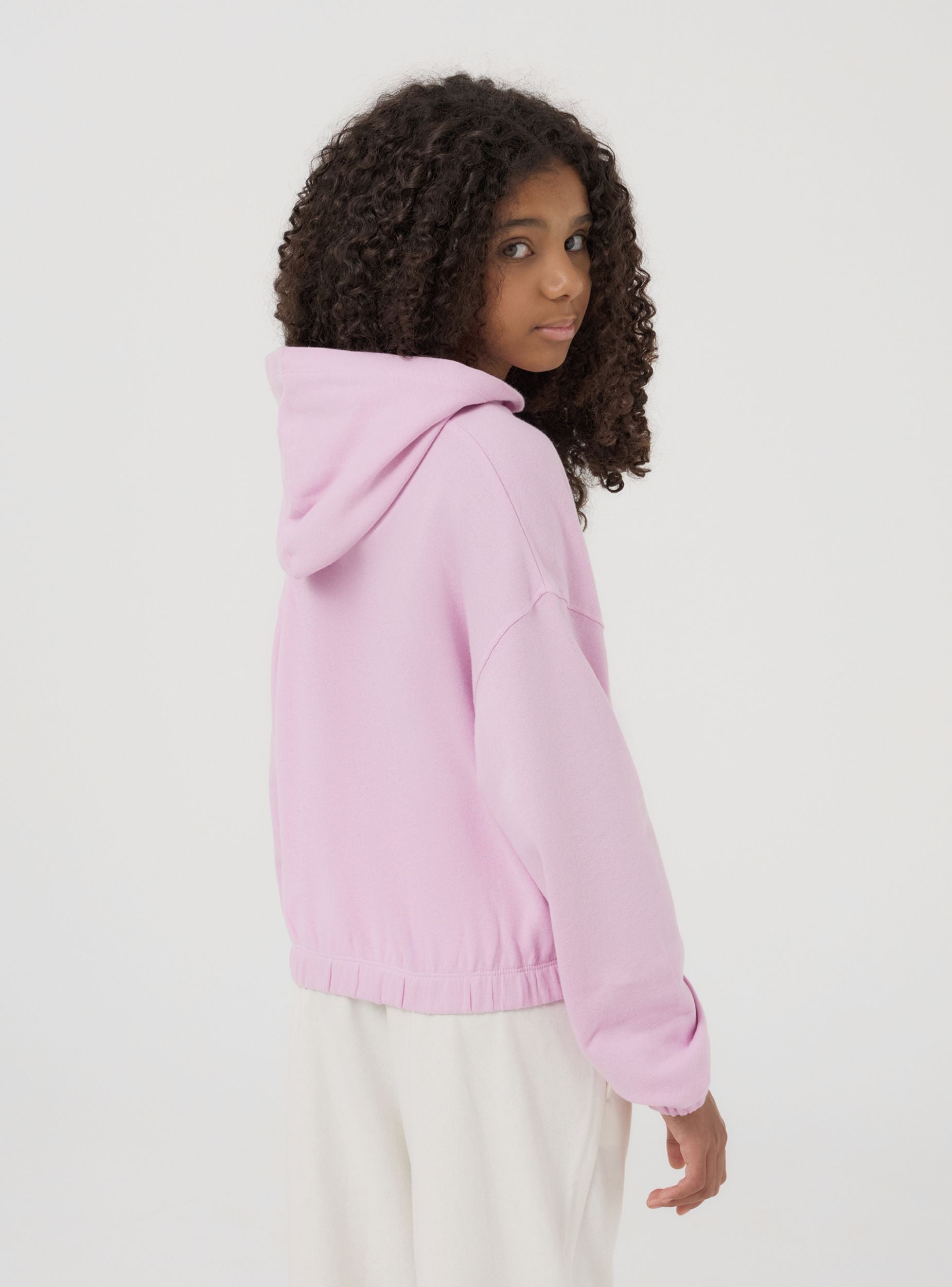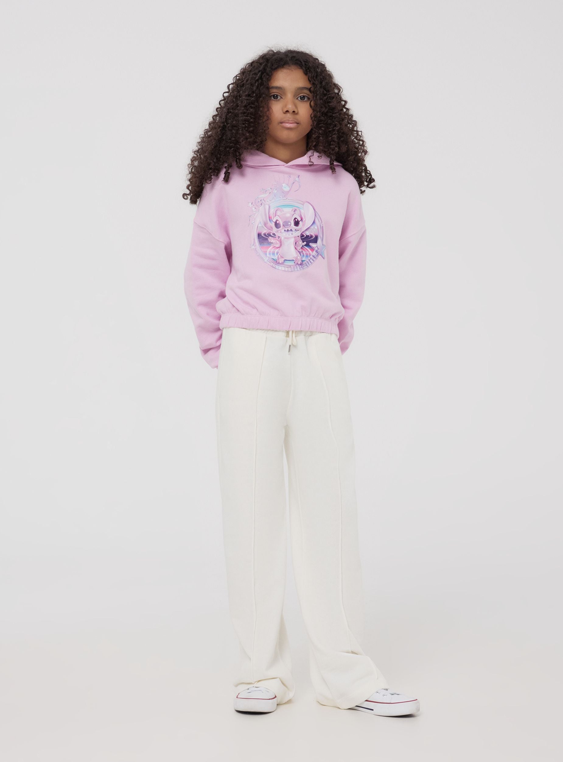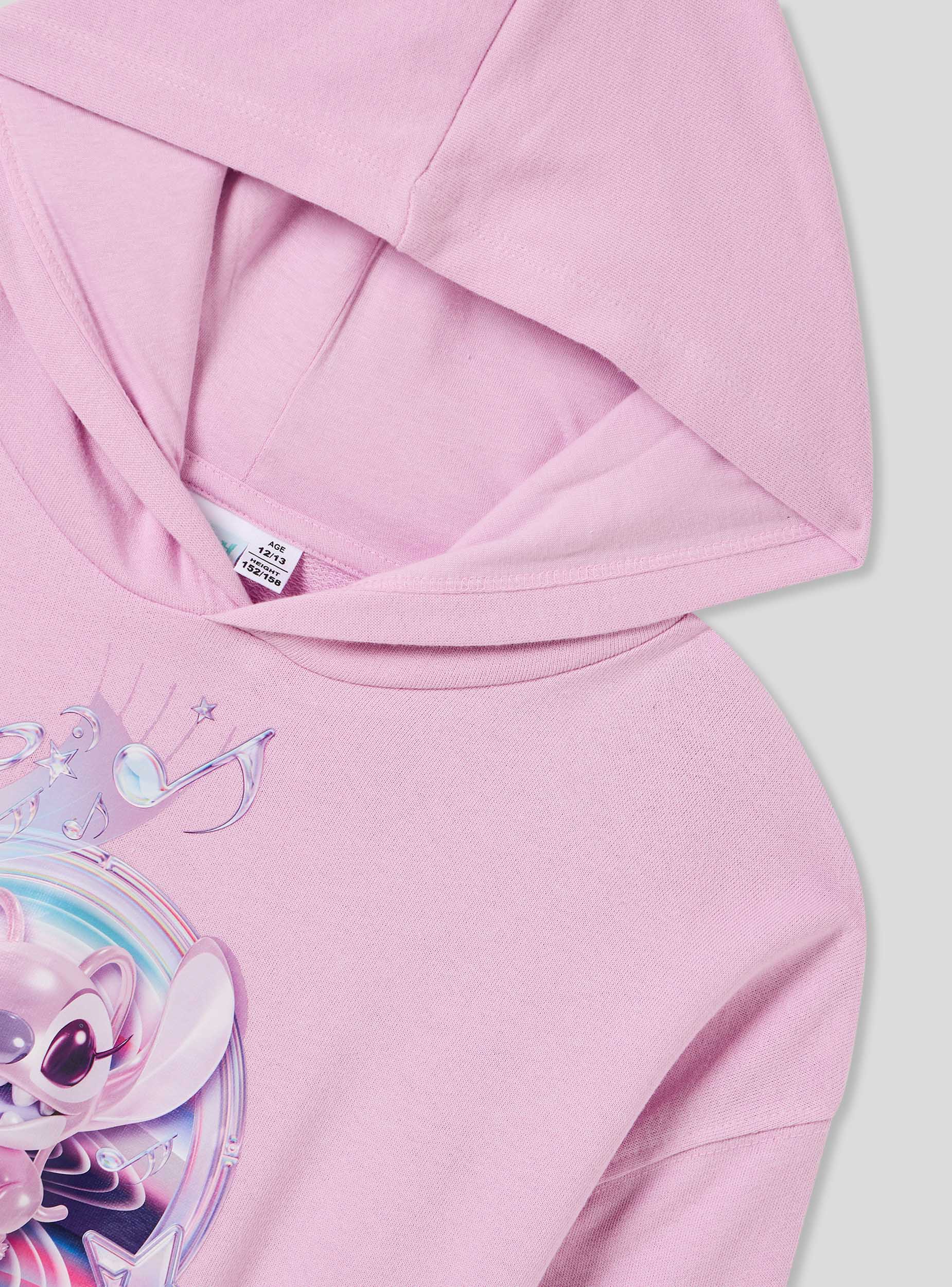 Hanorac ușor pentru fete, caracterizat printr-un imprimeu viu dedicat personajului Angel din Stitch®, perfect pentru un look jucăuș. Echipat cu o glugă practică, acest hanorac are un design fără fermoar, ceea ce îl face ușor de îmbrăcat. Mâneci lungi, împreună cu manșetele și tivul inferior elastice, asigură confort și o potrivire bună. O piesă ideală pentru timpul liber, care combină stilul cu practicitatea.Detalii