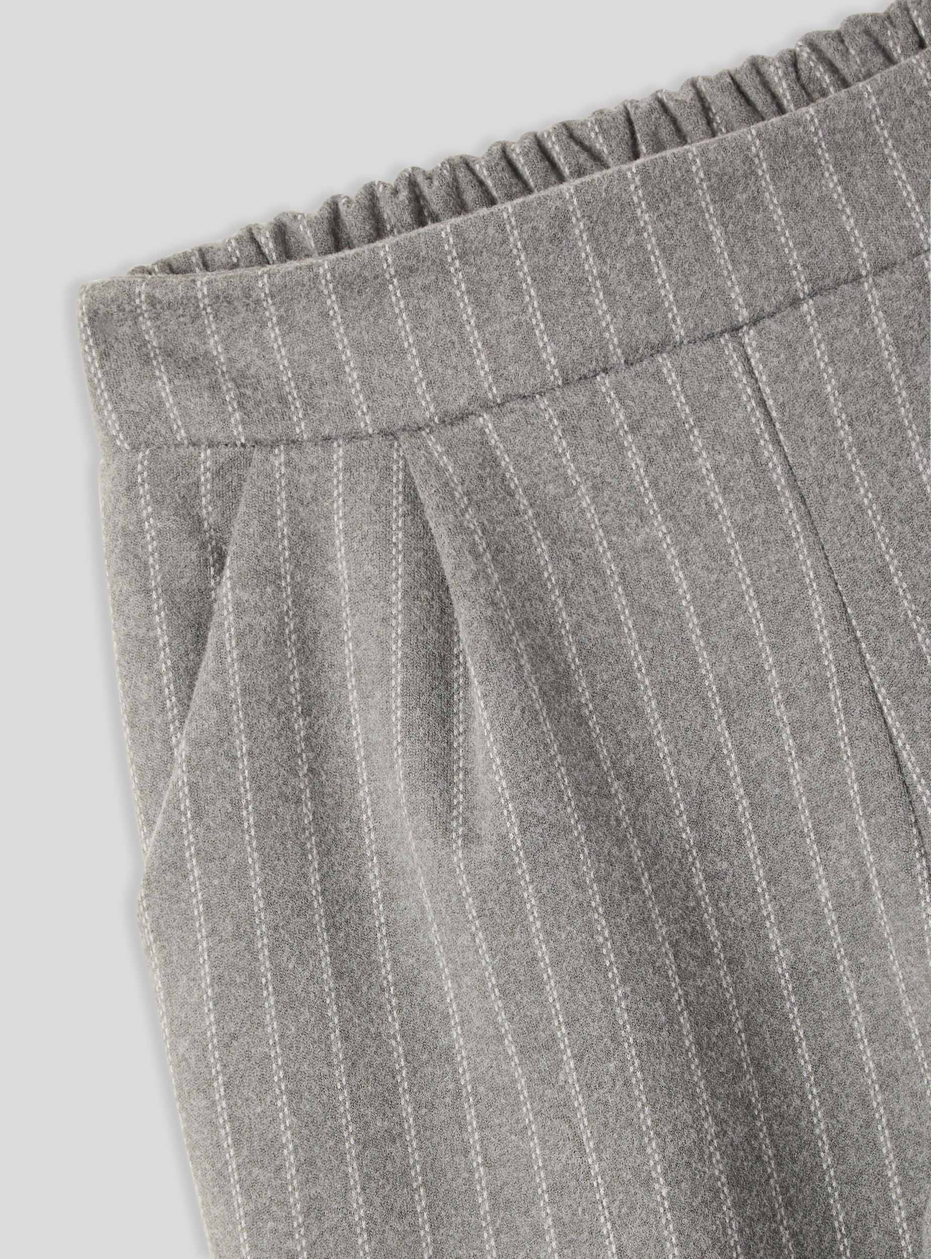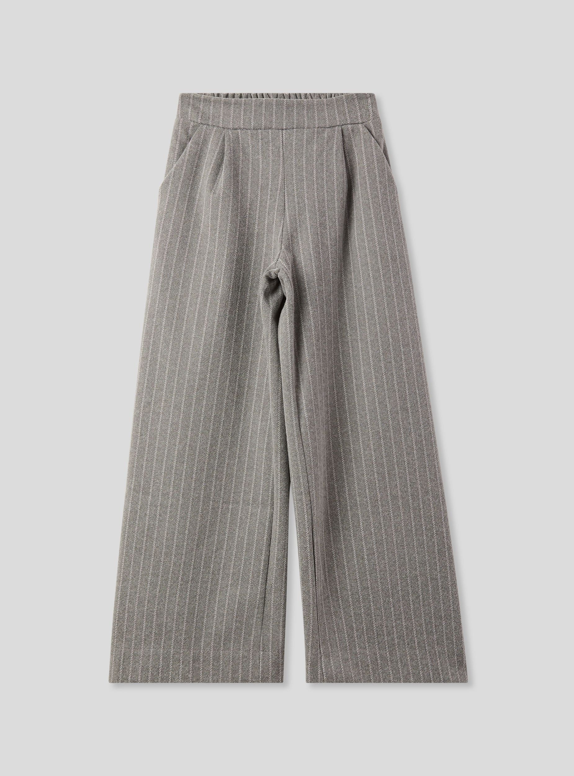 Pantaloni pentru fete, cu croială wide leg, ideali pentru un look elegant și comod în același timp. Designul cu dungi subțiri adaugă o notă sofisticată, perfectă pentru a fi asortați cu bluze și mocasini pentru o ocazie specială, sau cu adidași și pulover pentru un outfit casual, dar rafinat. Buzunarele laterale asigură practicitate, iar lungimea îi face potriviți pentru sezoanele mai răcoroase.Detalii