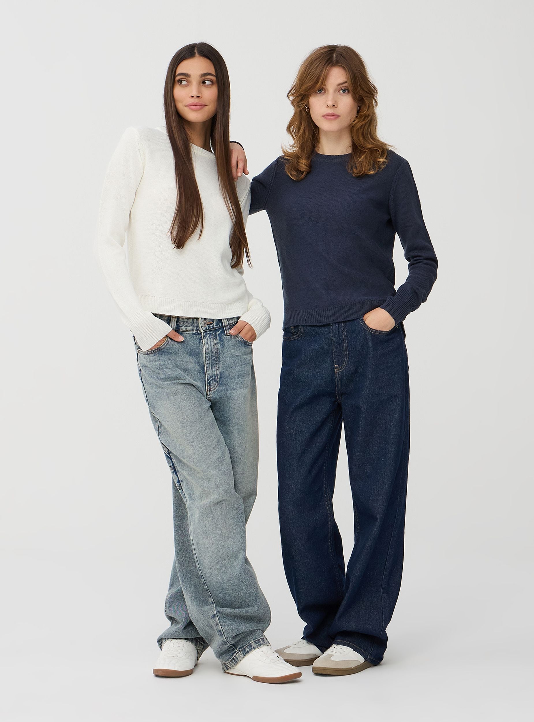 Set format din două bluze de damă cu mâneci lungi, realizate dintr-un material moale uni, cu finisaje rib și o mică despicătură laterală, perfecte pentru a asigura confort și căldură în sezonul rece. Designul prezintă un decolteu rotund și o croială regular, confortabilă. Piesă basic ușor de asortat, ideală pentru ocazii casual și de zi cu zi. Aceste bluze sunt perfecte de purtat cu blugi, pantaloni sau fuste pentru un look simplu, dar profesional la birou, sau în timpul liber pentru un plus de stil și confort.