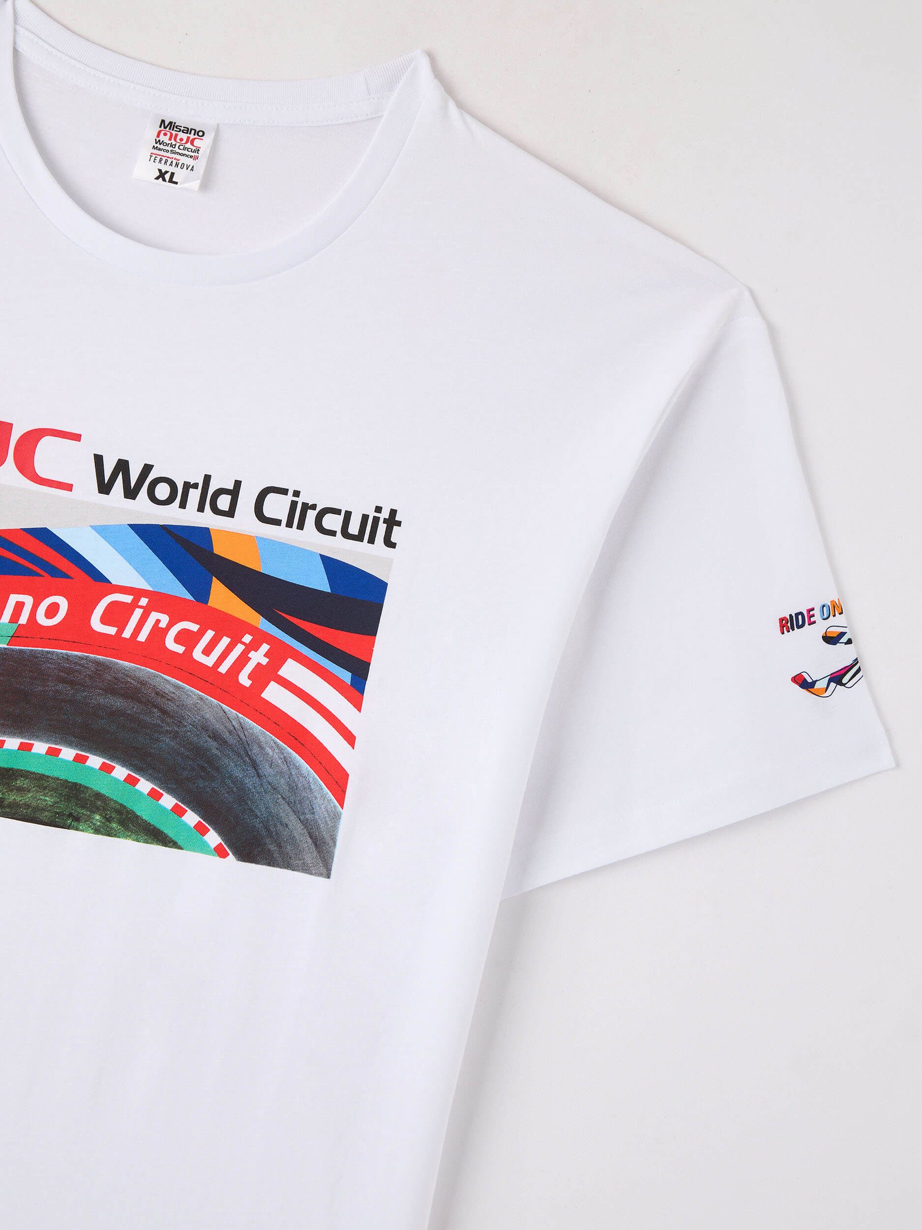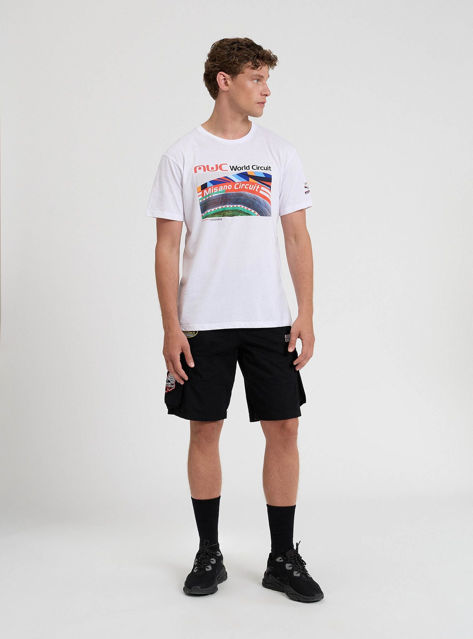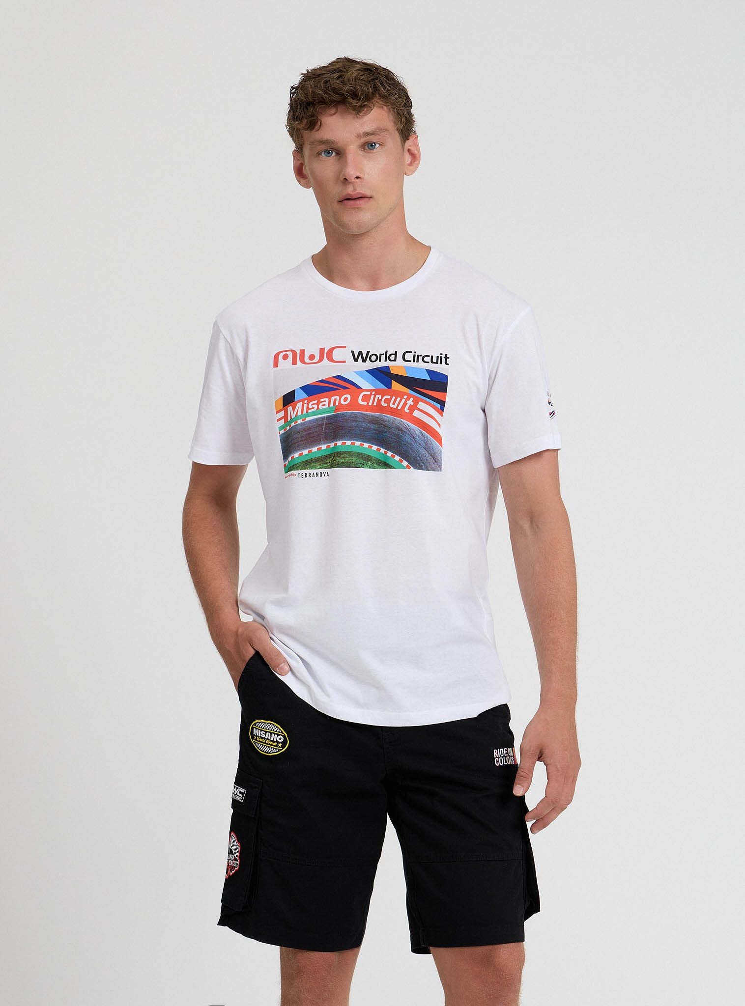 Tricou pentru bărbați, model cu guler rotund, caracterizat printr-o imprimare grafică dedicată circuitului Misano World. Croiala este regular, asigurând un fit confortabil. Ideal pentru pasionații de motorsport sau pentru cei care caută o piesă vestimentară casual cu un design distinctiv și dinamic. Perfect de asortat cu blugi sau pantaloni sport pentru un look relaxat, dar la modă.