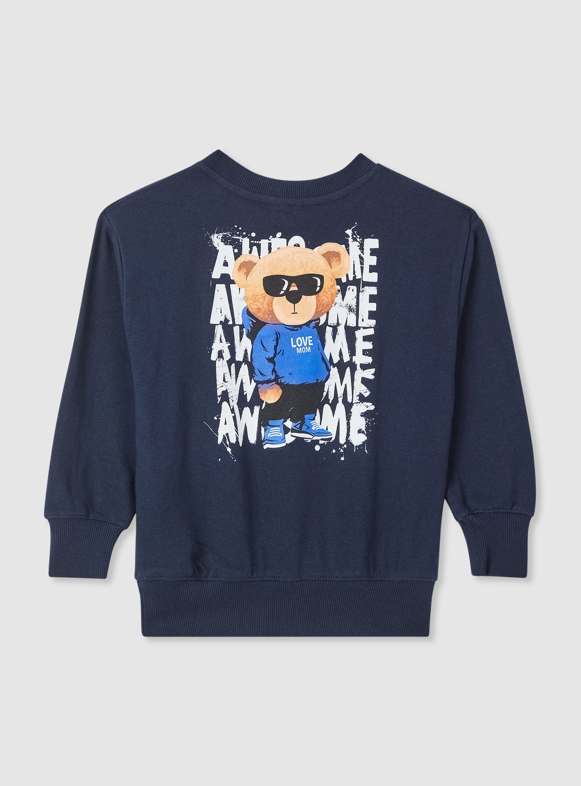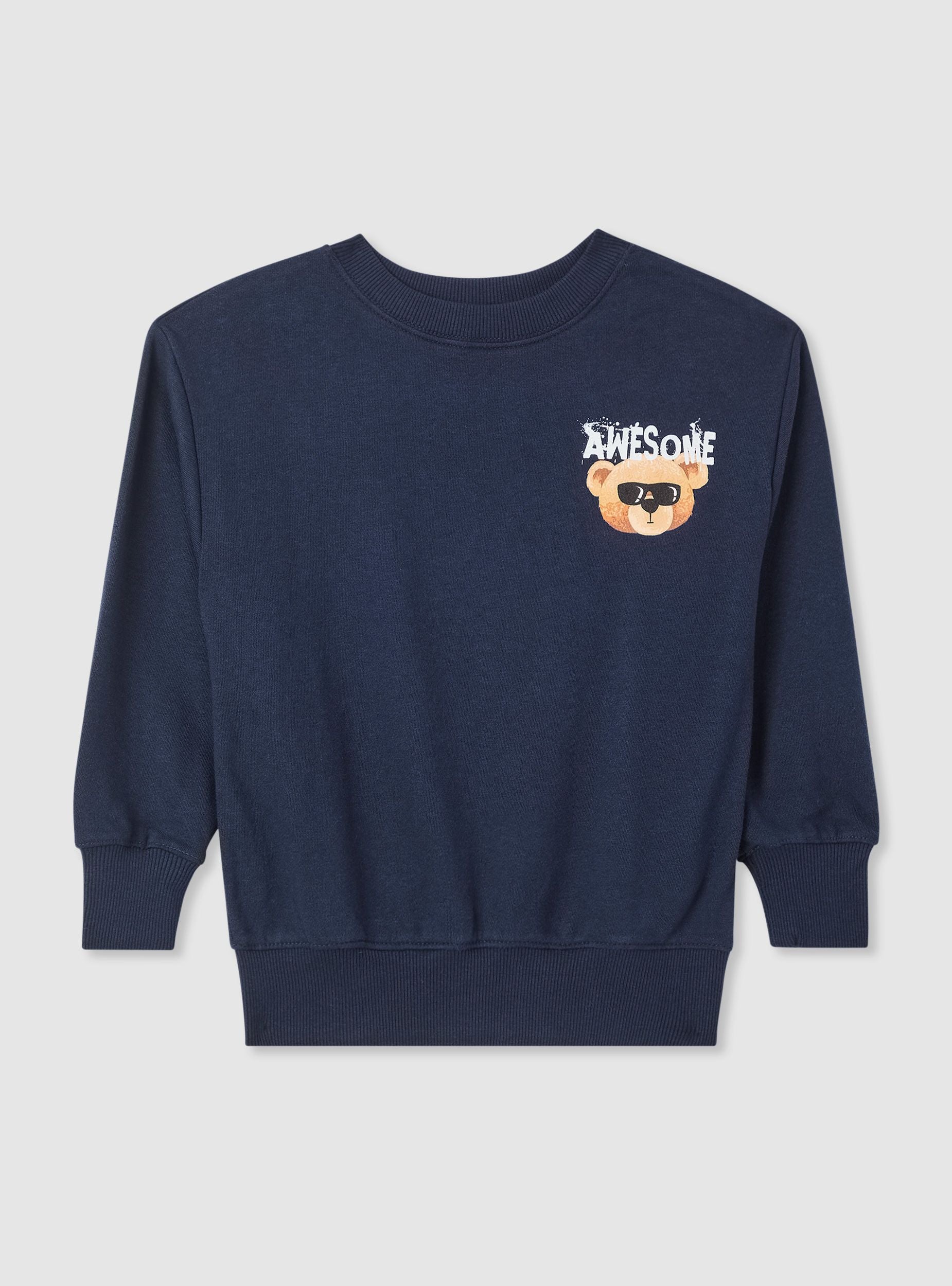 Hanorac ușor pentru copii, ideal pentru timpul liber, caracterizat printr-o imprimare cu ursuleț și inscripție pe față și pe spate. Modelul are mâneci lungi, guler rotund și manșete rib, oferind o croială confortabilă și practică. Perfect de asortat cu blugi sau pantaloni sport pentru un look jucăuș și versatil, potrivit pentru școală și momente de relaxare.Detalii