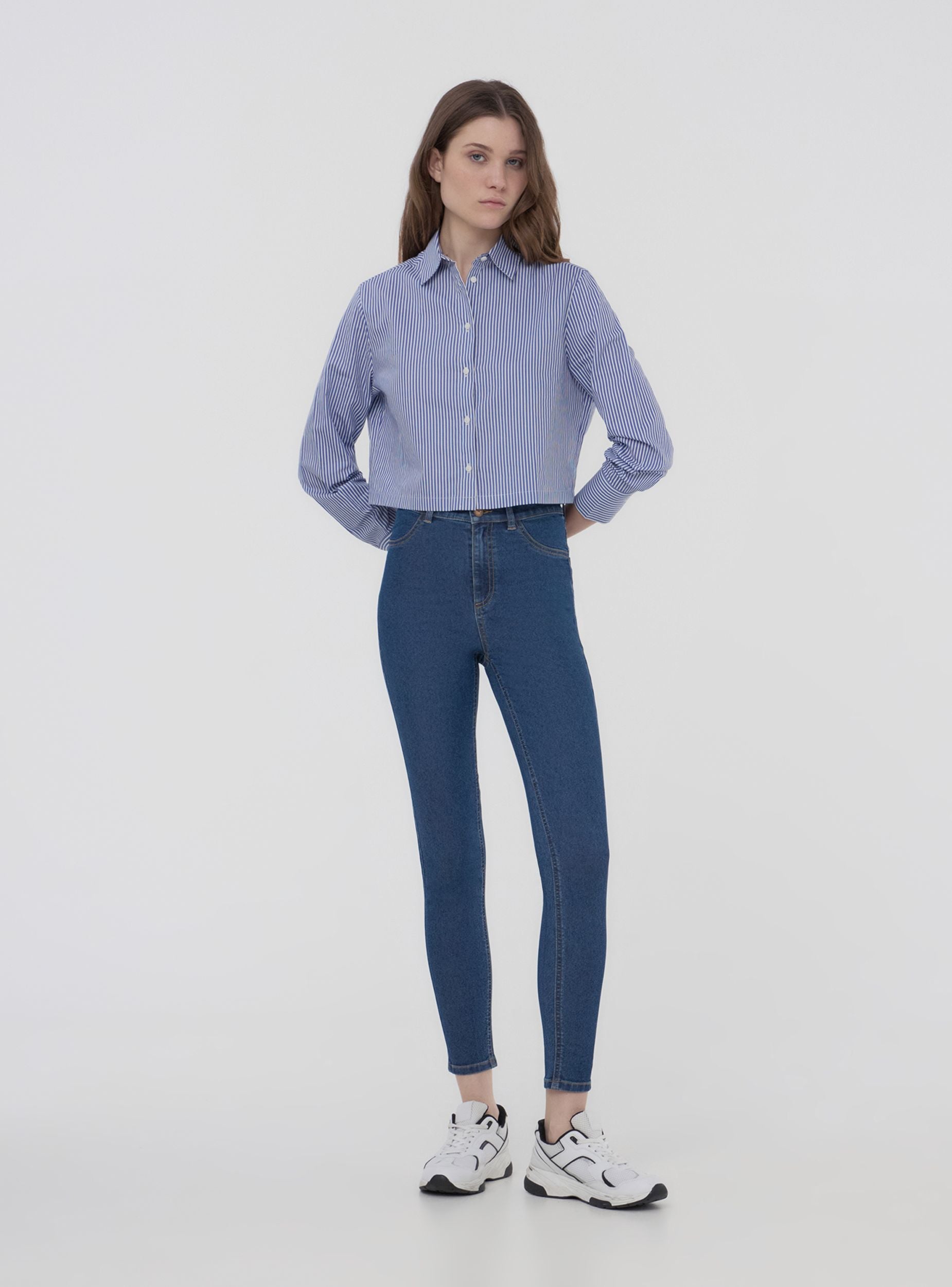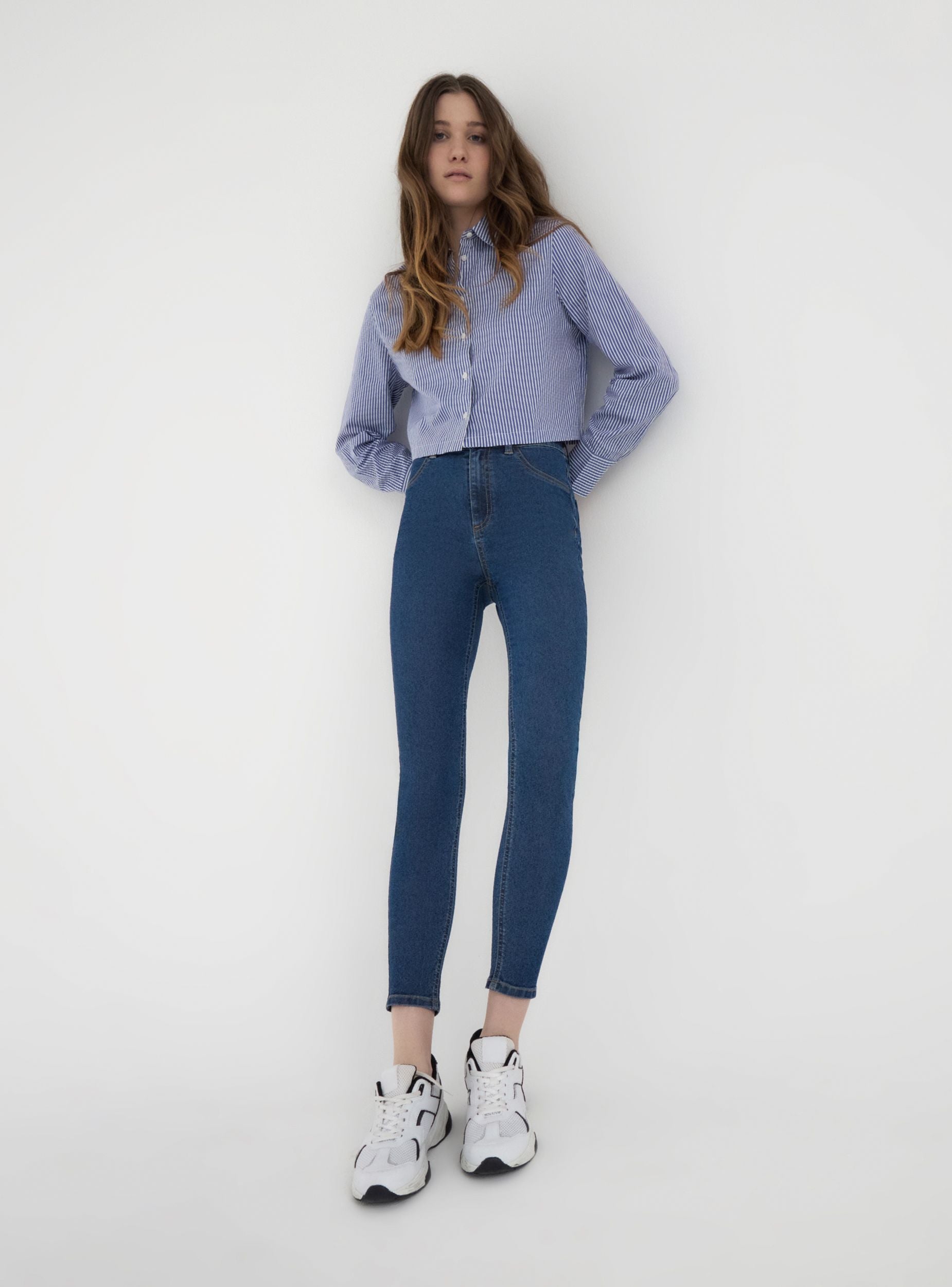 Jeggings pentru femei cu talie înaltă, concepuți pentru a asigura o croială strânsă și confortabilă, care evidențiază silueta. Acest model are o linie skinny, ideală pentru cei care caută o piesă versatilă, ușor de asortat cu diferite tipuri de outfituri. Jeggings-ii combină stilul atemporal al blugilor cu practicitatea leggings-ilor. Perfecti pentru a fi purtați în contexte informale, cum ar fi o zi de cumpărături sau o ieșire cu prietenii, acești jeggings se potrivesc perfect cu tricouri, cămăși sau pulovere și pot fi completați cu adidași sau ghete pentru un look casual chic. Datorită elasticității și taliei înalte, oferă confort chiar și în zilele lungi, menținând mereu un stil modern și îngrijit.