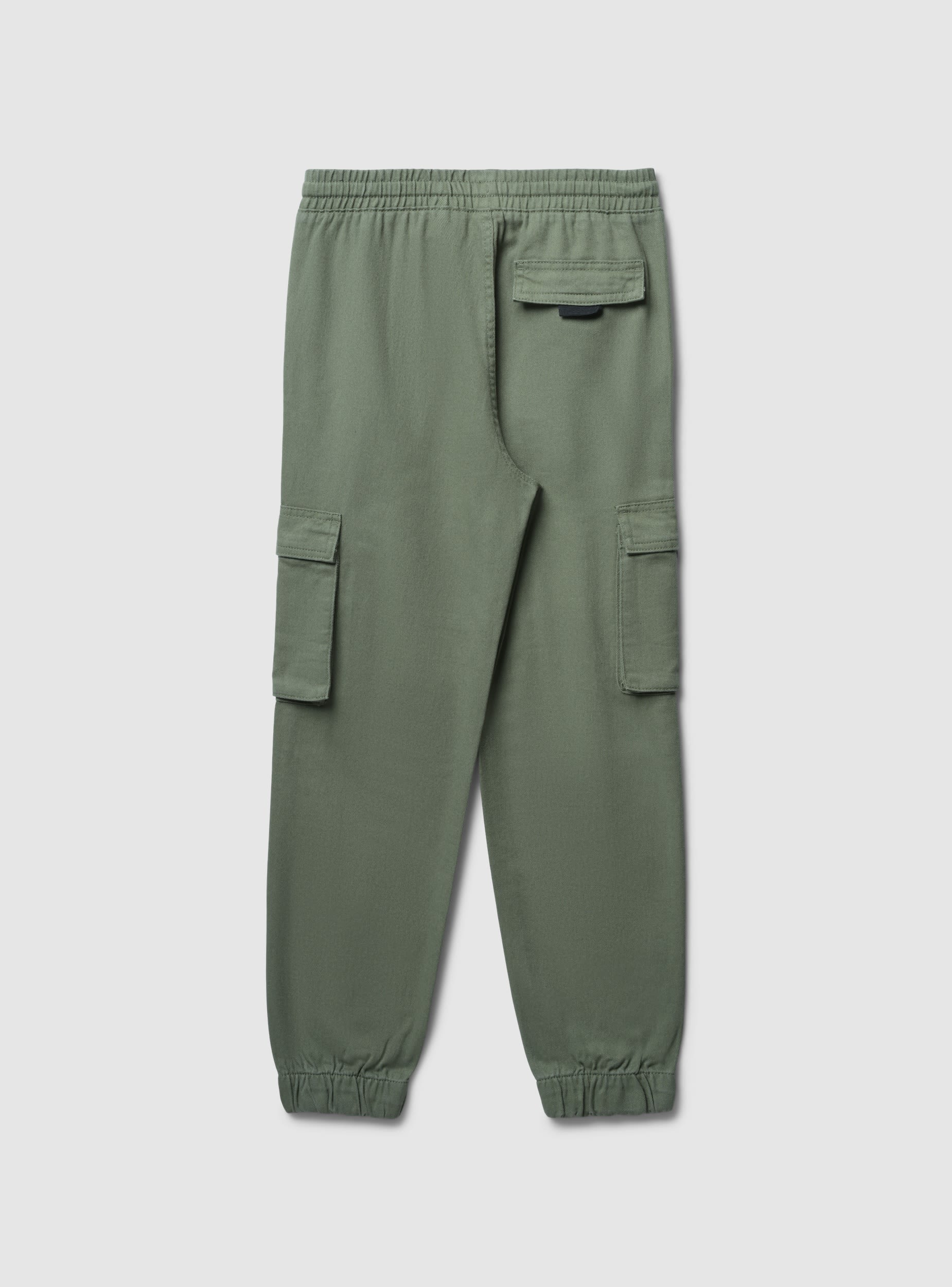Pantaloni pentru copii cu design uni și buzunare cargo laterale. Ideali pentru un look casual și practic, perfecți pentru zilele petrecute în aer liber sau pentru timpul liber. Croială confortabilă cu elastic în talie și șnur reglabil. Buzunarele adaugă funcționalitate și stil, în timp ce tivul elasticizat asigură o potrivire sigură și confortabilă. Un articol versatil pentru orice ocazie informală.Detalii